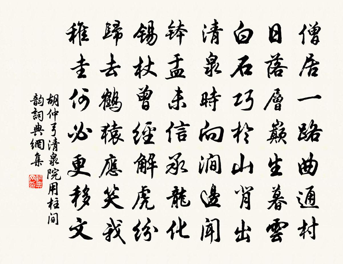 詩詞名句歷史字典書法欣賞書法字典國語詞典說文解字康熙字典古漢語字典標 題 作 者 詩 句 清泉院用柱間韻作者:胡仲弓 朝代:宋代清泉院用柱間韻原文僧居一路曲通村,日落層巔生暮雲。白石巧於山背出,清泉時向澗邊聞。缽盂未信承龍化,錫杖曾經解虎紛。歸去鶴猿應笑我,稚圭何必更移文。詩詞問答問:清泉院用柱間韻的作者是誰?答:胡仲弓問:清泉院用柱間韻寫於哪個朝代?答:宋代胡仲弓清泉院用柱間韻書法欣賞清泉院用柱間韻書法作品詩詞推薦題光和年西嶽碑強至〔宋代〕瘦硬光和字,崔巍太華碑。鐫模森骨立,點畫宛鱗差。內有通神筆,前無絕妙辭。茅齋千載後,玩古獨心知。和鄭商老下第楊時〔宋代〕雨余新惹一番愁,展轉衾寒客思悠。獻璞又添今日恨,登科空負昔人羞。林泉水石君先到,京國風塵我尚留。若為晚暉亭司馬光〔宋代〕俯臨城市厭喧譁,回顧園林景更嘉。醉立斜陽頭似雪,往來誤認白公家。巫山一段雲 漁村落照李齊賢〔元代〕雨霽長江碧,雲歸遠岫青。一邊殘照在林*。綠網曬苔扃。波影明重綺,沙痕射遠星。鱸魚白酒醉還醒。身世任浮出山宿向翁家陳與義〔宋代〕紙坊山絕頂,直下夕陽斜。卻看來呼處,南北兩岩花。田翁邀客宿,笑指林下家。問我出山意,無乃貴喧譁。縣圃酴醾陳造〔宋代〕北園紅紫已蜚塵,始放幽亭爛熳春。疊翠影低珠幰重,洗妝人倦玉容真。薔薇清露疑分派,茉莉評香且外臣。領略金蕉葉(秋夜不寐)蔣捷〔宋代〕雲褰翠幕。滿天星碎珠迸索。孤蟾闌外,照我看看過轉角。酒醒寒砧正作。待眠來、夢魂怕惡。枕屏那更,畫了平月暈梅堯臣〔宋代〕月暈已知風,燈花先作喜。明日掛帆歸,春湖能幾里。下雞鳴山諸灘,望柯山不見三首楊萬里〔宋代〕莫怪諸灘水怒號,下灘不似上灘勞。長年三老無多巧,穩送驚湍只一篙。會稽陸游〔宋代〕海近風雲惡,城高鼓角雄。山川橫慘澹,樓閣半虛空。故國千年鶴,征途萬里蓬。餘生猶幾日,盡合付杯中。送田(一作沈)光鄭谷〔唐代〕九陌低迷誰問我,五湖流浪可悲君。著書笑破蘇司業,賦詠思齊鄭廣文。理棹好攜三百首,阻風須飲幾千分。耒陽孫發百篇將游天台請詩贈行,因以送之皮日休〔唐代〕孫子荊家思有餘,元戎曾薦入公車。百篇宮體喧金屋,一日官銜下玉除。紫府近通齋後夢,赤城新有寄來書。因逢送高才卿出守嘉定魏了翁〔宋代〕十年誰遣不寧侯,麇奔鳥散十七州。余州蹙蹙能幾許,史君今作載酒游。諸公飲儁已濡首,眼前百事不掛口。震風次韻奉呈公澤處士張元乾〔宋代〕屏跡苕溪少往還,時危尤覺故人歡。相期臘盡屠蘇酒,速享春來苜宿盤。雪夜劇談金賊入,風江絕嘆鐵衣寒。何年雜曲歌辭。獨不見王訓〔唐代〕日晚宜春暮,風軟上林朝。對酒近初節,開樓盪夜嬌。石橋通小澗,竹路上青霄。持底誰見許,長愁成細腰。緣識宋太宗〔宋代〕道泰希夷,乃詠歌之。群材奮發,迭奏相追。風騷不失,千載一時。倜儻沿革,大啟箴規。寄題千山乾隆〔清代〕千山勝景久薌哉,三度徒教寄詠回。本異唐宗曾駐輦,空傳丁令有遺台。底須石洞花岩到,原匪探奇問景來。卻笑寄姚首齋胡仲弓〔宋代〕笑俯修欄一欠伸,年來蹤跡尚埃塵。幾曾隻字商量酒,強把篇詩料理春。風雨無情鶯口啉,江山有恨柳眉顰。不知義方堂瞻先賢遺像丘葵〔宋代〕石井初筮時,已將教為政。真成叔梁紇,有子為孔聖。至今鰲山下,過者莫不敬。失調名佚名〔宋代〕怕到黃昏轉淒切。名句推薦重足而立,側目而視。司馬遷《史記·汲鄭列傳》 含愁獨倚閨幃,玉爐煙斷香微。毛熙震《清平樂·春光欲暮》 鵝湖山下稻粱肥,豚柵雞棲半掩扉。王駕《社日》 我軍青坂在東門,天寒飲馬太白窟。杜甫《悲青坂》 悠悠天宇曠,切切故鄉情。張九齡《西江夜行》 落日心猶壯,秋風病欲疏。杜甫《江漢》 會天大雨,道不通,度已失期司馬遷《陳涉世家》 但責己,不責人,此遠怨之道也王永彬《圍爐夜話·第八五則》 居移氣,養移體。孟子《孟子·盡心章句上·第三十六節》 隔牖風驚竹,開門雪滿山。王維《冬晚對雪憶胡居士家》