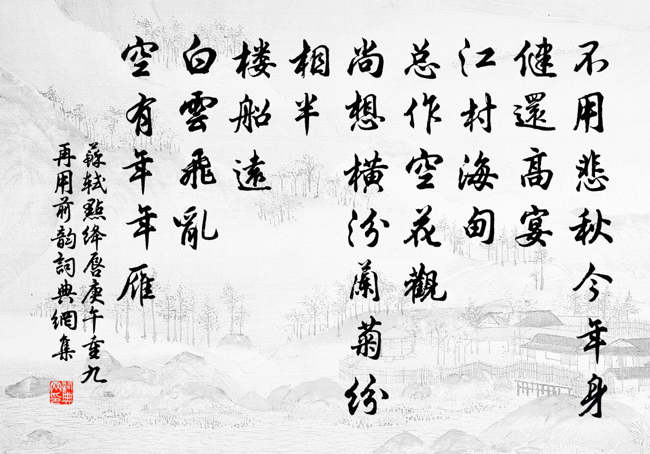不用悲秋,今年身健還高宴。江村海甸。總作空花觀。