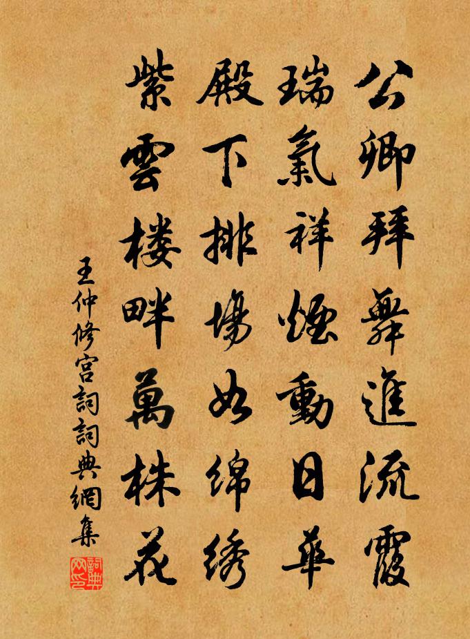 詩詞名句歷史字典書法欣賞書法字典國語詞典說文解字康熙字典古漢語字典標 題 作 者 詩 句 宮詞作者:王仲修 朝代:宋代宮詞原文公卿拜舞進流霞,瑞氣祥煙動日華。殿下排場如綿繡,紫雲樓畔萬株花。詩詞問答問:宮詞的作者是誰?答:王仲修問:宮詞寫於哪個朝代?答:宋代王仲修宮詞書法欣賞宮詞書法作品詩詞推薦林和叔山園九詠霜余姜特立〔宋代〕龜殼浮游不問津,壺中日月自長春。向來橘隱商山樂,今日中間添一人。慈竹黃公度〔宋代〕慈竹陰初合,新梢翠欲流。晚搖千尺影,冷撼一堂秋。筍迸苔痕拆,葉蒙山色幽。鳳凰棲息穩,端為此君留。遣興次韻和晁應之四首張耒〔宋代〕日落村虛煙靄青,草根促織晚先鳴。群山袞袞望中去,新月娟娟愁里生。暗峽風雲秋慘澹,高城河漢夜分明。寄書西興馬上戴表元〔宋代〕去時風雨客匆匆,歸路霜晴水樹紅。一抹淡山天上下,馬蹄新出浪花中。葛興祖輓辭王安石〔宋代〕憶隨諸彥附青雲,場屋聲名看出群。孫寶暮年猶主簿,卜商今日更修文。山川凜凜平生氣,草木蕭蕭數尺墳。欲寫夜坐有懷黎君韓維〔宋代〕霜風動脩竹,寒月照廣庭。此夕南堂客,得無羈旅情。束書萬里外,徒步游上京。豈憚行役勞,所期功與名。高文送張如京知安肅軍余靖〔宋代〕賜戟銜恩出斗城,塞門迢遞草初青。新提司馬臨戎節,舊應衣烏近極星。叔子戍吳長緩帶,單于歸漢已空庭。圯橋雷逸老以仿石鼓文見遺因呈祭酒吳公梅堯臣〔宋代〕石鼓作自周宣王,宣王發憤搜岐陽。我車我馬攻既良,射夫其同弓矢張。舫舟又漁縛鱮魴,何以貫之維柳楊。從官酬秘書王丞見寄雍陶〔唐代〕朝下有閒思,南溝邊水行。因來見寥落,轉自嘆平生。白首丈夫氣,赤心知己情。留詩本相慰,卻憶苦吟聲。搗藥鳥陸游〔宋代〕白髮無情日日生,散愁聊復作山行。幽禽似欲嘲衰病,故學襌房杵藥聲。琴潘牥〔宋代〕只是尋常操,傳來便不同。初疑聲已心,旋覺曲方中。清碎如章草,和平似國風。自從今夕聽,吾耳一生聾。滿路花 贈小崔評王丹桂〔元代〕人間何最苦,說著替君愁。眼前生滅景、象悠悠。虛名薄利,隨分少貪求。幸遇嘉時節,乘興偷閒,訪尋霞侶雲儔薰風二首張耒〔宋代〕薰風動嘉樹,日夕成清陰。上有枝間鳥,知時為好音。陽春事已往,桃李不可尋。賴茲長養功,嘉實薦中林。庭虛與顧章書吳均〔南北朝〕仆去月謝病,還覓薜蘿。梅溪之西,有石門山者,森壁爭霞,孤峰限日;幽岫含雲,深溪蓄翠;蟬吟鶴唳,水響猿率題乾隆〔清代〕人夸不似老年象,一笑付之半信疑。設使廿年前面目,又何須藉爾夸為。卜運算元 飲酒敗德辛棄疾〔宋代〕盜跖儻名丘,孔子還名跖。跖聖丘愚直至今,美惡無真實。簡冊寫虛名,螻蟻侵枯骨。千古光陰一霎時,且進杯中句諶祜〔宋代〕天教向老逢春在,詩且忘憂此命通。杭頭晚興嚴州陸游〔宋代〕落葉孤村晚下程,痴雲殘日半陰晴。篝爐火暖床敷穩,臥聽黃鴉穀穀聲。聞蛩徐集孫〔宋代〕獨搔短髮坐更深,夜雨書燈半欲陰。近日病魔詩思澀,一秋清句付蛩吟。和黃叔萬游西湖韻沈繼祖〔宋代〕城西去天才尺五,溯游從之不修阻。西湖春水漲舊痕,葡萄盎盎浮春醑。魚成隊陣影虛游,禽呼友朋聲樂與。船行名句推薦常將有日思無日,莫待無時思有時。馮夢龍《警世通言·卷二十五》 來如風雨,去似微塵。佚名《增廣賢文·上集》 人問誰,對以名。吾與我,不分明。李毓秀《弟子規·謹》 春宵苦短日高起,從此君王不早朝。白居易《長恨歌》 應知早飄落,故逐上春來。何遜《詠早梅 / 揚州法曹梅花盛開》 江山故宅空文藻,雲雨荒台豈夢思。杜甫《詠懷古蹟五首·其二》 白骨露於野,千里無雞鳴。曹操《蒿里行》 道千乘之國,敬事而信,節用而愛人,使民以時。孔子弟子《論語·學而篇》 樓頭客子杪秋後,日落君山元氣中。陳與義《登岳陽樓》 但將千歲葉,常奉萬年杯。趙彥昭《奉和元日賜群臣柏葉應制》