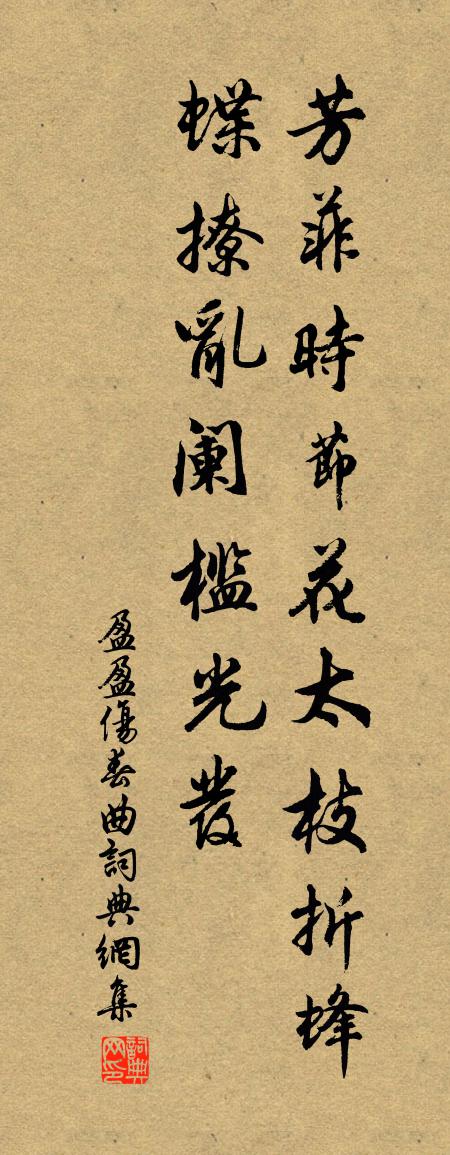 詩詞名句歷史字典書法欣賞書法字典國語詞典說文解字康熙字典古漢語字典標 題 作 者 詩 句 傷春曲作者:盈盈 朝代:宋代傷春曲原文芳菲時節,花太枝折。蜂蝶撩亂,闌檻光發。詩詞問答問:傷春曲的作者是誰?答:盈盈問:傷春曲寫於哪個朝代?答:宋代盈盈傷春曲書法欣賞傷春曲書法作品詩詞推薦岩泉道中韓元吉〔宋代〕出郭心易清,看山眼難飽。疏疏水中梅,殘雪相與好。歲華雲已晚,官況良自笑。日暮城東門,霜風動衰草。春寒汪炎昶〔宋代〕漠漠陰雲匝地垂,年年怯過禁菸時。曉風幸自渾無力,柳外微微弄酒旗。次韻石湖居士晴窗遣興陳造〔宋代〕閶門車馬隱晴雷,我亦臨風詠快哉。平碧際空煙羃歷,薦紅照影水縈迴。園公門巷初沾絮,遊子杯盤欲薦梅。落晚與僧話舊劉滄〔唐代〕巾舄同時下翠微,舊遊因話事多違。南朝古寺幾僧在,西嶺空林唯鳥歸。莎徑晚煙凝竹塢,石池春色染苔衣。此時游嶽麓寺李東陽〔明代〕危峰高瞰楚江乾,路在羊腸第幾盤?肆樹松杉雙徑合,四山風十一僧寒。平沙淺草連天遠,落日孤城隔水看。薊北和胡撫乾水仙花韻項安世〔宋代〕瑤池蓬島舊題名,歲晚江湖得此生。水戰風搖疑體弱,雪欺霜奪見神清。佩衿濟濟賢師友,蘭玉詵詵好弟兄。笞鳳哭公孫子正宋祁〔宋代〕窮愁四十鬢華侵,肘臥垂楊感慨深。遺墨未乾園令札,悲弦長絕獻之琴。嗟賢有夢龍占苦,對臆無言鵩坐陰。三步六祖贊釋道沖〔宋代〕七百高僧總會禪,眼空四海鼻遼天。黃梅若也無私曲,有甚衣盂到汝傳。偈頌七首釋亮〔宋代〕今朝七十一月十五,光陰似箭歲將莫。參禪學道如何,切忌守株而待兔。若是金毛師子兒,翻身一擲無回互。無回雲岑姜特立〔宋代〕雲岑抱秋陰,水木起夜色。原野漸蕭條,田禾卷阡陌。初至洞庭,懷灞陵別業劉長卿〔唐代〕長安邈千里,日夕懷雙闕。已是洞庭人,猶看灞陵月。誰堪去鄉意,親戚想天末。昨夜夢中歸,煙波覺來闊。江皋登樓李彌遜〔宋代〕繙經興盡卷書帷,獨上江樓送落暉。人跡已隨雲影斷,傍檐嘉月冷侵衣。樂府君輓詩魏了翁〔宋代〕縑緗迂活計,屋壁老功夫。月暗烏聲迥,霜寒雁影孤。江靈知孝子,天賦厚耆儒。剩馥多沾丐,於今道未臞。和張紫微韻題清虛菴白玉蟾〔宋代〕雞犬聲村市,煙霞古洞天。晨壇凝玉露,夜井浸珠躔。鳳翼團宸畫,龜趺負古鐫。於湖詩去後,今昔幾千篇。白帝城最高樓杜甫〔唐代〕城尖徑昃旌旆愁,獨立縹緲之飛樓。峽坼雲霾龍虎臥,江清日抱黿鼉游。扶桑西枝對斷石,弱水東影隨長流。杖藜夜飲二絕陳東〔宋代〕筍芽鵝炙殊可口,明月清風不著錢。坐對青州一從事,共君今夜不須眠。早晴出門陳著〔宋代〕山光溪色曉晴閒,鷗鷺在溪雪在山。忽然自笑還自語,白日可似溪山閒。邦衡侍郎留金陵再用津字韻賦詩謝送賜茗復以周必大〔宋代〕淳熙又貢第三春,驛騎新馳度劍津。七祖師泉難話舊,八功德水且嘗新。雪亭烹處休裝景,火閣煎時卻可人。只恐和張可投詩十首王洋〔宋代〕廛音解作障耳霧,佳客能開病眼明。一軸收藏比珍貺,不妨擲地亦金聲。酥中陳與義〔宋代〕醉中今古興衰事,詩里江湖搖落時。兩手尚堪杯酒用,寸心唯是鬢毛知。稽山擁郭東西去,禹穴生雲朝暮奇。萬里名句推薦故人何在,水村山郭。孫道絢《憶秦娥·季溫老友歸樵陽人來閒書因以為寄》 清漏漸移相望久,微雲未接過來遲。李商隱《辛未七夕》 卻道“天涼好個秋”!辛棄疾《醜奴兒·書博山道中壁》 非學無以廣才,非志無以成學。諸葛亮《誡子書》 城中桃李愁風雨,春在溪頭薺菜花。辛棄疾《鷓鴣天·陌上柔桑破嫩芽》 東風有恨致玄都,吹破枝頭玉,夜月梨花也相妒。周文質《小桃紅·詠桃》 澗影見松竹,潭香聞芰荷。孟浩然《夏日浮舟過陳大水亭 / 浮舟過滕逸人別業》 峨嵋山下少人行,旌旗無光日色薄。白居易《長恨歌》 上有愁思婦,悲嘆有餘哀。曹植《明月上高樓》 今日重來訪,不見知音人。馮夢龍《警世通言·卷一》