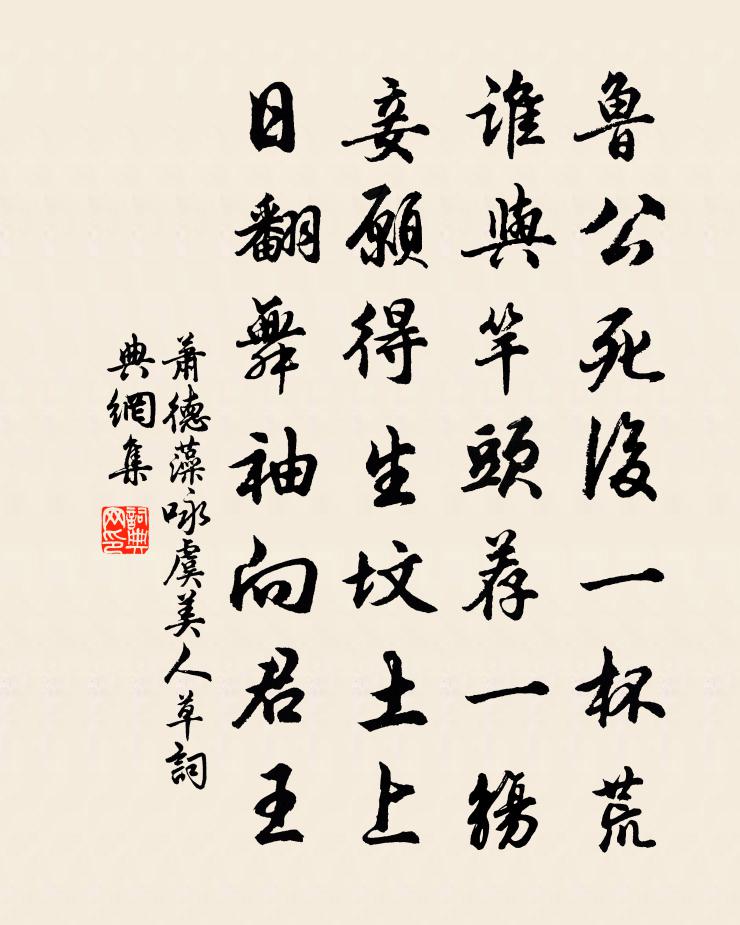 詩詞名句歷史字典書法欣賞書法字典國語詞典說文解字康熙字典古漢語字典標 題 作 者 詩 句 詠虞美人草作者:蕭德藻 朝代:宋代詠虞美人草原文魯公死後一杯荒,誰與竿頭薦一觴。妾願得生墳土上,日翻舞袖向君王。詩詞問答問:詠虞美人草的作者是誰?答:蕭德藻問:詠虞美人草寫於哪個朝代?答:宋代蕭德藻詠虞美人草書法欣賞詠虞美人草書法作品詩詞推薦寄唐山人張士遜〔宋代〕梓潼江口涪江上,深僻還如樗杜村。獨坐翠光噴釣艇,萬家寒影落吟軒。桑柔佚名〔先秦〕菀彼桑柔,其下侯旬,捋采其劉,瘼此下民。不殄心憂,倉兄填兮。倬彼昊天,寧不我矜?四牡騤騤,旟旐有翩。題秦嶺歐陽詹〔唐代〕南下斯須隔帝鄉,北行一步掩南方。悠悠煙景兩邊意,蜀客秦人各斷腸。正月六日風雪大作范成大〔宋代〕奇寒何事入芳辰,不管燈枝欲試新。即日反風吹盡雪,東君已費一分春。探芳信吳文英〔宋代〕大作,林麓洲渚皆瓊瑤。方庵馳小序求詞,且約訪蔡公甫夜寒重。見羽葆將迎,飛瓊入夢。整素妝歸處,中宵按瑤句張載〔宋代〕一目全牛萬隙開。月中炬火發仙山驛,小睡射亭五首楊萬里〔宋代〕蹈月何銷秉炬行,也防月落未天明。果然留下長庚去,更賺行人作曉星。頌一百則釋重顯〔宋代〕千峰盤屈色如藍,誰謂文殊是對譚。堪笑清涼多少眾,前三三與後三三。逍遙詠宋太宗〔宋代〕何人曉了是兼非,鉛汞從凡隱聖機。福壽丹砂隨日變,長生藥鼎負龍威。秦皇漢武終邪見,大道神仙在杳微。學似舊題寶勝寺壁胡仲弓〔宋代〕十里湖光鏡樣平,銀潢一帶向東傾。寺從楊柳陰中出,僧在蓮花會上行。佛地也容擔板漢,梵音莫近采菱聲。我來早春微雨李山甫〔唐代〕怪來鶯蝶似凝愁,不覺看花暫濕頭。疏影未藏千里樹,遠陰微翳萬家樓。青羅舞袖紛紛轉,紅臉啼珠旋旋收。歲旱點視馬驛因成兩絕張鎡〔宋代〕萬里關山過險巘,風廊聊此憩權奇。天開徑上從茲始,想見長鳴振鬣時。立春帖子皇帝閣周必大〔宋代〕淑氣潛飛玉管灰,無情草木得先知。一如聖主行仁政,晨發岩廊夕海涯。緣識宋太宗〔宋代〕民間天上事,通理一言之。仙積千年壽,人終百歲期。禮容分次第,泛愛別尊卑。福業有輕重,那堪亂作為。崔秀才宿話齊己〔唐代〕事轉聞多事,心休話苦心。相留明月寺,共憶白雲岑。蘚壁殘蟲韻,霜軒倒竹陰。開門又言別,誰竟慰塵襟。天台書事十三首曹勛〔宋代〕小圃都無花木名,只栽松竹養余清。時時風向邊頭過,喜聽松聲又竹聲。挽徐次翁王洋〔宋代〕自想溫容耳誨詞,他鄉已恨重分違。送人作守乘軒去,結草為靈象俑歸。會合只如風過燭。花陰何異月澄輝。相門讀史陸游〔宋代〕自古功名亦偶諧,胸中要使浩無涯。可憐赫赫丹陽尹,數顆檳榔尚繫懷。同張伯永出郊迓客倦嘆之餘因以成詠趙蕃〔宋代〕度晶我悰得養疴,不知春事已雲多。桃花灼灼為誰好,楊柳依依如恨何。曲折東西山展畫,抑揚高下鳥聞歌。是間發慈湖,過烈山,望見歷陽一帶山二首楊萬里〔宋代〕夢繞天津月再灣,慈湖解纜已開顏。淮山到眼渾相識,直北青梢是定山。名句推薦羈心積秋晨,晨積展游眺。謝靈運《七里瀨》 人不閒,勿事攪。人不安,勿話擾。李毓秀《弟子規·泛愛眾》 八月寒葦花,秋江浪頭白。李頎《送劉昱》 門外平橋連柳堤,歸來晚樹黃鶯啼。溫庭筠《春洲曲》 輔弼之臣瓦解,而邪諂之人並進班固《漢書·傳·東方朔傳》 神閒氣靜,智深勇沉,此八字是幹大事的本領。王永彬《圍爐夜話·第一七六則》 算陰晴,渾似幾番,渭城故人離會。吳文英《永遇樂·乙巳中秋風雨》 無人信高潔,誰為表予心?駱賓王《詠蟬 / 在獄詠蟬》 行人悵望蘇台柳,曾與吳王掃落花。姜夔《姑蘇懷古》 逍遙以針勞,談笑以藥倦劉勰《文心雕龍·養氣》