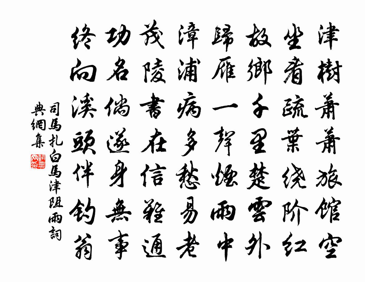 詩詞名句歷史字典書法欣賞書法字典國語詞典說文解字康熙字典古漢語字典標 題 作 者 詩 句 白馬津阻雨作者:司馬扎 朝代:唐代白馬津阻雨原文津樹蕭蕭旅館空,坐看疏葉繞階紅。故鄉千里楚雲外,歸雁一聲煙雨中。漳浦病多愁易老,茂陵書在信難通。功名倘遂身無事,終向溪頭伴釣翁。詩詞問答問:白馬津阻雨的作者是誰?答:司馬扎問:白馬津阻雨寫於哪個朝代?答:唐代問:白馬津阻雨是什麼體裁?答:七律司馬扎白馬津阻雨書法欣賞白馬津阻雨書法作品注釋全唐詩:卷596-34詩詞推薦古越謠歌無名〔元代〕君乘車,我戴笠,他日相逢下車揖。君擔簦,我跨馬,他日相逢為君下。送駱征君陳潤〔唐代〕野人膺辟命,溪上掩柴扉。黃卷猶將去,青山豈更歸。馬留苔蘚跡,人脫薜蘿衣。他日相思處,天邊望少微。失調名佚名〔宋代〕才向蘭湯浴罷,嬌羞簪雲髻,正雅稱鴛鴦會。夜坐其二龔自珍〔清代〕沉沉心事北南東,一睨人材海內空。壯歲始參周史席,髫年惜墮晉賢風。功高拜將成仙外,才盡迴腸盪氣中。萬一端午詞御閣晏殊〔宋代〕九子粽新傳楚俗,赤靈符驗出仙方。漢宮盡祝如天壽,鵲尾爐煙起瑞香。和過尉氏林香陂韻強至〔宋代〕長年京洛事塵埃,懷抱那能一日開。魚鳥宿心聊此得,江湖清興劃然回。天園野色鱗鱗合,風獵林香滾滾來。漸有梁州陪趙行軍龍岡寺北庭泛舟宴王侍御(得長字)岑參〔唐代〕誰宴霜台使,行軍粉署郎。唱歌江鳥沒,吹笛岸花香。酒影搖新月,灘聲聒夕陽。江鍾聞已暮,歸棹綠川長。東莊小留四首陳造〔宋代〕夾溝欲插柳千株,繞舍先營五畝蔬。供爨禦冬須次第,西歸新得務農書。謝君植矮梅百許株蟠屈如輪臘至皆著花灑灑可喻良能〔宋代〕孤竹低回首陽下,許由偃蹇箕山巔。謝君雅有林泉趣,種得江梅如二賢。南州臘月溫和早,賴有冰花除熱惱。鱗差淨遠亭晚望楊萬里〔宋代〕鸂鶆嬌紅野鴨青,為人浮沒為人鳴。忽開風起仍波起,乃是飛聲與落聲。閣皂山道士晏時中過我南浦久之告歸三首曾豐〔宋代〕孟陽風月小彌明,猶子於今有典刑。已得旌陽傳道妙,猶從彭澤乞詩靈。感遇之十一陳子昂〔唐代〕吾愛鬼谷子。青溪無垢氛。囊括經世道。遺身在白雲。七雄方龍斗。天下久無君。浮榮不足貴。遵養晦時文。舒可次韻謝王粟秀才四首項安世〔宋代〕掩關飽黑甜,屏跡慕鳥有。何心望披拂,注意及衰朽。勞君催魏徒,過我沮溺耦。拜手把瓜桃,捫胸愧箕斗。石蘚韓維〔宋代〕托根一何潔,冉冉冒幽石。不學蘿與薜,攀緣走岩壁。雲埋曉愈滋,雨洗秋更碧。移來色難改,足慰思山客。焙經釋紹曇〔宋代〕老胡監本誑人天,開口無非吐黑煙。五熱炙身甘自受,要翻元款待驢年。山行真山民〔宋代〕林梢初日弄陰晴,露浥溪花笑欲迎。澗暗只聞泉滴瀝,山青剩見鷺分明。遠峰忽轉還如繞,險逕徐行亦似平。莫謂追和賈明叔侯陟明二侍郎瑞香二首王之道〔宋代〕深院重簾數尺牆,對花可必竟燒香。九齡風度高難挹,舉世紛紛漫笏囊。蟹至十數日而異時特貴貧者只得忍口薄暮有以方岳〔宋代〕蟹之風月元無價,只賣百錢那是錢。醉墮多生貪愛業,貧隨現在喜歡緣。以名怒爾吾何敢,謂腹負予誰不然。新與虞美人(贈蔡子因)葉夢得〔宋代〕梅花落盡桃花小。春事余多少。新亭風景尚依然。白髮故人相遇、且留連。家山應在層林外。悵望花前醉。半天煙李遷憑昭迪使淝土楊億〔宋代〕書舸西風五兩斜,淮淝將命去程賒。衣纓黃閣相君後,門巷青春學士學。驛路新袍欺草色,公筵大白醉榴花。謝庭名句推薦昔有佳人公孫氏,一舞劍器動四方。杜甫《觀公孫大娘弟子舞劍器行》 野田春水碧於鏡,人影渡傍鷗不驚。汪藻《春日·一春略無十日晴》 闌風伏雨催寒食,櫻桃一夜花狼藉。納蘭性德《菩薩蠻·闌風伏雨催寒食》 艱難苦恨繁霜鬢,潦倒新停濁酒杯。杜甫《登高》 狗馬飾雕文,土木被緹繡。范曄《後漢書·列傳·宦者列傳》 乘我大宛馬,撫我繁弱弓。張華《壯士篇》 春江花朝秋月夜,往往取酒還獨傾。白居易《琵琶行 / 琵琶引》 有緣千里來相會,無緣對面不相逢。施耐庵《水滸傳·第十四回》 文人之筆,勸善懲惡也。王充《論衡·卷二十·佚文篇》 蠟燭有心還惜別,替人垂淚到天明。杜牧《贈別》