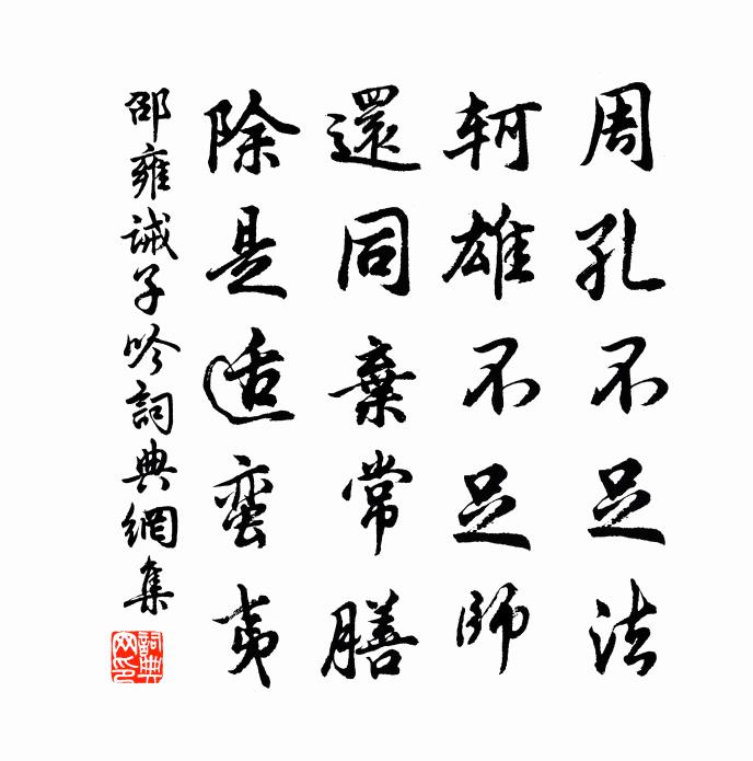 詩詞名句歷史字典書法欣賞書法字典國語詞典說文解字康熙字典古漢語字典標 題 作 者 詩 句 誡子吟作者:邵雍 朝代:宋代誡子吟原文周孔不足法,軻雄不足師。還同棄常膳,除是適蠻夷。詩詞問答問:誡子吟的作者是誰?答:邵雍問:誡子吟寫於哪個朝代?答:宋代邵雍誡子吟書法欣賞誡子吟書法作品詩詞推薦郿塢蘇軾〔宋代〕衣中甲厚行何懼,塢里金多退足憑。畢竟英雄誰得似,臍脂自照不須燈。和許表民湔江驛四題李新〔宋代〕吹來槐莢細,過去杜鵑悲。慣客久無念,送春閒有詩。送謝刑部使君赴召胡仲弓〔宋代〕中和報政二年間,五馬朝天不可攀。南國願留申伯住,東山催起謝公還。銀鉤鐵畫輝棠蔭,玉鑒冰壺照筍斑。名在頌古一百首釋智愚〔宋代〕樓上贊聲資菜色,驀然突出老菸菟。迢迢古路無遮障,雙眼如鈴誰敢逾。賀聖朝尹志平〔元代〕夜深人靜,披衣閒坐,琴聽無弦。罷高談、逸論默通玄。任龜息綿綿。陰陽升降,沖和四大,骨壯神全。抱元初一登表海樓范仲淹〔宋代〕一帶林巒秀復奇,每來憑檻即開眉。好山深會詩人意,留得夕陽無限時。戲題珪老借庵樓鑰〔宋代〕不知當初問誰借,至今久假而不歸。畢竟還了方是了,卻須還我未生時。同楊仲禮和袁集賢上都詩柳貫〔元代〕出塞行瞻日,趨朝喜近天。離宮開苑囿,馳道絕風煙。瑤水巡非遠,峒山歷更綿。甘泉多法從,獻賦憶當年。破虜凱歌六首周麟之〔宋代〕捷書日日到甘泉,使者聯翩出勞旋。將士歡呼拜君賜,鵰銜寶帶鵠袍鮮。書懷奉簡蘭若提舉黃庚〔宋代〕十年湖海嘆飄零,晚景投閒百念輕。看水看山真有味,學書學劍恨無成。竹風吟曉詩情動,梧雨敲秋客夢驚。老傍易地昭武去之日與家人集新作南門書水鏡壁上方岳〔宋代〕晦庵呼我住山南,五老人知百不堪。極目無窮江渺渺,滿頭歸去雪毿毿。吾生只可龜藏六,世事何如狙賦三。政有文文山畫像贊鄧剡〔宋代〕目煌煌兮疏星曉寒,氣英英兮晴雷殷山。頭碎柱而璧完,血化碧而心丹。嗚呼,誰謂斯人不在世間。水調歌頭姚述堯〔宋代〕碧落暮雲卷,玉宇靜無塵。寶階露滴仙掌,秋氣正平分。冷浸銀河清澈,光射珠躔明滅, * 擁冰輪。今夕桂華滿游雲湖胡寅〔宋代〕衡湘久來往,眼到山輒對。愛山真自性,久看眼未礙。今朝渡石潭,蘭槳亂青帶。初升岸稍高,忽喜地更大。行行病起贈劉元圭郭印〔宋代〕學道淹四紀,微痾一點無。今年歲八十,有疾纏吾軀。初因水道澀,藥寒變河魚。食飲便退縮,脾土成中虛。言語車武子宅王齊愈〔宋代〕儒生骨朽名猶在,高塚相望已亂真。只認夜深螢聚處,便應泉下讀書人。題太白五松書堂林桷〔宋代〕千載名山樂有餘,功名常愧十年書。英風凜凜無今古,醉草明光一夢如。新荷葉·薄露初零李清照〔宋代〕薄露初零,長宵共、永晝分停。繞水樓台,高聳萬丈蓬瀛。芝蘭為壽,相輝映、簪笏盈庭。花柔玉淨,捧觴別有娉九歌·湘夫人屈原〔先秦〕帝子降兮北渚,目眇眇兮愁予。裊裊兮秋風,洞庭波兮木葉下。(裊裊 一作:渺渺)登白薠兮騁望,與佳期兮夕信美亭二首張嵲〔宋代〕北眺逼山樊,南瞻近津滸。登茲一消憂,信美仍吾土。名句推薦等閒識得東風面,萬紫千紅總是春。朱熹《春日》 試上超然台上看,半壕春水一城花。蘇軾《望江南·超然台作》 悲懷感物來,泣涕應情隕。潘安《悼亡詩三首》 今宵絕勝無人共,臥看星河盡意明。陳與義《雨晴·天缺西南江面清》 故音樂者,所以動盪血脈,通流精神而和正心也。司馬遷《史記·樂書》 採桑秦氏女,織錦竇家妻。薛道衡《昔昔鹽》 仁遠乎哉?我欲仁,斯仁至矣。孔子弟子《論語·述而篇》 誰教歲歲紅蓮夜,兩處沉吟各自知。姜夔《鷓鴣天·元夕有所夢》 知之者不如行之者,行之者不如安之者。王通《中說·卷六·禮樂篇》 紅葉晚蕭蕭,長亭酒一瓢。許渾《秋日赴闕題潼關驛樓 / 行次潼關逢魏扶東歸》