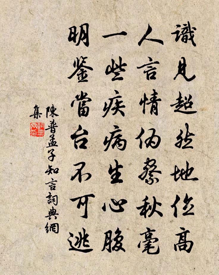 詩詞名句歷史字典書法欣賞書法字典國語詞典說文解字康熙字典古漢語字典標 題 作 者 詩 句 孟子知言作者:陳普 朝代:宋代孟子知言原文識見超然地位高,人言情偽察秋毫。一些疾病生心腹,明鑑當台不可逃。詩詞問答問:孟子知言的作者是誰?答:陳普問:孟子知言寫於哪個朝代?答:宋代陳普孟子知言書法欣賞孟子知言書法作品詩詞推薦雪仇遠〔宋代〕忽驚小窗白,開戶雪如此。去年臘前無,一白從此始。霏霏甚可愛,落落勢未已。炯炯眼界明,沾沾田畯喜。靜聞氏州第一鄭熏初〔宋代〕開遍來禽,春事過也,江南倦客心苦。料理花愁,銷磨酒病,還是年時意緒。寒淺香輕,早一霎、朝來微雨。柳曲乍歸九首劉克莊〔宋代〕絕愛牆陰橘,花開滿院香。鄰人欺不在,稍覺北枝傷。扳子磯張舜民〔宋代〕石上紅花低照水,山頭翠篠細含煙。天生一本徐熙畫,祇欠鷓鴣相對眠。水龍吟(賦張斗墅家古松五粒)吳文英〔宋代〕有人獨立空山,翠髯未覺霜顏老。新香秀粒,濃光綠浸,千年春小。布影參旗,障空雲蓋,沈沈秋曉。駟蒼虬萬里送僧歸山貫休〔唐代〕眼青禪帔赤,氣岸出塵埃。霞外終須去,人間作么來?崖香泉吐乳,塢燥燒□雷。他日終相覓,山門何處開。金剛隨機無盡頌啟唱真乘釋印肅〔宋代〕稽首一切智,圓通十方慧。無上兩足尊,法體含三世。歸命萬德師,與慈啟大悲。溥度恆沙樂,願力難恩□。解空維揚即事張蘊〔宋代〕茅屋蘆門前市坊,居民無事亦軍裝。愁來莫上城頭望,西北浮雲接太陽。平江守禱晴即應時近元夕矣寄呈五絕句仲並〔宋代〕安排燈火作鰲頭,人樂公來再有秋。轉雨作晴談笑事,他州誰得似吾州。浣溪沙曾棟〔宋代〕落日蒸紅山欲燒。短筇行藥過山腰。松聲隱隱晚來潮。矮樹依嚴無敗葉,梅花當路少全梢。水村時有短長橋。夢江南屈大均〔清代〕悲落葉,葉落絕歸期。縱使歸來花滿樹,新枝不是舊時枝。且逐水流遲。懷家三首戴復古〔宋代〕三年寄百書,幾書到我屋。昨夜夢中歸,及見老妻哭。蝶戀花毛滂〔宋代〕城上春雲低閣雨。漸覺春隨,一片段預告飛去。素頸圓吭鶯燕語。不妨緩緩歌金縷。墮紀頹綱公已舉。但見清風,蕭瑟武陵春(戴昌言家姬供春盤)史浩〔宋代〕報導東皇初弭節,芳思滿凌晨。爭看釵頭彩勝新。金字寫宜春。四坐行盤堆白玉,縴手自和勻。恰似蟾宮妙麗人。偈頌七十二首釋祖欽〔宋代〕那下飛來水面浮,卻來遮里問蹤由。只因回首不知處,一捏通身冷汗流。日落望江贈荀丞詩鮑照〔南北朝〕旅人乏愉樂,薄暮增思深。日落嶺雲歸,延頸望江陰。亂流灇大壑,長霧匝高林。林際無窮極,雲邊不可尋。惟見攜家避地葛立方〔宋代〕菟裘真可老,飄寓失初心。去去家山遠,行行澤國深。光陰三翼過,情緒二毛侵。何日干戈定,鷗盟得再尋。題景星壁佚名〔宋代〕陌上春風破酒顏,馬頭珠絡響珊珊。歸來院落已深夜,滿地月明花影寒。【仙呂】桂枝香關漢卿〔元代〕因他別後,懨懨消瘦。粉褪了雨後桃花,頻寬了風前楊柳。這相思怎休?這相思怎休?害得我天長地久,難禁難受仙都山鹿蘇洵〔宋代〕客來未到何從見,昨夜數聲高出雲。應是仙君老僮僕,當時掌客意猶勤。名句推薦素娥惟與月,青女不饒霜。李商隱《十一月中旬至扶風界見梅花》 報國無門空自怨,濟時有策從誰吐。吳潛《滿江紅·送李御帶珙》 隋堤三月水溶溶。背歸鴻,去吳中。蘇軾《江神子·恨別》 小舟從此逝,江海寄餘生。蘇軾《臨江仙·夜飲東坡醒復醉》 天涯失鄉路,江外老華發。李白《江南春懷》 天無二日,人無二理。吳承恩《西遊記·第七十八回》 深秋寒夜銀河靜,月明深院中庭。尹鶚《臨江仙·深秋寒夜銀河靜》 草樹知春不久歸,百般紅紫斗芳菲。韓愈《晚春》 青山依舊在,幾度夕陽紅。楊慎《臨江仙·滾滾長江東逝水》 花開不並百花叢,獨立疏籬趣未窮。鄭思肖《畫菊》