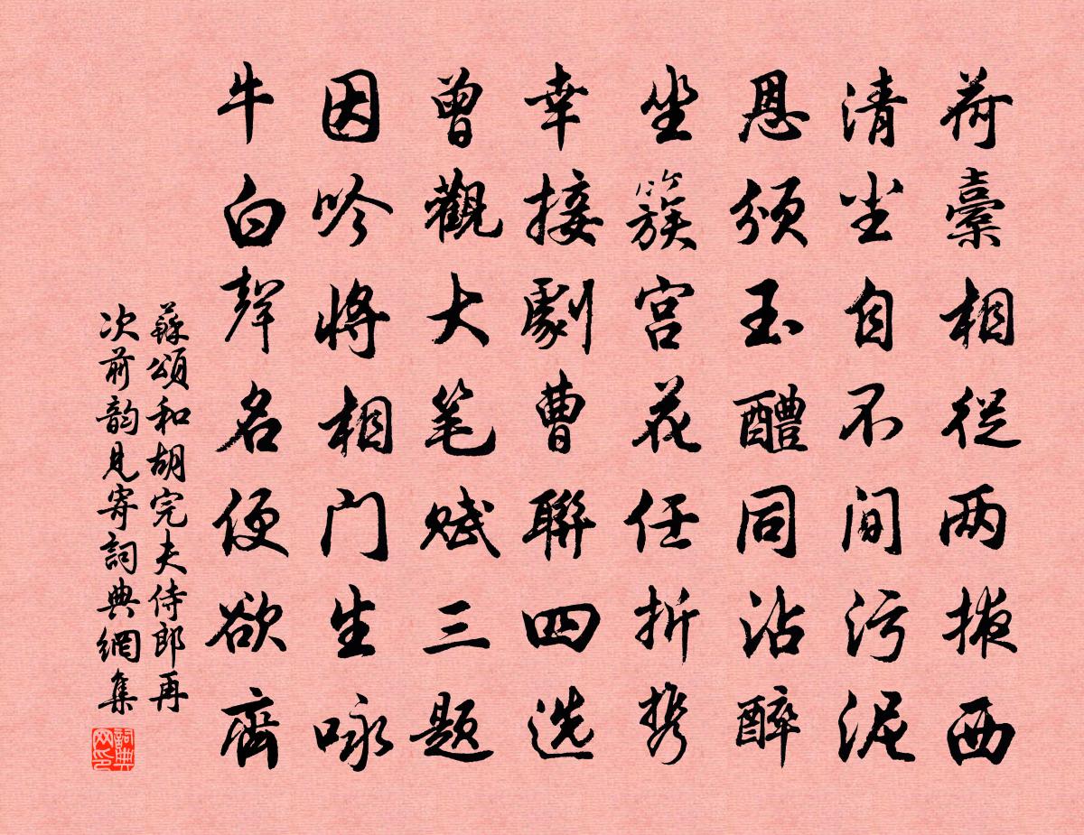 詩詞名句歷史字典書法欣賞書法字典國語詞典說文解字康熙字典古漢語字典標 題 作 者 詩 句 和胡完夫侍郎再次前韻見寄作者:蘇頌 朝代:宋代和胡完夫侍郎再次前韻見寄原文荷橐相從兩掖西,清塵自不間污泥。恩頒玉醴同沾醉,坐簇宮花任折攜。幸接劇曹聯四選,曾觀大筆賦三題。因吟將相門生詠,牛白聲名便欲齊。詩詞問答問:和胡完夫侍郎再次前韻見寄的作者是誰?答:蘇頌問:和胡完夫侍郎再次前韻見寄寫於哪個朝代?答:宋代蘇頌和胡完夫侍郎再次前韻見寄書法欣賞和胡完夫侍郎再次前韻見寄書法作品詩詞推薦病目袁燮〔宋代〕年年苦目眚,過午眊不明。冶之昏轉甚,不治無由平。何如閉目坐,湛然萬慮清。非治非不治,無思亦無營。不勞霜角 練溪晚渡張可久〔元代〕淡煙微隔。幾點投林翮。千古澄江秀句,空感慨、有誰索。拍拍。水光白。小舟爭過客。沽酒歸來樵叟,相隨到、蝶戀花·春暮李冠〔宋代〕遙夜亭皋閒信步。才過清明,漸覺傷春暮。數點雨聲風約住。朦朧淡月雲來去。桃杏依稀香暗渡。誰在鞦韆,笑里王式之直閣不遠千里來訪野人,贈以佳句,次楊萬里〔宋代〕君才陸海與潘江,句里芒寒萬丈長。雪碗冰甌翻筆墨,錦機繡假出肝腸。王家龍鳳重英特,謝砌芝蘭讓耿光。相國偈頌八十七首釋慧開〔宋代〕動弦別曲,葉落知秋。禾山打鼓,雪峰輥球。睦州擔板,投子提油。趙州狗子,溈山牯牛。青原垂足,俱胝指頭。次韻寄齋贈竹居張鎡〔宋代〕振俗還風雅,乾坤覓句中。夔皋渠合遇,郊島我甘同。浩蕩投鷗不,清和翻燕風。相投兩無語,聲遠莫摩空。送人罷官歸茅山陸龜蒙〔唐代〕呼僮曉拂鞍,歸上大茅端。薄俸雖休入,明霞自足餐。暗霜松粒赤,疏雨草堂寒。又鑿中峰石,重修醮月壇。句李堪〔宋代〕桐鄉留語葬,銘路在生悲。晨興散步鄭清之〔宋代〕晚歲知非蘧伯玉,前身作脫戒師兄。青山不灼利名火,白髮能銷忿欲兵。境對虛空全體現,眼無揀擇內心平。曉窗頌古三十一首釋如本〔宋代〕台山古路是人游,個個尋婆問路頭。堪笑趙州才勘破,寥寥千古使人愁。晝權德輿〔唐代〕孤舟漾曖景,獨鶴下秋空。安流日正晝,淨綠天無風。題石頭庵胡寅〔宋代〕剝落煙雲秋晚晴,身心無累此閒行。正聽萬壑松風滿,想見西南新月生。好字倒回文宋太宗〔宋代〕好與煩性生,好聽下缺依韻和表臣奎野亭梅堯臣〔宋代〕淮光抱城去,山翠落樽前。魯叟欲浮海,楚人休問天。野雲將拂幔,水鳥不驚船。歷覽誰能賦,今聞太守賢。送楊員外歐陽修〔宋代〕予昔走南宮,江湖浩然涉。今來厭塵土,常懷把輕楫。聞君東南行,山水恣登躡。秋江湛已清,樹色映丹葉。羨君秋旱繼以大風即事十首劉克莊〔宋代〕少耽章句老明農,無意為文忽自工。戲作小詩說場圃,細看似可續豳風。奉和魯望四明山九題鞠侯皮日休〔唐代〕堪羨鞠侯國,碧岩千萬重。煙蘿為印綬,雲壑是堤封。泉遣狙公護,果教犭軍子供。爾徒如不死,應得躡玄蹤。寄遠(在岐日作)韓偓〔唐代〕眉如半月雲如鬟,梧桐葉落敲井闌。孤燈亭亭公署寒,微霜淒淒客衣單。想美人兮雲一端,夢魂悠悠關山難。空房紹興祀先農攝事七首佚名〔宋代〕率職鹹位,禮容睟然。澡身端意,陟降靡愆。神心嘉虞,鄉茲潔蠲。敷錫沌佑,屢登豈年。青霞先生文集序茅坤〔明代〕青霞沈君,由錦衣經歷上書詆宰執,宰執深疾之。方力構其罪,賴明天子仁聖,特薄其譴,徙之塞上。當是時,君名句推薦出入君懷袖,動搖微風發。班婕妤《怨歌行》 鳥雀呼晴,侵曉窺檐語。周邦彥《蘇幕遮·燎沉香》 名播蘭簪妃后里,暈生蓮臉君王側。王清惠《滿江紅·題南京夷山驛》 巴子城頭青草暮。巴山重疊相逢處。張先《漁家傲·和程公辟贈》 對望中天地,洞然如刷。史達祖《滿江紅·中秋夜潮》 夭夭園桃,無子空長。曹丕《煌煌京洛行》 還背垂虹秋去,四橋煙雨,一宵歌酒。吳文英《瑞龍吟·送梅津》 秋聲萬戶竹,寒色五陵松。李頎《望秦川》 少事長,賤事貴,不肖事賢,是天下之通義也。荀子《荀子·仲尼》 上智不教而成,下愚雖教無益,中庸之人,不教不知也。顏之推《顏氏家訓·教子篇》