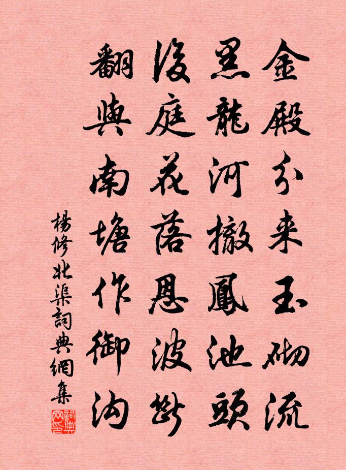詩詞名句歷史字典書法欣賞書法字典國語詞典說文解字康熙字典古漢語字典標 題 作 者 詩 句 北渠作者:楊修 朝代:宋代北渠原文金殿分來玉砌流,黑龍河撤鳳池頭。後庭花落恩波斷,翻與南塘作御溝。詩詞問答問:北渠的作者是誰?答:楊修問:北渠寫於哪個朝代?答:宋代楊修北渠書法欣賞北渠書法作品詩詞推薦賦家山夕秀李曾伯〔宋代〕本因累土作層台,巧匠俄為阜堆。碧落界邊將塔對,蒼蕪斷處送山來。狀成一段林巒勝,欠得幾株松桂栽。夕照未蘇江陰輓詞樓鑰〔宋代〕萬卷蟠胸次,千篇秀筆端。朝行期奮迅,賢路竟艱難。雖號循良守,欠為文字官。遺編幸無恙,留與後人看。長安書事寄所知李頻〔唐代〕帝里本無名,端居有道情。睡魂春夢斷,書興晚窗明。老擬歸何處,閒應過此生。江湖終一日,拜別便東行。蛺蝶二首姜特立〔宋代〕水上蜻蜓木上蟬,醯雞飛舞瓮中天。如何爾獨多情思,結得千花百卉緣。水仙子·游越福王府喬吉〔元代〕笙歌夢斷蒺藜沙,羅綺香餘野菜花。亂雲老樹夕陽下,燕休尋王謝家,恨興亡怒煞些鳴蛙。鋪錦池埋荒甃,流杯亭到胡道士草庵二首王炎〔宋代〕綠陰啼鳥戶庭幽,解帶聊為一夕留。行李未知何日了,轉蓬方覺此生浮。市朝役役兔三窟,今古悠悠貉一丘。得似醉中信筆作四絕句既成懼觀者不知野人本心也陸游〔宋代〕今朝賣谷得青錢,自出街頭買彘肩。草火燎來香滿屋,未容下箸已流涎。偈頌一百三十六首釋惟一〔宋代〕夜夜明星現,有眼誰不見。此夜老瞿曇,卻被明星轉。直至而今雙眼花,無瑕白玉自生瑕。送別季觀方岳〔宋代〕山留遷客秋風寺,想得梧桐怨夜長。正欠蹇驢相就語,其如征燕欲歸忙。苹花思與晴江渺,桂樹寒生老月香。一路送別王誠之給事虞儔〔宋代〕嫋嫋酸風吹客衣,冥冥芳樹攬秋思。誰教宦路分南北,自是人生足別離。送岸飛花何太急,留人夜雨故來遲。眼前寄懷章衢州辛越州趙蕃〔宋代〕江東去江西,道阻而且長。懷我金石交,每瞻鴻雁行。信州去衢州,道阻而匪修。黃花遂九日,明月負中秋。江東郭補生朝李石〔宋代〕汾陽家世郎官星,百里隱隱聞雷聲。德人所至有別樣,不向尺箠求能名。上官嗔罵吏束濕,日下廩庾堆如京。此時和至日北園讌集晏殊〔宋代〕清曉融風肅桂堂,郡寮多暇舞筵張。台高已驗雲容媚,日暖懸知刻漏長。溪子弩寒千命中,蘭英酒熟百傳觴。官曹雲根石鄭國輔〔宋代〕輪囷一片出無心,未許蒼苔久見侵。六月旱田天不雨,願將膚寸霈為霖。自遣杜牧〔唐代〕四十已雲老,況逢憂窘余。且抽持板手,卻展小年書。嗜酒狂嫌阮,知非晚笑蘧。聞流寧嘆吒,待俗不親疏。遇事松滋江北阻風閻寬〔唐代〕江風久未歇,山雨復相仍。巨浪天涯起,餘寒川上凝。憂人勞夕惕,鄉事憊晨興。遠聽知音駭,誠哉不可陵。殘燈釋文珦〔宋代〕殘燈閃閃青,蟋蟀怨空庭。骨老似難睡,夢寒還易醒。淒涼生倦枕,沆瀣入疏欞。起視東方白,唯餘三兩星。贈徐瓢翁二首方回〔宋代〕六十年前欲冠時,江湖聲價已飈馳。四靈在昔三曾識,八袠於今百可期。多灘漸驚前輩盡,老懷那許後人知。何當游茅山和諸侄陳序〔宋代〕山南細路半青霄,人昔共游非俗交。浮玉故鄉驚上國,埋丹清夢記中茅。峰頭仙客歸黃鵠,石面靈根走翠蛟。見說病中遣懷陸游〔宋代〕菘芥煮羹甘勝蜜,稻粱炊飯滑如珠。上方香積寧過此?慚愧天公養病夫。名句推薦柳色披衫金縷鳳,縴手輕拈紅豆弄,翠蛾雙斂正含情。和凝《天仙子·柳色披衫金縷鳳》 花紅易衰似郎意,水流無限似儂愁。劉禹錫《竹枝詞·山桃紅花滿上頭》 一騎紅塵妃子笑,無人知是荔枝來。杜牧《過華清宮絕句三首》 雪聲偏傍竹,寒夢不離家。戎昱《桂州臘夜》 白頭搔更短,渾欲不勝簪。杜甫《春望》 風柔日薄春猶早。夾衫乍著心情好。李清照《菩薩蠻·風柔日薄春猶早》 父兄有善行,子弟學之或不肖王永彬《圍爐夜話·第三三則》 蘭有秀兮菊有芳,懷佳人兮不能忘。劉徹《秋風辭》 知人者智,自知者明。勝人者有力,自勝者強。老子《老子·道經·第三十三章》 正西望長安,下見江水流。李白《秋浦歌十七首》