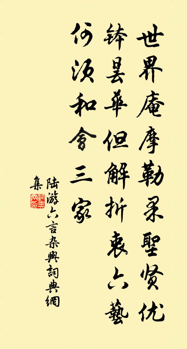 世界庵摩勒果,聖賢優缽曇華。但解折衷六藝,何須和會三家。