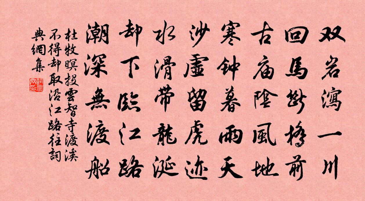 雙岩瀉一川,回馬斷橋前。古廟陰風地,寒鍾暮雨天。