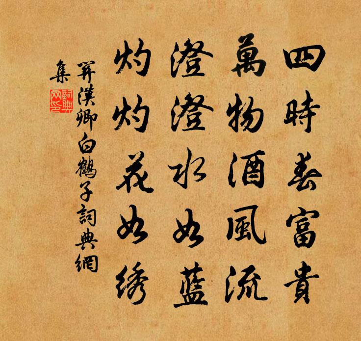 四時春富貴,萬物酒風流。澄澄水如藍,灼灼花如繡。
