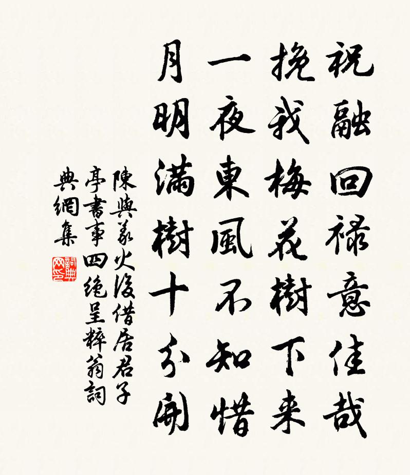 祝融回祿意佳哉,挽我梅花樹下來。一夜東風不知惜,月明滿樹十分開。