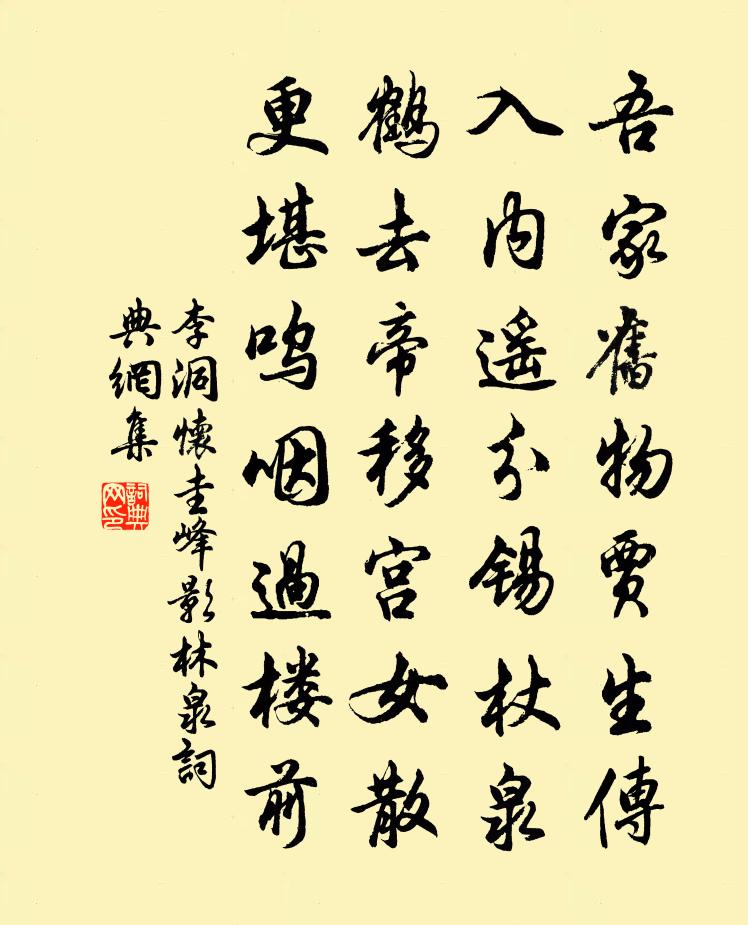 詩詞名句歷史字典書法欣賞書法字典國語詞典說文解字康熙字典古漢語字典標 題 作 者 詩 句 懷圭峰影林泉作者:李洞 朝代:唐代懷圭峰影林泉原文吾家舊物賈生傳,入內遙分錫杖泉。鶴去帝移宮女散,更堪嗚咽過樓前。詩詞問答問:懷圭峰影林泉的作者是誰?答:李洞問:懷圭峰影林泉寫於哪個朝代?答:唐代李洞懷圭峰影林泉書法欣賞懷圭峰影林泉書法作品注釋全唐詩:卷723-58詩詞推薦頌古四十四首釋師範〔宋代〕春生夏長,淡飯粗茶。魚投臭水,彩奔齪家。虞美人·波聲拍枕長淮曉蘇軾〔宋代〕波聲拍枕長淮曉,隙月窺人小。無情汴水自東流,只載一船離恨向西州。竹溪花浦曾同醉,酒味多於淚。誰教風鑒洛岸春行二首張耒〔宋代〕溪上映人楊柳黃,滿溪流水碧泱泱。憑君莫向溪南望,春草春風能斷腸。演雅十章張至龍〔宋代〕蠶飽辦絲課,蜂忙供蜜工。役役為人勞,衣食還自空。珙上人求釋智朋〔宋代〕西風吹雨滿吳天,不犯竿絲一釣船。寂寞要貪香餌味,江湖浮動幾蓑煙。奉和聖制麟德殿宴百僚盧綸〔唐代〕雲辟御筵張,山呼聖壽長。玉欄豐瑞草,金陛立神羊。台鼎資庖膳,天星奉酒漿。蠻夷陪作位,犀象舞成行。網已舟中效東坡用韻陳必復〔宋代〕底事京塵踏軟紅,又隨征棹過吳松。人家半在桑枯住,春水忽迷蘆葦叢。赤蟹白魚今稍稍,紅櫻紫筍已匆匆。船窗光化戊午年舉公見示省試春草碧色詩偶賦是題鄭谷〔唐代〕萇弘血染新,含露滿江濱。想得尋花徑,應迷拾翠人。窗紗迎擁砌,簪玉姑成茵。天借新晴色,雲饒落日春。自戲三絕句。心重答身白居易〔唐代〕因我疏慵休罷早,遣君安樂歲時多。世間老苦人何限,不放君閒奈我何。題童氏畫佚名〔宋代〕林下材華雖可尚,筆端人物更清妍。如何不出深閨里,能以丹青寫外邊。顯元歌釋印肅〔宋代〕不識本家元寶貝,汩沒緣塵生死快。阿賴耶識藏無明,十八界纏繒網蓋。貪嗔痴,常在在,心鏡空花分內外。不知鷓鴣天石耆翁〔宋代〕借問枝頭昨夜春。已傳訊息到柴門。頻看秀色無多艷,拖得清香不見痕。山矗矗,水粼粼。村南村北冷銷魂。人間句周元仲〔宋代〕愁別園林後夜春。江城子(代作)高觀國〔宋代〕綠叢籬菊點嬌黃。過重陽。轉愁傷。風急天高,歸雁不成行。此去郎邊知近遠,秋水闊,碧天長。郎心如妾妾如郎秋懷五首孫嵩〔宋代〕從來感秋人,一例皆楚聲。吾聞古燕趙,慷慨多不平。惜哉宋玉辭,不使荊軻聽。題禪僧院施肩吾〔唐代〕棲禪枝畔數花新,飛作琉璃池上塵。谷鳥自啼猿自叫,不能愁得定中人。南國宋祁〔宋代〕南國豪華地,東風駘蕩天。露蘭薰夕夢,煙柳重春眠。歌斷雲空度,書長燕未傳。吟成休自許,芳草更綿綿。女冠子 鳴鶴餘音卷四之馬鈺〔元代〕人命無常,看青雲、雨過山水。韶華盡過了,百年如夢,有似希夷。忘情絕愛念,好把意馬心猿牢系。綿綿密密。謝廣東經略潘直閣間分貺李濟墨曾豐〔宋代〕灶煤不忌遠,膠汁寧傷清。永言李廷圭,墨法能爾精。滴瀝甚點黍,錙銖輕連城。胡陳梁蒲張,俊出聲錚錚。敢與次韻黔陽王令詩五絕句項安世〔宋代〕見說吟喔三十載,從來此事一生功。勸君莫用雕鐫得,只恐今人晚更窮。名句推薦生有七尺之形,死唯一棺之土,唯立德揚名,可以不朽陳壽《三國志·魏書·文帝紀》 絮影苹香,春在無人處周晉《點絳唇·訪牟存叟南漪釣隱》 秦樓月,年年柳色,灞陵傷別。李白《憶秦娥·簫聲咽》 長呼人,即代叫。人不在,己即到。李毓秀《弟子規·出則弟》 歲寒無與同,朗月何朧朧。潘安《悼亡詩三首》 去其智,絕其能,下不能意。韓非及後人《韓非子·主道》 長風蕭蕭渡水來,歸雁連連映天沒。盧思道《從軍行》 樂極生悲,否極泰來。施耐庵《水滸傳·第二十六回》 家住層城臨漢苑,心隨明月到胡天。皇甫冉《春思》 昨夜東風入武陽,陌頭楊柳黃金色。李白《早春寄王漢陽》