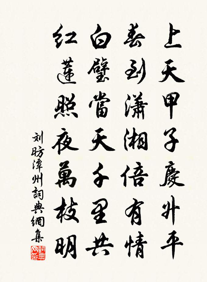 詩詞名句歷史字典書法欣賞書法字典國語詞典說文解字康熙字典古漢語字典標 題 作 者 詩 句 潭州作者:劉昉 朝代:宋代潭州原文上天甲子慶昇平,春到瀟湘倍有情。白璧當天千里共,紅蓮照夜萬枝明。詩詞問答問:潭州的作者是誰?答:劉昉問:潭州寫於哪個朝代?答:宋代劉昉潭州書法欣賞潭州書法作品詩詞推薦和張簿南坡虞儔〔宋代〕春風吹水生碧鱗,南坡花事日日新。水流花出人間去,應有桃源迷路人。四圍山絕染黛綠,夾道柳絲搖麴塵。碧桃次胡則大賦雪韻王珪〔唐代〕凍雀無聲風葉乾,坐來飛霰灑窗寒。梅花歲歲如相待,瓊樹朝朝不厭看。邑犬他皇驚越俗,崖松偃亞老秦官,衰顏和陶東方有一士蘇軾〔宋代〕瓶居本近危,甑墜不知完。夢求亡楚弓,笑解適越冠。忽然返自照,識我本來顏。歸路在腳底,殽潼失重關。屢從三瑞堂黃公度〔宋代〕機雲二子才孤標,妙齡馳聲典午朝。今見遠孫來海嶠,儒雅雍容飾漢條。德化醇醲春有腳,天姿粹美玉不彫。無復憶仲子姜特立〔宋代〕吟喔五字有規模,妙處時時亦起予。送老百年將付汝,豈知顏如請吾車。永城杜寺丞大年暮春白杏花梅堯臣〔宋代〕孤素髮殘枝,非關比眾遲。殷勤勝菖葉,重疊為農時。題林月岩冷泉詩後陳郁〔宋代〕岩里空寒玉有聲,亭前淵靜鏡生明。從他流入香塵去,不礙源頭徹底清。稱心寺駱賓王〔唐代〕征帆恣遠尋,逶迤過稱心。凝滯蘅灌岸,沿洄楂柚林。穿漵不厭曲,艤潭惟愛深。為樂凡幾許,聽取舟中琴。酬丁柴桑陶淵明〔魏晉〕有客有客,愛來爰止;秉直司聰,於惠百里。[冫食]勝如歸,聆善若始。清泉潔塵襟詩樓鑰〔宋代〕騷客滌事幽尋,滌清泉一派滌深。居然浮爽氣,聊用潔塵襟。徹底明蒼石,澄波漾碧岑。應添山澤趣,盡滌市朝市陪李公擇觀金地佛牙秦觀〔宋代〕薄伽梵相含空虛,化人分段同璠璵。爾來示滅二千歲,真骨萬里傳中區。錢塘有尼號法照,得自禁掖藏金鋪。欲因青山道中方回〔宋代〕插天天目隱雲中,但見苕溪綠向東。半折竹初經臘雪,爭妍麥已眩春風。翻飛水鳥偏饒白。窄小村船亦畫紅,聞說題姑蘇邵氏園居梅堯臣〔宋代〕積水夫差國,閒居魯叟心。石科雲起潤,城角竹連陰。燕入池塘晚,花開島嶼深。應當效疏傅,不惜橐中金。奉陪黃帥機訪問元夕戰場歸途見人家園池花木曹彥約〔宋代〕深居處女靜無妝,脫兔飛時勢莫淥。已捷不須三舍避,便將占蓰入耕桑。謁淮西帥劉過〔宋代〕家住徐城未卜還,歸心正在杳冥間。東遊吳魏三千里,西入成都一萬山。解使愁腸能寸寸,空令淚眼已斑斑。此情贈廬陵三劉神童姚勉〔宋代〕唐時劉正字,今復見廬陵。珠樹三根秀,金門一日登。贈君無句錦,覓我到溪冰。不為炎涼變,童年有此能。太常樂章三十首其十九初獻奏禧安之曲楊億〔宋代〕大報於帝,玄德升聞。酬齊良潔,姿盛苾芬。水調歌頭(留宰生日)王炎〔宋代〕愛日護輕暖,醞造小春時。桃溪雲斂,一點郎星吐青輝。煉玉顏容難老,點漆精神如舊,不用摘霜髭。厭薄蓬萊景張宮苑拜嘉州刺史知恩州宋祁〔宋代〕二年同守夢刀城,遙節初為北道行。飛將負才曾捕虜,伏波見上數論兵。劍南剩臘梅迎使,塞下新春柳映營。貴寵讀王尼傳王灼〔宋代〕處世常多憂,政坐口復牽。誰能百無營,飲露如寒蟬。原野足餓殍,山澤漫臞仙。作計苦不早,身窮乃怨天。劉石名句推薦長恨去年今夜雨,灑離亭。晏幾道《愁倚闌令·花陰月》 昨夜星辰昨夜風,畫樓西畔桂堂東。李商隱《無題·昨夜星辰昨夜風》 苦心豈免容螻蟻,香葉終經宿鸞鳳。杜甫《古柏行》 灞涘望長安,河陽視京縣。謝朓《晚登三山還望京邑》 汴水流,泗水流,流到瓜州古渡頭。吳山點點愁白居易《長相思·汴水流》 商女不知亡國恨,隔江猶唱後庭花。杜牧《泊秦淮》 綠葉兮素華,芳菲菲兮襲予;屈原《九歌》 金鞍玉勒尋芳客,未信我廬別有春。于謙《觀書》 古之史也辯道,今之史也耀文。王通《中說·卷三·事君篇》 今年海角天涯。蕭蕭兩鬢生華。李清照《清平樂·年年雪裡》