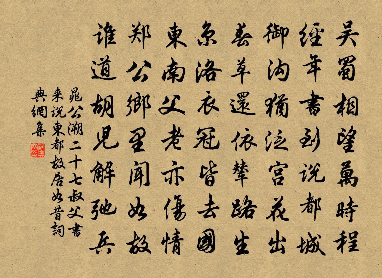 詩詞名句歷史字典書法欣賞書法字典國語詞典說文解字康熙字典古漢語字典標 題 作 者 詩 句 二十七叔父書來說東都故居如昔作者:晁公溯 朝代:宋代原文吳蜀相望萬時程,經年書到說都城。御溝猶泛宮花出,春草還依輦路生。京洛衣冠皆去國,東南父老亦傷情。鄭公鄉里聞如故,誰道胡兒解弛兵。詩詞問答問:《二十七叔父書來說東都故居如昔》的作者是誰?答:晁公溯問:該詩寫於哪個朝代?答:宋代書法欣賞二十七叔父書來說東都故居如昔書法作品詩詞推薦道間即事亦有間而感慨李曾伯〔宋代〕八載天涯喜遂歸,吳整當暑亦相宜。茗烹陽羨慰久間,鱸買松江更一奇。老樹經風惟柳長,新田得雨未秋遲。不因挽主簿楊仲遠詩虞儔〔宋代〕居士胸懷壑與丘,琴山懷抱枕清流。一區宅好真揚子,萬卷書多似鄴侯。好客亦嘗陪俎豆,諸郎殊不廢箕裘。人間麥秀歌佚名〔先秦〕麥秀漸漸兮,禾黍油油。彼狡童兮,不與我好兮。春日張鎡〔宋代〕銀葉煎香細雨聲,竹陰行處藥花明。麥光小楷臨唐帖,更有人間第一清。四十戴表元〔宋代〕四十不解事,真成無用人。交遊青草盡,途路白雲新。漸覺名妨靜,難將學濟貧。堂堂楚龔傳,猶有隱流嗔。岳陽樓雜詠十二絕胡寅〔宋代〕范公才具濟川舟,翰墨居然第一流。第向遺文窺遠意,原言憂樂繼前修。常州太平寺法華院薝蔔亭醉題蘇軾〔宋代〕六花薝蔔林間佛,九節菖蒲石上仙。何似東坡鐵拄杖,一時驚散野狐禪。金剛隨機無盡頌離相寂滅分第十四釋印肅〔宋代〕金佛曾忍辰,樂處岩庵宿。忽睹歌利王,將直拗作曲。郴江百詠並序劉相國書堂阮閱〔宋代〕疏林翠竹水滄滄,問是劉公舊隱堂。但得青編有完傳,故居寂寞亦何傷。示寶覺王安石〔宋代〕宿兩轉歊煩,朝雲擁清迥。蕭蕭碧柳軟,脈脈紅蕖靚。默臥如有懷,荒乘豈無興。幽人適過我,共取牆陰徑。奉和聖制幸白鹿觀應制張說〔唐代〕洞府寒山曲,天游日旰回。披雲看石鏡,拂雪上金台。竹徑龍驂下,松庭鶴轡來。雙童還獻藥,五色耀仙材。七松亭張喬〔唐代〕七松亭上望秦川,高鳥閒雲滿目前。已比子真耕谷口,豈同陶令臥江邊。臨崖把卷驚回燒,掃石留僧聽遠泉。明月歸山留別子侄二首劉商〔唐代〕車馬驅馳人在世,東西南北鶴隨雲。莫言貧病無留別,百代簪纓將付君。不逐浮雲不羨魚,杏花茅屋向陽居。鶴鳴游長安諸寺聯句。光宅坊光宅寺。中禪師影堂聯句段成式〔唐代〕名下固無虛,敖曹貌嚴毅。洞達見空王,圓融入佛地。 ——張希復一言當要害,忽忽醒諸醉。不意難忘(代贈)高觀國〔宋代〕仙子奇容。是名花第一,美占春風。煙香籠淺翠,露靚浥芳紅。憐舞燕,惜驚鴻。想獨步吳宮。料認得、嬌雲媚雨句吳可〔宋代〕壽寧閒鎖翰林春,月明空照瓊花影。端午帖子太上皇后閣周必大〔宋代〕炎官火傘謾高張,心靜何妨五月涼。百和暖添香篆永,一編徐展道經長。寄尉遲侍御李昭象〔唐代〕我眠青嶂弄澄潭,君戴貂蟬白玉篸。應向謝公樓上望,九華山色在西南。浣溪沙(雙筍)張炎〔宋代〕空色莊嚴玉版師。老斑遮護錦繃兒。只愁一夜被風吹。潤處似沾篔穀雨,斫來如帶渭川泥。從空托出鎮帷犀。謁金門(春雪)韓元吉〔宋代〕春尚淺。誰把玉英裁翦。盡道梅梢開未遍。捲簾花滿院。樓上酒融歌暖。樓下水平煙遠。卻似涌金門外見。絮飛波名句推薦奴為出來難,教君恣意憐。李煜《菩薩蠻·花明月暗籠輕霧》 桃今百餘尺,花落成枯枝。李白《獨不見》 池上憑闌愁無侶。奈此個、單棲情緒。柳永《甘草子·秋暮》 欲為君盡君道,欲為臣盡臣道孟子《孟子·離婁章句上·第二節》 歲歲金河復玉關,朝朝馬策與刀環。柳中庸《征人怨 / 征怨》 夫志,氣之帥也;氣,體之充也。孟子《孟子·公孫丑章句上·第二節》 伊川桃李正芳新,寒食山中酒復春。宋之問《寒食還陸渾別業》 憑高遠望,見家鄉、只在白雲深處。王瀾《念奴嬌·避地溢江書於新亭》 一日萬機,一人聽斷,雖復憂勞,安能盡善?吳兢《貞觀政要·卷二·論求諫》 楝花飄砌。蔌蔌清香細。謝逸《千秋歲·詠夏景》