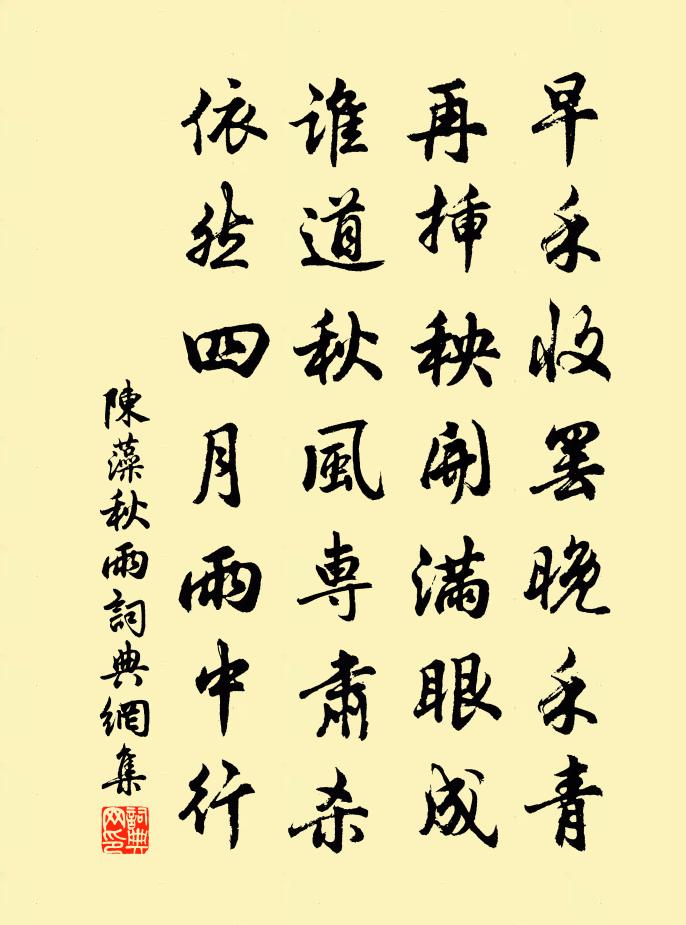 詩詞名句歷史字典書法欣賞書法字典國語詞典說文解字康熙字典古漢語字典標 題 作 者 詩 句 秋雨作者:陳藻 朝代:宋代秋雨原文早禾收罷晚禾青,再插秧開滿眼成。誰道秋風專肅殺,依然四月雨中行。詩詞問答問:秋雨的作者是誰?答:陳藻問:秋雨寫於哪個朝代?答:宋代陳藻秋雨書法欣賞秋雨書法作品詩詞推薦郡中言懷寄西川蕭員外羊士諤〔唐代〕功名無力愧勤王,已近終南得草堂。身外盡歸天竺偈,腰間唯有會稽章。何時臘酒逢山客,可惜梅枝亞石床。歲晚比作陳下瓜麴釀成奇絕屬病瘍不敢取醉小啜而陸游〔宋代〕翠蔓扶疏採擷忙,麴生系出古淮陽。蹋成明月團團白,釀作新鵝淡淡黃。醅瓮秋淒驚凜冽,糟床夜注愛淋浪,西齋和樂天為張建封侍兒盼盼作仍繼五篇·其四姜特立〔宋代〕黃金不惜買蛾眉,揀得如花四五枝。遇有酒時須飲酒,得吟詩處且吟詩。寄懷在伯三首趙蕃〔宋代〕倏爾聽鳴鴃,慨然悲眾芳。春事且衰歇,吾行可相羊。問年逾不惑,嘐嘐斯謂狂。益矣多聞友,從之道阻長。陸左丞夫人鄭氏輓詞四首王銍〔宋代〕軒冕三從盛,門庭五福優。淒涼孝子淚,悲慟故山秋。楊子新阡啟,班昭舊史留。空堂對萱草,無復更忘憂。頌古五十七首釋道昌〔宋代〕高揖釋迦,不拜彌勒,吃棒趁出猶費力,滴水冰生知未知,拋磚引玉有人識。丁巳燈夕前六日觀抱拙寄敏齋韻因事有感走筆釋斯植〔宋代〕萍跡倚春風,春光苦未濃。人間連日事,塵外一宵鍾。遠雁書難寄,殘碑字已封。幽人住城市,清夢兩三重。竹杖黃庚〔宋代〕一枝蒼節瘦,恰稱地行仙。不但挑詩卷,尤堪掛酒錢。看梅敲雪落,引鶴卓苔穿。莫近葛陂水,化龍飛上天。抒懷上南京常山公宋祁〔宋代〕緇帷悵別倏經年,榮路心危重惘然。寧死道邊終自直,狂歌河上欲誰憐。魂隨夜蝶星垂地,信斷秋鱗水接天。早晚季夏有懷仲晦黃銖〔宋代〕六月苦炎蒸,山居晝方永。泠然南風至,蕭散荷氣騁。蜩鳴綠樹陰,魚躍橫塘淨。高蔓展修條,幽篁茁陰穎。良時春日美新綠詞施肩吾〔唐代〕前日萌芽小於粟,今朝草樹色已足。天公不語能運為,驅遣羲和染新綠。純甫以予去歲九日赴東陽今年復趨府作菊花問強至〔宋代〕籬菊答,自古人生有離合。不得淵明泛玉觴,還有子真攜酒榼。避為師依韻答李獻甫梅堯臣〔宋代〕蛟龍養鬐鬣,當在浩浩潯。虎豹養文采,當在巍巍岑。我無太山高,我無滄海深。斗水與堆阜,恐未慰此心。故人趙崇嶓〔宋代〕故人西南風,遺我一束詩。長喔結幽想,慌惚若見之。游雲靄層霄,聚散安可期。虛空聞妙音,意重千金貲。相思送歐陽袞歸閩中項斯〔唐代〕秦城幾年住,猶著故鄉衣。失意時相識,成名後獨歸。海秋蠻樹黑,嶺夜瘴禽飛。為學心難滿,知君更掩扉。竹枝詞鄭燮〔清代〕水流曲曲樹重重,樹里春山一兩峰。茅屋深 * 不見,數聲雞犬夕陽中。玉樓春(京市舞女)吳文英〔宋代〕茸茸B23E帽遮梅額。金蟬羅翦胡衫窄。乘肩爭看小腰身,倦態強隨閒鼓笛。問稱家住城東陌。欲買千金應不惜玉胡蝶花李覯〔宋代〕胡蝶生來只愛花,春工描樣作奇葩。莊周有夢何曾覺,冰雪肌膚落幾家。天津感事二十六首邵雍〔宋代〕鳳樓深處鏁雲煙,一鏁雲煙又百年。痛惜汾陰西祀後,翠華辜負上陽天。近作對江牡丹吟陳列間呈正仲正仲於拙吟阮不舒岳祥〔宋代〕邵子花開二十四,吟詩驚動洛諸公。我家兩株三十枝,歡喜亦與邵子同。作詩七絕惱正仲,過旬不見回郵筒。正仲名句推薦天不為人之惡寒也輟冬,地不為人之惡遼遠也輟廣,君子不為小人之匈匈也輟行。荀子《荀子·天論》 應難奈,故人天際,望徹淮山,相思無雁足。史達祖《八歸·秋江帶雨》 法令至行,公平無私劉向《戰國策·秦一·衛鞅亡魏入秦》 盡教春思亂如雲,莫管世情輕似絮晏幾道《玉樓春·雕鞍好為鶯花住》 以陽求陰,苞以德也;以陰結陽,施以力也。王詡《鬼谷子·捭闔》 晴風初破凍,柳眼梅腮,已覺春心動。李清照《蝶戀花·暖雨晴風初破凍》 問元戎早晚,鳴鞭徑去,解天山箭。元好問《水龍吟·從商帥國器獵於南陽同仲澤鼎玉賦此》 恨蕭蕭、無情風雨,夜來揉損瓊肌。李清照《多麗·詠白菊》 蚤是傷春夢雨天,可堪芳草更芊芊。韋莊《長安清明》 東山老,可堪歲晚,獨聽桓箏。葉夢得《八聲甘州·壽陽樓八公山作》