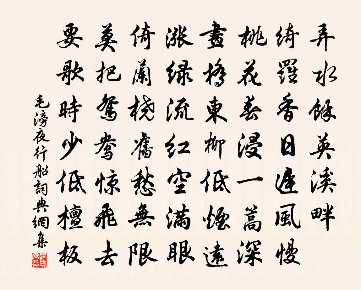 詩詞名句歷史字典書法欣賞書法字典國語詞典說文解字康熙字典古漢語字典標 題 作 者 詩 句 夜行船作者:毛滂 朝代:宋代夜行船原文弄水餘英溪畔。綺羅香、日遲風慢。桃花春浸一篙深,畫橋東、柳低煙遠。漲綠流紅空滿眼。倚蘭橈、舊愁無限。莫把鴛鴦驚飛去,要歌時、少低檀板。詩詞問答問:夜行船的作者是誰?答:毛滂問:夜行船寫於哪個朝代?答:宋代問:夜行船是什麼體裁?答:詞問:毛滂的名句有哪些?答:毛滂名句大全毛滂夜行船書法欣賞夜行船書法作品詩詞推薦北使長城王無競〔唐代〕秦世築長城,長城無極已。暴兵四十萬,興工九千里。死人如亂麻,白骨相撐委。殫弊未雲悟,窮毒豈知止。胡塵醜奴兒/採桑子石孝友〔宋代〕凌花鏡里桃花笑,清影團團。月淡風寒。深夜移燈許細觀。武陵溪上當時事,何處飛鸞。淚紙驚瀾。飄盡紅英不忍賦得風動萬年枝許稷〔唐代〕瓊樹偏春早,光飛處處宜。曉浮三殿日,暗度萬年枝。婀娜搖仙禁,繽翻映玉池。含芳煙乍合,拂砌影初移。為近點絳唇(崇陽野次)王炎〔宋代〕雨濕東風,誰家燕子穿庭戶。孤村薄暮。花落春歸去。浪走天涯,歸思縈心緒。家何處。亂山無數。不記來時路。次友人寒食書懷韻二首張元乾〔宋代〕往昔昇平客大梁,新煙然燭九衢香。車聲馳道內家出,春色禁溝宮柳黃。陵邑只今稱虜地,衣冠誰復問唐裝。傷心題子陵釣台孫沔〔宋代〕舊交為帝不能邀,百尺雙台照暮濤。逸跡已將山共永,清名仍與月爭高。魯連解難終辭祿,龍伯持傾只釣鰲。列傳春日北山二首高翥〔宋代〕插花吹笛兩山中,桃李尊前日日同。待得馬頭飛絮滿,更來沽酒看殘紅。贈趙六貞固二首陳子昂〔唐代〕回中琴烽火入,琴塞上追兵琴起。此時琴邊朔寒,登隴思君子。東顧望漢京,南山雲霧裡。赤螭媚其彩,婉孌蒼梧送潛江令徐盈項安世〔宋代〕漢江西畔蜀江東,中有荊王古縣公。蒍艾獵來民見德,谷於菟去士傅忠。肝腸可奈平生苦,機杼胡庸抵死窮。君寵宿壽安甘棠館·行人方倦役司馬扎〔唐代〕行人方倦役,到此似還鄉。流水來關外,青山近洛陽。溪雲歸洞鶴,松月半軒霜。坐恐晨鐘動,天涯道路長。對雨李白〔唐代〕捲簾聊舉目,露濕草綿芊。古岫藏雲毳,空庭織碎煙。水紋愁不起,風線重難牽。盡日扶犁叟,往來江樹前。廣州張俞〔宋代〕越地春生草,春城瞰渺茫。朔風驚瘴海,霧雨破南荒。巨舶通蕃國,孤雲遠帝鄉。酌別世弼黃庭堅〔宋代〕王郎婚友平生期,學問文章過吾黨。一見懸知白璧奇,三年未負青雲賞。蘇秦六印自多金,陶朱再相宜藏鏹。貧賤春日田園雜興陳公凱〔宋代〕世事不掛眼,寄情農圃中。鑰梨術曉雨,杖屐立東風。芽過驗仁胍,澆花墟化工。獨餘真意味,濁酒 * 松。送張文潛之淮南孔武仲〔宋代〕瀛館登仙俊,金閨引籍優。辭班見天子,行色動諸侯。楚日籃輿暖,淮南畫舸遒,歸時春已好,遲子曲江頭。禪人寫師真請贊釋慧遠〔宋代〕到處說禪說道,為人入水入泥。半生出來住院,一□斷送頭皮。贊也得,毀也得,臨濟便是白拈賊。賊賊,也只當倦妝圖盛世忠〔宋代〕睡覺春山懶更添,起來余恨鎖眉尖。料應春事關心曲,怕見楊花不捲簾。湘月·天風吹我龔自珍〔清代〕壬申夏泛舟西湖,述懷有賦,時予別杭州蓋十年矣天風吹我,墮湖山一角,果然清麗。曾是東華生小客,回首蒼茫二月二日太常致齋晨起呈景仁次道二同舍司馬光〔宋代〕官舍春蕭瑟,朝來尚薄寒。人雖繁陌上,塵不近門端。已負踏青約,仍無舉白歡。憑君御溝上,試折柳條看。和孔武仲金陵九詠其八定林院蘇轍〔宋代〕定林兩山間,崖木生欲合。茅屋倚岩隈,重重陰清樾。晨齋取旁寺,生事信幽絕。吾人定何為,常欲依暖熱。名句推薦一寸柔腸情幾許?薄衾孤枕,夢回人靜,徹曉瀟瀟雨。惠洪《青玉案·絲槐煙柳長亭路》 夜吟敲落霜紅,船傍楓橋系。吳文英《荔枝香近·送人游南徐》 花紅易衰似郎意,水流無限似儂愁。劉禹錫《竹枝詞·山桃紅花滿上頭》 女曰雞鳴,士曰昧旦。佚名《女曰雞鳴》 庭前時有東風入,楊柳千條盡向西。劉方平《代春怨》 帳底吹笙香吐麝,更無一點塵隨馬。蘇軾《蝶戀花·密州上元》 人刑者非人也,罰人者非罰也。來俊臣《羅織經·刑罰卷第十一》 酷憐嬌易散,燕子學偎紅。納蘭性德《臨江仙·絲雨如塵雲著水》 小桃灼灼柳鬖鬖,春色滿江南。黃庭堅《訴衷情·小桃灼灼柳鬖鬖》 璇室群酣夜,璜溪獨釣時。劉基《題太公釣渭圖》