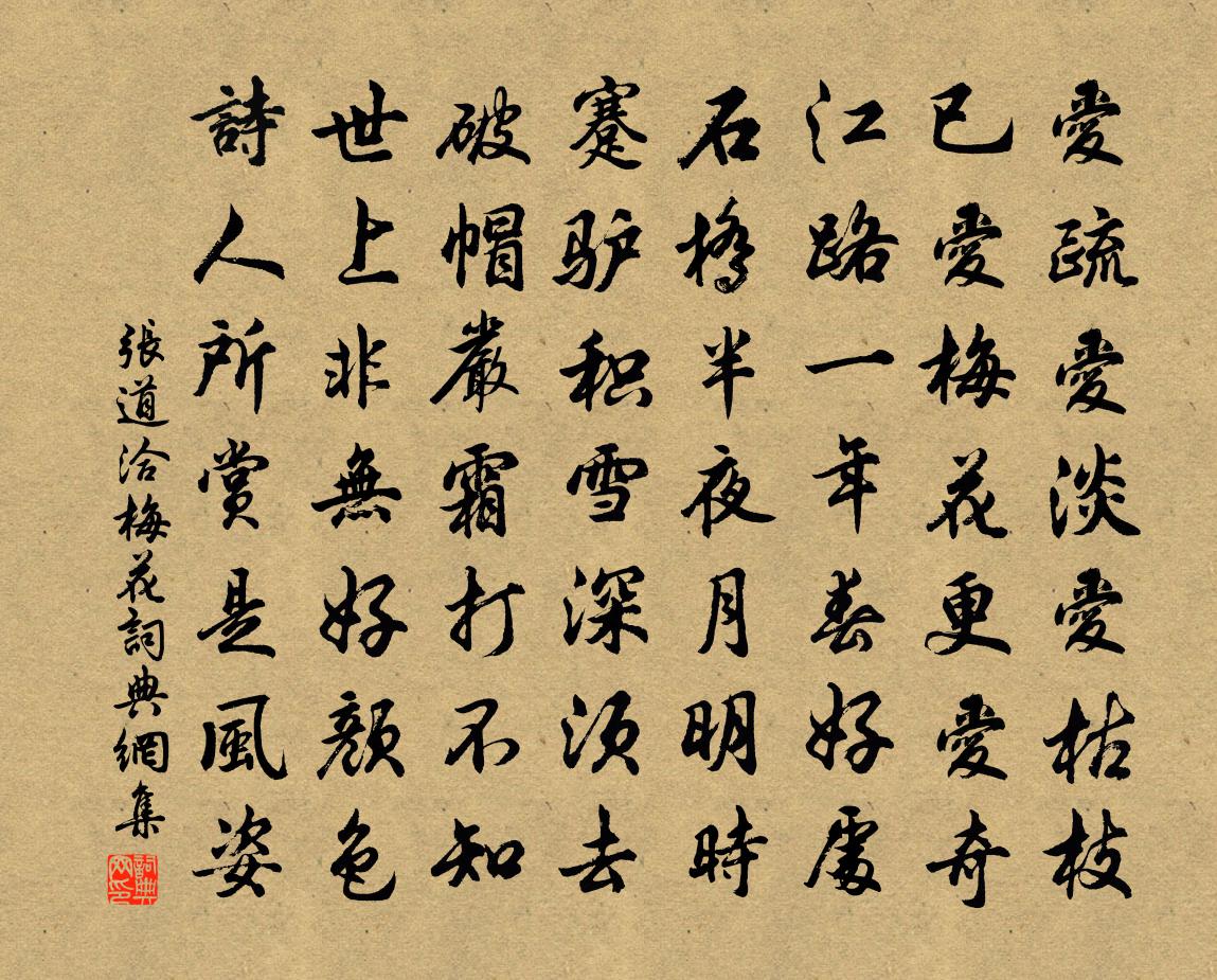 詩詞名句歷史字典書法欣賞書法字典國語詞典說文解字康熙字典古漢語字典標 題 作 者 詩 句 梅花作者:張道洽 朝代:宋代梅花原文愛疏愛淡愛枯枝,已愛梅花更愛奇。江路一年春好處,石橋半夜月明時。蹇驢積雪深須去,破帽嚴霜打不知。世上非無好顏色,詩人所賞是風姿。詩詞問答問:梅花的作者是誰?答:張道洽問:梅花寫於哪個朝代?答:宋代問:梅花是什麼體裁?答:七律張道洽梅花書法欣賞梅花書法作品詩詞推薦瑞龍吟(壽吳丞相·壽詞)陳允平〔宋代〕雙溪墅。重見種玉鋤雲,採花研露。遙知綠野芳濃,錦堂燕子,迎門共舞。近前語。還問去年山館,舊經行處。西寄李君厚王令〔宋代〕一笑東風去十年,重來稚子已差肩。脫衣呼客家聲舊,把酒論心士氣全。病驥遠思牽直道,老鷹秋夢入青天。自言宣化堂王聞詩〔宋代〕聖主瑞居念遠民,盡將休戚寄斯文。時來宣化堂中坐,應念田中正苦辛。季子掛劍歌唐肅〔宋代〕季子讓一國,視之敝屣然。寧當寶一劍,不為徐君懸。徐君雖亡骨未朽,劍掛墳前白楊柳。君知不知不足悲,我心春暮佚名〔宋代〕三月名園草色青,夢回猶聽賣花聲。春光不管人慌悴,飛絮紛紛弄晚晴。梅亭李龍高〔宋代〕飛甍面面枕冰霜,雲抵輕紗月抵窗。莫怪能寒吟徹夕,一生無夢到沈香。塞外雜詠林則徐〔清代〕天山萬笏聳瓊瑤,導我西行伴寂寥。我與山靈相對笑,滿天晴雪共難消。奉和汴州令狐令公二十二韻(同用淹字)白居易〔唐代〕客有東征者,夷門一落帆。二年方得到,五日未為淹。[相府領鎮隔年,居易方到。既到,陪奉游宴,凡經五日。滬上雜書何紹基〔清代〕新閘才開老閘過,樓台金碧照江波。愁風悶雨人無寐,海國平分鬼氣多。建康六感晉劉子翬〔宋代〕日昃無全照,南遷事倉忙。龍謠方協瑞,星衲已告亡。凌遲百年運,凜凜危莫將。向來問鼎人,項背常相望。環宮酹江月(羅浮賦別)葛長庚〔宋代〕羅浮山下,正秋高氣爽,淒涼風物。瘦落丹楓飛紫翠,峭拔青山石壁。客鬢蕭疏,詩腸清苦,病骨如冰雪。怒髯鐵山居詩釋延壽〔宋代〕巨侵層巒本自平,只緣人世強分明。五侯門外悲觀意,長樂坡頭去住情。學道不如忘有念,修身爭是了無生。三祗高安別蘇野塘三首裘萬頃〔宋代〕胸中泉石真成癖,紙上雲煙總是詩。分我漁舟三四個,故山歸去弄漣漪。木蘭花慢 壽張可與張伯淳〔元代〕對黃花爛漫,能幾日,又重陽。問眼底湖山,新□□□,別是風光。三台近臨吳地,映奎*、明處紫微郎。人道當西江月·五柳坊中煙綠向子諲〔宋代〕五柳坊中煙綠,百花洲上雲紅。蕭蕭白髮兩衰翁。不與時人同夢。拋擲麟符虎節,徜徉江月林風。世間萬事轉頭空客懷李燾〔宋代〕雨意忽如此,客愁將奈何。出門誰可詣,掩卷獨高歌。塵世兔三穴,古人蓬一窠。區區奚足道,默默幸無它。康素居士邵君輓詩蔡戡〔宋代〕世儒多戶牖,家學自淵源。處士多兼美,先王道益尊。黃金散閭里,白玉掩丘原。猿鶴空悽怨,清江繞故園。徽安門曉望歐陽修〔宋代〕都門收宿霧,佳氣鬱◇◇。曉日寒川上,青山白霧中。樓台萬瓦合,車馬九衢通。恨乏登高賦,徒知京邑雄。瀑布六首孔武仲〔宋代〕接石為槽繞畫檐,清風爽氣坐來添。恰從天外為飛瀑,又向人間作水簾。題杉溪驛二首蔡襄〔宋代〕隘道臨深壑,俯闌千仞強。驚禽忽獨去,怪石偶成筆。月下芙渠色,風前{禾罷}稏香。反慚群動息,幽意更徬徨名句推薦岱宗夫如何?齊魯青未了。杜甫《望岳》 春山碧樹秋重綠,人在武陵溪。劉基《眼兒媚·秋思》 何當重相見,尊酒慰離顏。溫庭筠《送人東遊》 月華如練,長是人千里。范仲淹《御街行·秋日懷舊》 夫萬事萬物之理,不外於吾心。王陽明《傳習錄·卷中·答顧東橋書》 萬里赴戎機,關山度若飛佚名《木蘭詩/木蘭辭》 福來有由,禍來有漸。陳壽《三國志·吳書·吳主五子傳》 朗月清風,濃煙暗雨,天教憔悴度芳姿。李清照《多麗·詠白菊》 多少天涯未歸客,盡借籬落看秋風。唐寅《菊花》 關河無限清愁,不堪臨鑒岳珂《祝英台近·北固亭》