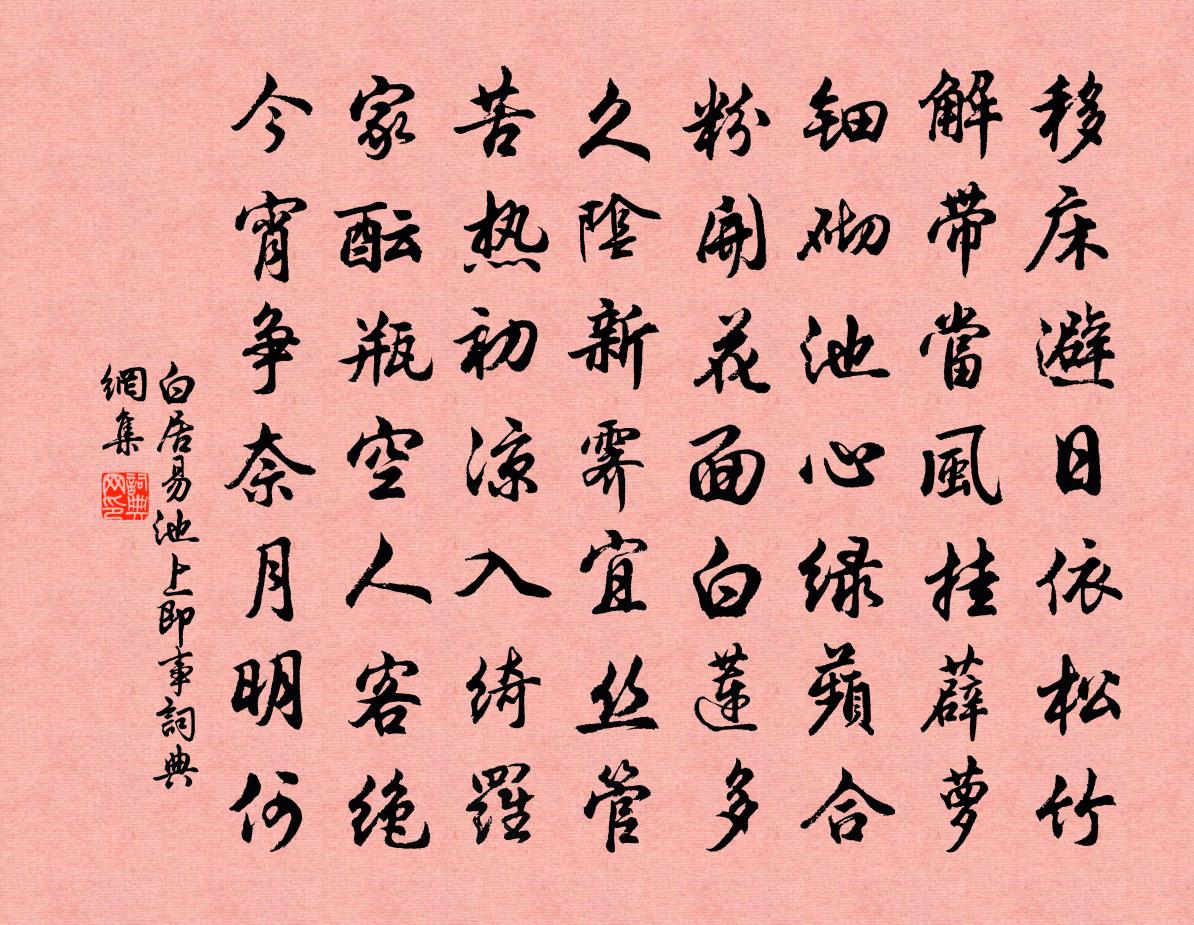 移床避日依松竹,解帶當風掛薜蘿。鈿砌池心綠蘋合,
