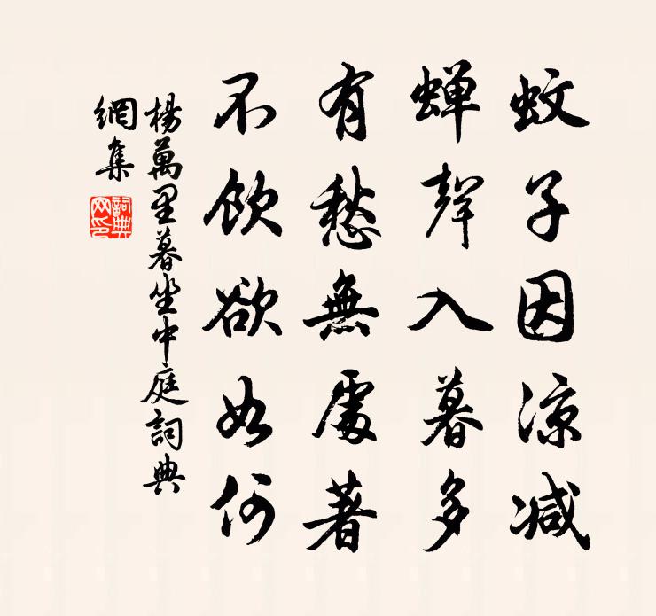 蚊子因涼減,蟬聲入暮多。有愁無處著,不飲欲如何。