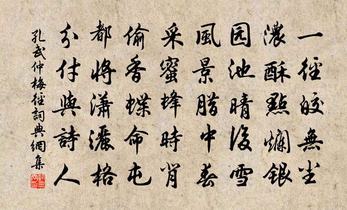 詩詞名句歷史字典書法欣賞書法字典國語詞典說文解字康熙字典古漢語字典標 題 作 者 詩 句 梅徑作者:孔武仲 朝代:宋代梅徑原文一徑皎無塵,濃酥點爛銀。園池晴後雪,風景臘中春。采蜜蜂時背,偷香蝶命屯。都將瀟灑格,分付與詩人。詩詞問答問:梅徑的作者是誰?答:孔武仲問:梅徑寫於哪個朝代?答:宋代孔武仲梅徑書法欣賞梅徑書法作品詩詞推薦偈頌一百三十六首釋惟一〔宋代〕泯志灰心,參禪學道。無煩惱中,自討煩惱。可不向老胡來已前,試著眼看,自己分上有何欠少。天童恁么道,不鄧隱峰贊釋了惠〔宋代〕金錫一震,虛空退聽。百萬雄兵,難破此陣。一時遊戲神通,未免旁觀者哂。念奴嬌李億〔宋代〕鏡鸞分影,望天涯腸斷,悄無紅葉。幾度秋風吹翠被,一縷幽香難滅。燕卜新梁,花移別檻,回首春如客。歡情何偈頌七十六首釋師觀〔宋代〕臘八是今朝,如來成道日。夜半見明星,從此生荊棘。荊棘生人間,天上錯流傳。酬仲幾秦州道上見寄文同〔宋代〕送子入秦處,紛紛黃葉間。孤舟渡野水,疋馬轉遙山。明月每夜望,清風何日還。新詩慰牢落,為一破愁顏。打坐葉茵〔宋代〕一卷黃庭日未移,跏趺坐處篆香遲。兒曹問我新官職,順適堂中老住持。戊午喜罷和糴姚勉〔宋代〕虐糴安能峙糗糧,只因根本暗中戕。並緣鼠猾豐衣食,受納狼貪富橐囊。中戶白科都罄室,列城黑腐謾盈倉。邊塵種菊徐照〔宋代〕屈平發悲吟,采之療飢腹。人貌歲不同,興嘆有荀昱。遠人陶淵明,釀酒不等熟。醉把菊花枝,醅濁巾可漉。夜聞子規王建〔唐代〕子規啼不歇,到曉口應穿。況是不眠夜,聲聲在耳邊。雨後秋涼白居易〔唐代〕夜來秋雨後,秋氣颯然新。團扇先辭手,生衣不著身。更添砧引思,難與簟相親。此境誰偏覺,貧閒老瘦人。句呂梡〔宋代〕三山鼎峙多幽賞,千里甌圓盡勝游。憶昔韋莊〔唐代〕昔年曾向五陵游,子夜歌清月滿樓。銀燭樹前長似晝,露桃華里不知秋。西園公子名無忌,南國佳人號莫愁。今日浣溪沙毛滂〔宋代〕小雨初收蝶做團。和風輕拂燕泥乾。鞦韆院落落花寒。莫對清尊追往事,更催新火續餘歡。一春心緒倚闌乾。鷓鴣天(元谿不見梅)辛棄疾〔宋代〕千丈清溪百步雷。柴門都向水邊開。亂雲剩帶炊煙去,野水閒將日影來。穿窈窕,歷崔嵬。東林試問幾時栽。動搖五泄山三學院十題禱雨潭釋鹹潤〔宋代〕嘗聞越邑民,禱雨碧岩畔。神龍如有期,為霖通旱暵。酬別江主簿屯騎吳均〔南北朝〕有客告將離,贈言重蘭蕙。泛舟當泛濟,結交當結桂。濟水有清源,桂樹多芳根。毛公與朱亥,俱在信陵門。趙瑟送秦系戴叔倫〔唐代〕五都來往無舊業,一代公卿盡故人。不肯低頭受羈束,遠師溪上拂纓塵。聞雁釋文珦〔宋代〕重雲散盡天如鏡,寒雁哭霜冬夜永。欲寫相思寄遠人,翩翩過盡無留影。偶書王安石〔宋代〕雄也營身足,聃兮悞汝多。捐書知聖已,絕學奈禽何。夏日雜題陸游〔宋代〕一枝黎峒桄榔杖,二寸羊城蝳蝐冠。萬里來為老人壽,始知天地不勝寬。名句推薦紅旗捲起農奴戟,黑手高懸霸主鞭。 * 《七律·到韶山》 試澆橋下水,今夕到湘中。陳與義《臨江仙·高詠楚詞酬午日》 不愁屋漏床床濕,且喜溪流岸岸深曾幾《蘇秀道中》 林表明霽色,城中增暮寒。祖詠《終南望余雪》 風乍起,吹皺一池春水。馮延巳《謁金門·風乍起》 永懷愁不寐,松月夜窗虛。孟浩然《歲暮歸南山 / 歸故園作 / 歸終南山》 圖未就之功,不如保已成之業洪應明《菜根譚·概論》 時霎清明,載花不過西園路。吳文英《點絳唇·時霎清明》 月照城頭烏半飛,霜淒萬樹風入衣。李頎《琴歌》 天地交而萬物通也,上下交而其志同也。佚名《易傳·彖傳上·泰》