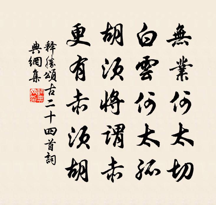 詩詞名句歷史字典書法欣賞書法字典國語詞典說文解字康熙字典古漢語字典標 題 作 者 詩 句 頌古二十四首作者:釋勝 朝代:宋代頌古二十四首原文無業何太切,白云何太孤。鬍鬚將謂赤,更有赤鬚鬍。詩詞問答問:頌古二十四首的作者是誰?答:釋勝問:頌古二十四首寫於哪個朝代?答:宋代釋勝頌古二十四首書法欣賞頌古二十四首書法作品詩詞推薦長思仙侯善淵〔元代〕素天晴。散華瑛。薄淡靈煙滿地橫。寒光爽*清。寶精凝。玉辰澄。兩曜交光燦日明。琅點歲星。餞濟陰梁明府各探一物得荷葉張九齡〔唐代〕荷葉生幽渚,芳華信在茲。朝朝空此地,采采欲因誰。但恐星霜改,還將蒲稗衰。懷君美人別,聊以贈心期。青龍寺曇壁上人院集裴迪〔唐代〕靈境信為絕,法堂出塵氛。自然成高致,向下看浮雲。迤邐峰岫列,參差閭井分。林端遠堞見,風末疏鍾聞。吾師減字木蘭花(丁未泊丈亭)陳著〔宋代〕夜帆初上。準擬今朝過越上。及到今朝。卻被西風挫一潮。丈亭一處。要得縱觀贏得住。行止皆天。誰道人生客路十二時/憶少年佚名〔宋代〕明昌世、乾統彌文。皇德揆華勛。三辰順晷,慶靄輪囷。潛寶耀坤珍。躬祫饗、肅薦犧尊。孝儀申。助祭儼纓紳。小至杜甫〔唐代〕天時人事日相催,冬至陽生春又來。刺繡五紋添弱線,吹葭六琯動浮灰。岸容待臘將舒柳,山意沖寒欲放梅。雲物思歸八絕胡寅〔宋代〕上聖心唯赤子矜,庶邦可以佐軍興。自書政拙催科考,今古舂陵復永陵。兩日苦風思江南梅堯臣〔宋代〕擺磨萬木聲,朝吼暮不止。吹沙作雲飛,物狀顏色死。還念江上山,落瀑鳴幾里。茅茨松竹間,翠的門前水。下窺喜收知舊書,復畏答,書二絕范成大〔宋代〕強裁尺互答相思,兩目眵昏腕力疲。牽率老夫令至此,門前猶說報書遲。送盧緘歸揚州趙嘏〔唐代〕曾向雷塘靜掩扉,荀家燈火有餘輝。關河日暮望空極,楊柳渡頭人獨歸。隋苑荒颱風裊裊,灞陵殘雨夢依依。今年經廢宅杜荀鶴〔唐代〕人生當貴盛,修德可延之。不慮有今日,爭教無破時。蘚斑題字壁,花髮帶巢枝。何況蒿原上,荒墳與折碑。有懷昌谷老梅再次晦父韻兼贈仲元弟曹彥約〔宋代〕水邊籬落西湖老,結伴寒標歸計早。月昏香動幅巾時,鐵石廣平猶壓倒。新來昌谷闢藩牆,密花疏乾添環抱。等閒一春吟邵雍〔宋代〕一春九十日,幾雨占幾半。花好不成觀,心狂未能按。過荊軻冢四絕句晁說之〔宋代〕貫日白虹可奈何,書生容易笑荊軻。美新伾黨臨遺冢,慚愧絕無狐兔過。功成亦賦短項翁詩複次其韻李衡〔宋代〕君不見仲淹居河汾,目營四海心六經。又不見子幼反田裡,拊缶烏烏徒快耳。續經憤世雖自喜,豈識濁醪函妙理。登鹹陽北寺樓(一作登感化寺樓)張籍〔唐代〕高秋原上寺,下馬一登臨。渭水西來直,秦山南向深。舊宮人不住,荒碣路難尋。日暮涼風起,蕭條多遠心。寒夜文宴得驚字陸龜蒙〔唐代〕各將寒調觸詩情,旋見微澌入硯生。霜月滿庭人暫起,汀洲半夜雁初驚。三秋每為仙題想,一日多因累句傾。千里頌古二十一首釋鼎需〔宋代〕路窮崖斷進無門,賴有山翁指出原。九曲黃河清徹底,誰知別是一乾坤。寄王滌貫休〔唐代〕梅月多開戶,衣裳潤欲滴。寂寥雖無形,不是小讎敵。地虛草木壯,雨白桃李赤。永日無人來,庭花苦狼藉。吟高送按察王僉事除行台察院王義山〔宋代〕漠漠天高不可呼,斯民何處訴無辜。從來鷹隼肯敺雀,除卻豺狼安問狐。霹靂一聲碎奸膽,風霜八路擊貪夫。得公名句推薦嘆息老來交舊盡,睡來誰共午甌茶。陸游《幽居初夏》 露蓼香涇,記年時相識吳文英《尾犯·甲辰中秋》 重陽佳節意休休,與客攜壺共上樓。姜塘《摘星樓九日登臨》 萬種思量,多方開解,只恁寂寞厭厭地。柳永《憶帝京·薄衾小枕涼天氣》 嘆鳳嗟身否,傷麟怨道窮。李隆基《經鄒魯祭孔子而嘆之》 別路琴聲斷,秋山猿鳥吟。盧照鄰《送梓州高參軍還京》 心能辨事非,處事方能決斷;人不忘廉恥,立身自不卑污。王永彬《圍爐夜話·第二十則》 柳岸風來影漸疏,使君家似野人居。杜牧《齊安郡晚秋》 落木蕭蕭,琉璃葉下瓊葩吐。王十朋《點絳唇·素香丁香》 福滿須防有禍,凶多料必無爭。佚名《增廣賢文·下集》