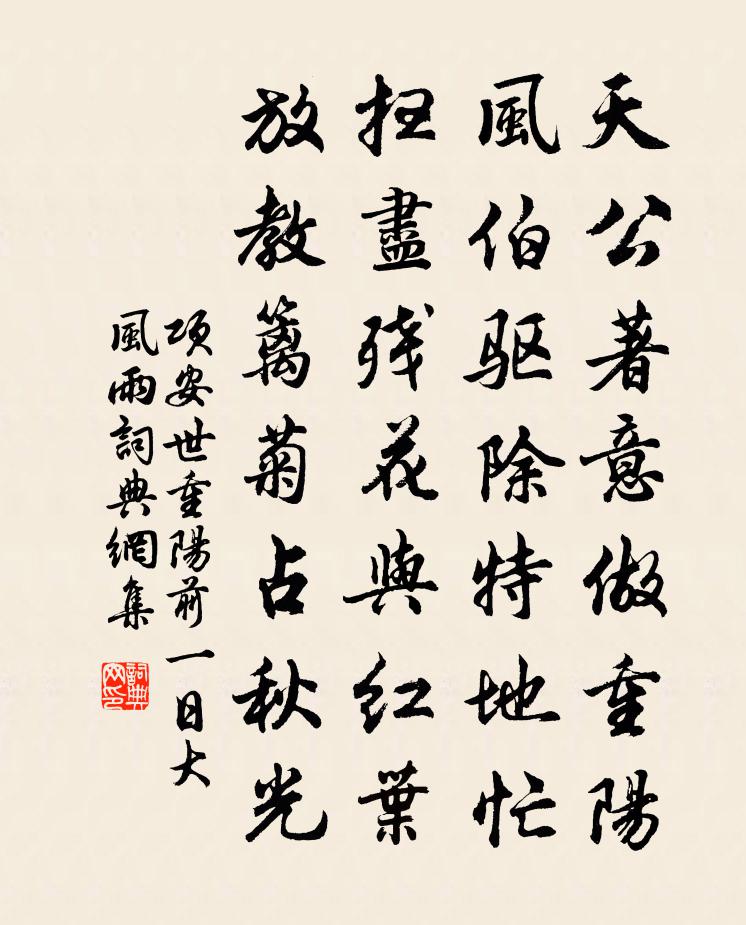詩詞名句歷史字典書法欣賞書法字典國語詞典說文解字康熙字典古漢語字典標 題 作 者 詩 句 重陽前一日大風雨作者:項安世 朝代:宋代重陽前一日大風雨原文天公著意做重陽,風伯驅除特地忙。掃盡殘花與紅葉,放教籬菊占秋光。詩詞問答問:重陽前一日大風雨的作者是誰?答:項安世問:重陽前一日大風雨寫於哪個朝代?答:宋代項安世重陽前一日大風雨書法欣賞重陽前一日大風雨書法作品詩詞推薦進德陸游〔宋代〕進德工夫在日新,正如更歷自知津。迷時誤認毒為藥,定後始知天勝人。四壁不妨身落魄,萬夫誰敵膽輪囷?遺經彭及之邀吳仲源楊公濟與某夜會望湖樓獨某後強至〔宋代〕故國英雄已寂寥,飛樓氣象自飄颻。天邊鳥翼愁檐額,雨後虹光轉檻腰。直恐笑歌驚白日,卻憐身世近青霄。雲梯會葬外舅過李萬州基下項安世〔宋代〕又送人間一古今,兩翁要望接雲岑。屈伸固是乾坤用,惻愴豈非天地心。野迥茆風聲索索,山深松日影陰陰。平生泉山釋紹曇〔宋代〕接得靈源正脈親,險崖機里解翻身。莫教倒岳傾湫去,浸殺茫茫大地人。寓言裴夷直〔唐代〕秋樹卻逢暖,未凋能幾時。何須尚松桂,搖動暫青枝。望靈石李處權〔宋代〕杖藜出望江郎峰,清輝秀氣在眼中。當年何人運神斧,劖削碧玉成芙蓉。平地崛起五千仞,浮雲落日當秋空。東西對月懷簽判丈兼簡文顯趙蕃〔宋代〕季月風當凜,南方候實偏。長林未搖落,頻夕對嬋娟。恨我遙成隔,知公夜不眠。連牆有周子,置論每超然。詠史上袁紹陳普〔宋代〕許中四面盡仇讎,曹弱袁強正是愁。一日四州都奉予,安閒猶遣定徐州。長相思(春濃)趙長卿〔宋代〕花飛飛。柳依依。簾擲東風日正遲。社前雙燕歸。藥欄東,藥欄西。記得當時素手攜。彎彎月似眉。龍蛇歌佚名〔先秦〕有龍于飛,周遍天下。五蛇從之,為之承輔。龍返其鄉,得其處所。四蛇從之,得其露雨。一蛇羞之,橋死於中野道子教授奉祠,諸生率余祖席如意院范成大〔宋代〕暫移三席款雲關,木末闌乾暮紫間。絳帳莫貪江上路,青鞋先試水西山。伯陽有道來重趼,禦寇他年憶解顏。怪我五林方沈氏居張鎡〔宋代〕路轉蒼灣靜者家,抱牆壁修竹舞檐斜。佛燈鏡照無盡像,書館池栽成行花。粗有田園真可樂,不維車服更何加,晚滿庭芳(雨中再賦牡丹)汪莘〔宋代〕雲繞花屏,天橫練帶,畫堂三月初三。斜風細雨,羅幕護輕寒。無數天香國色,枝枝帶、洛浦嵩山。燒紅燭,吞星感舊陳藻〔宋代〕憶到渠來憶到渠,滿懷無限不刊書。獨行總是同行處,剩得長年剩得吁。望楚州新城楊萬里〔宋代〕已近山陽望漸寬,湖光百里見千村。人家四面皆臨水,柳樹雙垂便是門。全盛向來元孔道,雜耕今是一雄藩。金湯贈友人其三李白〔唐代〕慢世薄功業。非無胸中畫。謔浪萬古賢。以為兒童劇。立產如廣費。匡君懷長策。但苦山北寒。誰知道南宅。歲酒題歸去來圖錢選〔宋代〕衡門植五柳,東籬采叢菊。長嘯有餘清,無奈酒不足。當世宜沈酣,作色召侮辱。乘興賦歸歟,千載一辭獨。拜明招二先生墓有感王柏〔宋代〕憶昔龍門續斷弦,滎陽一脈浚家傳。誰知麗澤收聲蚤,夢奠於今八十年。西江月王惟一〔元代〕得一金丹事畢,休尋 * 青龍。泥文執象理難通。妙處非鉛非汞。溫養身心不動,滿懷和氣春風。頓然罔念又無功送盧主簿歸吳翁卷〔宋代〕湖波長浩蕩,苑綠遍幽奇。皆是全吳地,今非昔代時。鴟夷無舊舸,泰伯有新祠。吟苦曾遊客,因君動遠思。名句推薦行有不得者,皆反求諸己,其身正而天下歸之。孟子《孟子·離婁章句上·第四節》 慘慘時節盡,蘭葉復凋零。徐幹《室思》 恰如燈下,故人萬里,歸來對影。黃庭堅《品令·茶詞》 野雲萬里無城郭,雨雪紛紛連大漠。李頎《古從軍行》 帝里重清明,人心自愁思。孟浩然《清明即事》 功不可以虛成,名不可以偽立班固《漢書·傳·敘傳上》 更深月色半人家,北斗闌乾南斗斜。劉方平《月夜》 惡言不出於口,忿言不反於身。戴聖《禮記·祭義》 昭君拂玉鞍,上馬啼紅頰。李白《王昭君二首》 遙憶獨眠人,早寒驚夢頻。顧貞觀《菩薩蠻·山城夜半催金柝》