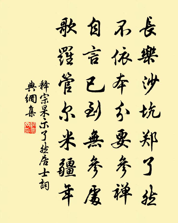 詩詞名句歷史字典書法欣賞書法字典國語詞典說文解字康熙字典古漢語字典標 題 作 者 詩 句 示瞭然居士作者:釋宗杲 朝代:宋代示瞭然居士原文長樂沙坑鄭瞭然,不依本分要參禪。自言已到無參處,歌羅管爾米疆年。詩詞問答問:示瞭然居士的作者是誰?答:釋宗杲問:示瞭然居士寫於哪個朝代?答:宋代釋宗杲示瞭然居士書法欣賞示瞭然居士書法作品詩詞推薦送何文植趨京李若水〔宋代〕問君何日赴神京,明日揚鞭數去程。風雪一天行客恨,關山千里故人情。銅台曾見三都賦,金闕行傳二陸名。自許柳梢青丘崈〔宋代〕風佩珊珊。雲屏曲曲,愁絕春慳。無奈餘寒。半醒宿酒,御夾成單。深沈院落人閒。憑闌處、眉顰黛殘。彩筆慵拈點絳唇(天聖宮)郭章〔宋代〕翠柏丹崖,碧雲深鎖神仙府。勢盤龍虎。樓觀雄中土。我欲停時,又恐斜陽暮。黃塵路。客懷良苦。滿目西山雨。徐僊書三首陳師道〔宋代〕蓬壺仙子補天手,筆妙詩清萬世功。肯學黃家元佑腳,信知人厄匪天窮。行香子高登〔宋代〕瘴氣如雲。暑氣如焚。病輕時、也是十分。沈疴惱客,罪罟縈人。嘆檻中猿,籠中鳥,轍中鱗。休負文章,休說經中春愴懷寄二三知己齊己〔唐代〕眼暗心還白,逢春強憑欄。因聞積雨夜,卻憶舊山寒。竹撼煙叢滑,花燒露朵乾。故人相會處,應話此衰殘。四塊玉馬致遠〔元代〕綠鬢衰,紅顏改,羞把塵容畫麟台。故園風景依然在;三頃田,五畝宅,歸去來。一萼紅(和玉霄感舊)尹濟翁〔宋代〕玉搔頭。是何人敲折,應為節秦謳。棐幾朱弦,剪燈雪藕,幾回數盡更籌。草草又、一番春夢,夢覺了、風雨楚江月台項安世〔宋代〕小築南台倚北亭,一方荊玉可雲屏。峽中暮雨賞疏月,秋後天河始見星。初與羿妃為此會,自開夔子幾千齡。我雖白鷺洲詞寄曾裘甫趙蕃〔宋代〕白鷺洲前菸草微,黃鶴樓外煙雲外。縹縹黃鶴政高舉,漾漾白鷺孤無依。鶴舉直上登寥廓,鷺立汀洲方俯啄。卒然定風波劉處玄〔元代〕月一焚香望日齋。持些禁戒自消災。甲子庚申逢七記,開懷。吏神暗察應時來。清靜身心無病苦,頤真保命運三台山中惜花王建〔唐代〕忽看花漸稀,罪過酒醒時。尋覓風來處,驚張夜落時。遊絲纏故蕊,宿夜守空枝。開取當軒地,年年樹底期。臨城道中作(並引)蘇軾〔宋代〕予初赴中山,連日風埃,未嘗了了見太行也。今將適嶺表,頗以是為恨。過臨城、內丘,天氣忽清徹,西望太行,分按洛西諸邑登山出永寧西望晚宿韶山寺李復〔宋代〕雙旌明滅轉委蛇,行遍秋山意若何。暗谷路窮平野闊,回巒石斷亂泉多。崤陵東盡開周邑,熊耳中分放洛河。欲舉江城子呂渭老〔宋代〕曉參垂戶宿酲醒。坐南亭。對疏星。點點螢光,偏向竹梢明。望斷長空何處是,雲葉亂,彩霞橫。西樓依舊抱重城和嚴揆省中宿齋遇令狐員外當直之作李逢吉〔唐代〕致齋分直宿南宮,越石盧諶此夜同。位極班行猶念舊,名題章奏亦從公。曾驅爪士三邊靜,新贈髯參六義窮。竟夕宿直溫泉宮羽林獻詩張說〔唐代〕冬狩美秦正,新豐樂漢行。星陳玄武閣,月對羽林營。寒木羅霜仗,空山響夜更。恩深靈液暖,節勁古松貞。文武變竹枝詞九首之九賀鑄〔宋代〕蒹葭被洲渚,鳧鶩方容與。但聞歌竹枝,不見題鸚鵡。和楊兄二絕杜范〔宋代〕詩人過我辱高軒,坐覺塵埃不敢幹。三寸古今談不了,明珠落落走金盤。感皇恩張侃〔宋代〕換骨有丹砂,阿誰傳與。愛惜芳心不輕吐。客來爛熳,解得此情良苦。有時三兩點、胭脂雨。舊說江南,紅羅亭下名句推薦尋常一樣窗前月,才有梅花便不同。杜耒《寒夜》 不知江月待何人,但見長江送流水。張若虛《春江花月夜》 當軒對尊酒,四面芙蓉開。王維《臨湖亭》 誰念文園病客?夜色沉沉,獨抱一天岑寂。張埜《奪錦標·七夕》 春風得意馬蹄疾,一日看盡長安花。孟郊《登科後》 卜鄰近三徑,植果盈千樹。孟浩然《田園作》 信宿漁人還泛泛,清秋燕子故飛飛。杜甫《秋興八首》 正西望長安,下見江水流。李白《秋浦歌十七首》 白雪卻嫌春色晚,故穿庭樹作飛花。韓愈《春雪》 山高必有怪,嶺峻卻生精。吳承恩《西遊記·第二十七回》