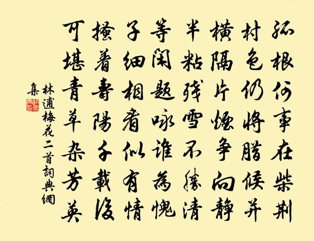詩詞名句歷史字典書法欣賞書法字典國語詞典說文解字康熙字典古漢語字典標 題 作 者 詩 句 梅花二首作者:林逋 朝代:宋代梅花二首原文孤根何事在柴荊,村色仍將臘候並。橫隔片煙爭向靜,半粘殘雪不勝清。等閒題詠誰為愧,子細相看似有情。搔著壽陽千載後,可堪青草雜芳英。詩詞問答問:梅花二首的作者是誰?答:林逋問:梅花二首寫於哪個朝代?答:宋代林逋梅花二首書法欣賞梅花二首書法作品詩詞推薦和張少卿丈再到洛陽邵雍〔宋代〕當年曾任青春客,今日重來白雪翁。今日當年已一世,幾多興替在其中。頌古九首釋了演〔宋代〕靈雲親說悟桃花,端的無疑眼裡沙。縱使玄沙言未徹,相逢且喫趙州茶。次韻樂天村居臥病滕岑〔宋代〕瓦盞茅柴濁,磚爐榾柮紅。味如飲醽醁,暖勝燎蒿蓬。萬種皆幻事,一真惟太空。舊氈敷故絮,小合臣衰翁。五星謝枋得〔宋代〕五緯煌煌聚在秦,項王稱霸沛公臣。誰知四百年天下,已屬寬仁大度人。沔水佚名〔先秦〕沔彼流水,朝宗于海。鴥彼飛隼,載飛載止。嗟我兄弟,邦人諸友。莫肯念亂,誰無父母?沔彼流水,其流湯湯。臨江仙何蓑衣道〔宋代〕在世為仙須有分,不須素食持齋。寸絲不著掛形骸。蓑衣為伴侶,箬笠作家懷。行滿三千上界,奉敕宣至金台。傳樅山祠梳洗樓孫應時〔宋代〕山川楚男六千里,雲雨陽台十二峰。神女可無哀郢意,強教梳洗為誰容。緣識宋太宗〔宋代〕精詳語議四門開,舒慘陽和意外裁。遠見風塵思往事,無窮日月去還來。樂耶指趣歸三體,周旋道理遍九垓。賢聖黍苗佚名〔先秦〕芃芃黍苗,陰雨膏之。悠悠南行,召伯勞之。我任我輦,我車我牛。我行既集,蓋雲歸哉。我徒我御,我師我旅。靜庵曾伯虞輓詞周必大〔宋代〕往聞郭林山,學易之指南。艮齋從其子,議論青出藍。授徒蘭溪上,妙理常窮探。真旨傳何人,著錄推靜庵。稱疾次韻張仲實讀予近稿方回〔宋代〕平生窮到骨,不受世人憐。腸倒三江洗,詩憑萬口鐫。旂常無可紀,衣缽尚堪傳。今日如斯者,輸君獨妙年。吟詩自笑用前韻陳造〔宋代〕退歸我欲學真長,君定才名江夏黃。考父舊嘗睎吉甫,陵陽端的嗣黔陽。謝趙戎惠白菘甚腴且再求之胡寅〔宋代〕已是居無竹,那堪食一簞。煩君餉園茹,使我助盤餐。秀色春風早,甘肥曉露溥。美材今又闕,小摘更相寬。大名溫尚書之任楊億〔宋代〕窣雲樓堞古銅台,幕府池塘菡萏開。畢萬山河千里迥,亞夫鐘鼓九天來,必鞬前隊射鵰手,載筆初筵倚馬才。命將春日會飲懷丘思同林成之作四首次林韻蘇頌〔宋代〕二月中和氣序均,酒酣偏覺長精神。之人歡會何稀闊,惆悵尊前更惜春。讀王摩詰詩愛其散發晚未簪道書行尚把之句因陸游〔宋代〕仕宦五十年,所至不黔突,取魚固舍熊,挾兔那恨鶻。退歸息厭厭,誰敢書咄咄。屋穿每茨草,驢瘦可數骨。秋風萬山潭孟浩然〔唐代〕垂釣坐磐石,水清心益閒。①魚行潭樹下,猿掛島藤間。②游女昔解佩,傳聞於此山。求之不可得,沿月棹歌還。句唐人機軸〔宋代〕風暖柴荊鳥語幽,麥高麻矮野桑柔。感皇恩 有贈王寂〔元代〕寶髻綰雙螺,蹙金羅抹。紅袖珍珠臂。十三弦上,小小剝蔥銀甲。陽關三疊遍、花十八。雁行歷歷,鶯聲恰恰。昭武太守王子文日舉李賈嚴羽共觀前輩一兩家戴復古〔宋代〕古今胸次浩江河,才比諸公十倍過。時把文章供戲謔,不知此體誤人多。名句推薦初聞征雁已無蟬,百尺樓高水接天。李商隱《霜月》 人老去西風白髮,蝶愁來明日黃花。張可久《折桂令·九日》 君子求諸己,小人求諸人。孔子弟子《論語·衛靈公篇》 我有功於人不可念,而過則不可不念;人有恩於我不可忘,而怨則不可不忘。洪應明《菜根譚·概論》 尊前故人如在,想念我、最關情。周邦彥《綺寮怨·上馬人扶殘醉》 醉里秋波,夢中朝雨,都是醒時煩惱。時彥《青門飲·寄寵人》 日下壁而沉彩,月上軒而飛光。江淹《別賦》 屈指數春來,彈指驚春去。高觀國《卜運算元·泛西湖坐間寅齋同賦》 相思相見知何日?此時此夜難為情!李白《三五七言 / 秋風詞》 為問元戎竇車騎,何時返旆勒燕然。皇甫冉《春思》