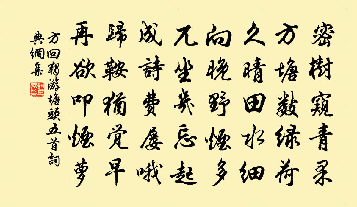詩詞名句歷史字典書法欣賞書法字典國語詞典說文解字康熙字典古漢語字典標 題 作 者 詩 句 獨游塘頭五首作者:方回 朝代:宋代獨游塘頭五首原文密樹窺青果,方塘數綠荷。久晴田水細,向晚野煙多。兀坐幾忘起,成詩費屢喔。歸鞍猶覺早,再欲叩煙蘿。詩詞問答問:獨游塘頭五首的作者是誰?答:方回問:獨游塘頭五首寫於哪個朝代?答:宋代方回獨游塘頭五首書法欣賞獨游塘頭五首書法作品詩詞推薦哭從兄良遇方回〔宋代〕先祖五男子,其下八男孫。白首涉患難,僅餘二老存。兄昔健如虎,行步疾飛奔。長眉具壽相,修髯當風掀。千丈題南康歸宗寺陳宓〔宋代〕山陰逸氣追千古,不但揮毫一段奇。到此風流故無恙,遊人休問舊來池。梅花陸游〔宋代〕我與梅花有舊盟,即今白髮未忘情。不愁索笑無多子,惟恨相思太瘦生。身世何曾怨空谷,風流正自合傾城。增冰頌古十九首釋法全〔宋代〕耳裹種田,滿口含煙。鍾馗解舞十八拍,張老乘槎上九天。旅中別趙璞釋智圓〔宋代〕策馬將登路,星河曙色分。殘燈照離席,來雁咽寒雲。鄉遠書難到,吟狂酒易醺。堪嗟經濟術,未得致明君。贈通禪客釋法薰〔宋代〕龍墀問法動天顏,天贈黃金一萬錢。打得衲僧公驗正,通禪依舊是通禪。登嵩山十首 搗衣石蘇轍〔宋代〕玉女云為衣,飄搖不須搗。空傳岩下石,夜杵知誰抱。清泉供浣濯,素月鋪繒縞。人世迫秋寒,處處砧聲早。詰旦思之世豈有不押之韻輒和北山十首劉克莊〔宋代〕細比蠅須類,凶加豹腳名。飛颺新得勢,么喝遠聞聲。抱怨芳筋露,驚眠玉頰頳。天公許姑息,長養更生成。偈頌一百五十首釋心月〔宋代〕二千年前,靈山付囑品。二千年後,吳地流通分。南鄉子 送人北行入燕作 永樂大典卷八千六百耶律鑄〔元代〕匹馬赴嚴宸。將謂青雲上致身。不是男兒容易事,風塵。水遠山長愁 * 。離別若為情。雪暗西山淚滿巾。還憶夜寄三覺山從益上人齊己〔唐代〕山下人來說,多時不下山。是應終未是,閒得且須閒。海面雲歸竇,猿邊月上關。尋思亂峰頂,空送衲僧還。三禽言江心宇〔宋代〕我友我友,鞠衣黃裳。一日不見,爾何所翔。爾何所藏,飛鳴高樹去。毋也不忘,噫。高樹如何,噫。綠陰正多,贈宿松楊明府黃滔〔唐代〕溪上家家禮樂新,始知為政異常倫。若非似水清無底,爭得如冰凜拂人。月狖聲和琴調咽,煙村景接柳條春。宦遊謁金門袁去華〔宋代〕清漢曲。天際落霞孤鶩。幽草牆陰秋更綠。倚檐三兩竹。繡被焚香獨宿。夢繞綠窗華屋。何日明眸光射目。夜闌更文德初聞車駕東遊吳融〔唐代〕龍旆叢叢下劍門,還將瑞氣入中原。鰲頭一盪山雖沒,烏足重安日不昏。晉客已知周禮在,秦人仍喜漢官存。自憐江亭寓目盧拱〔唐代〕江郭帶林巒,津亭倚檻看。水風蒲葉戰,沙雨鷺鷥寒。晚木初凋柳,秋叢欲敗蘭。哀猿自相叫,鄉淚好無端。梅花六首趙蕃〔宋代〕畫論形似已為非,牝牡那窮神駿姿。莫向眼前尋尺度,要從物外極觀窺。山因雨霧青增黛,水為風紋綠起漪。以是偈頌三十八首釋如淨〔宋代〕燈點點,月團團,遊人歌鼓鬧中看。咫尺鳳樓開雉扇,玉皇仙仗紫雲端。晚步吟邵雍〔宋代〕晚步上陽堤,手攜筇竹枝。靜隨芳草去,閒逐野雲歸。月出松梢處,風來苹末時。林間此光景,能有幾人知。嘆美人照鏡陳述〔唐代〕插花枝共動,含笑靨俱生。衫分兩處色,釧響一邊聲。就中還妒影,恐奪可憐名。名句推薦今朝此為別,何處還相遇。韋應物《初發揚子寄元大校書》 丁丁漏水夜何長,漫漫輕雲露月光。張仲素《秋夜曲》 知己知彼,將心比心。佚名《增廣賢文·上集》 人情送匹馬,買賣不饒針!佚名《增廣賢文·下集》 疲馬山中愁日晚,孤舟江上畏春寒。張謂《杜侍御送貢物戲贈》 江上往來人,但愛鱸魚美范仲淹《江上漁者》 湖水無端浸白雲,故人書斷孤鴻沒。黃庭堅《秋懷二首》 枕上十年事,江南二老憂,都到心頭。徐再思《水仙子·夜雨》 庭花蒙蒙水泠泠,小兒啼索樹上鶯。貫休《春晚書山家屋壁二首》 花枝出建章,鳳管發昭陽。皇甫冉《婕妤怨》