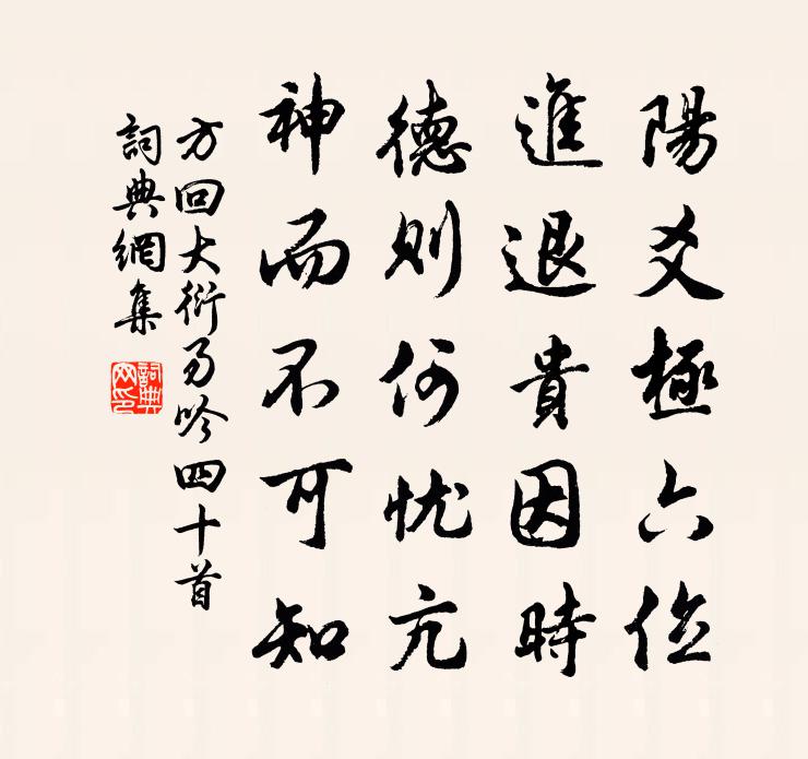 詩詞名句歷史字典書法欣賞書法字典國語詞典說文解字康熙字典古漢語字典標 題 作 者 詩 句 大衍易吟四十首作者:方回 朝代:宋代大衍易吟四十首原文陽爻極六位,進退貴因時。德則何憂亢,神而不可知。詩詞問答問:大衍易吟四十首的作者是誰?答:方回問:大衍易吟四十首寫於哪個朝代?答:宋代方回大衍易吟四十首書法欣賞大衍易吟四十首書法作品詩詞推薦新灘三首李流謙〔宋代〕叢祠風俗尊淫祀,灘戶生涯利客船。儵忽未興酬德意,不知曾有此山川。早秋西歸有懷劉威〔唐代〕求歸方有計,惜別更堪愁。上馬江城暮,出郊山戍秋。暗銷何限事,白盡去年頭。莫怪頻惆悵,異鄉難再游。米元章姑孰詩帖贊岳珂〔宋代〕天上文章一酒星,生平只欠換鵝經。奇才逸思通千古,留待南宮眼為青。題小西湖姚勉〔宋代〕主人胸次一西湖,新展蘇堤小畫圖。待種梅花三百本,請君雪裡訪林逋。句宋綬〔宋代〕神歸梁小廟,禮袝漢餘陵。簡恆璨韋應物〔唐代〕室虛多涼氣,天高屬秋時。空庭夜風雨,草木曉離披。簡書日雲曠,文墨誰復持。聊因遇澄靜,一與道人期。別自栽小樹王建〔唐代〕去年今日栽,臨去見花開。好住守空院,夜間人不來。送王明叟起秀州法掾強至〔宋代〕去去持丹筆,當官議是非。壯心低仕路,戀涕濕親衣。汲浪檣烏急,吳霜稻蟹肥。論文杯酒後,從此故人稀。視民詩柳宗元〔唐代〕帝視民情,匪幽匪明。慘或在腹,已如色聲。亦無動威,亦無止力。弗動弗止,惟民之極。帝懷民視,乃降明德,解罷京局一首蘇籀〔宋代〕運水擔柴力分遭,挾持泥古小儒勞。浙潮屹起岷峨上,越巘遮蟠江海滔。一葉鷗湍尋婺女,半生瓢泛信魚舠。曩時紹興以後祀感生帝十六首佚名〔宋代〕於穆文獻,景炎發祥。心茲皇運,垂慶無疆。篚幣有陳,式昭肅莊。神之格思,如在洋洋。謝袁起岩使君借貢院居陳造〔宋代〕書生嘆漂流,卜築定何日。折腰為斗升,問舍羨九一。諸公有好事,往往遂所氣。懸知許黔突,當復念容膝。送皇甫曾赴上都劉長卿〔唐代〕東遊久與故人違,西去荒涼舊路微。秋草不生三徑處,行人獨向五陵歸。離心日遠如流水,回首川長共落暉。楚客和仲韓見簡韻章甫〔宋代〕野人不愛名,中歲益安命。辛苦營一區,婆娑只三徑。那知錢有神,但喜酒能聖。翩翩趙公子,時時枉軒乘。詩詞西鹿田寺聽雨方鳳〔宋代〕禪棲投倦客,山雨起更闌。窗葉散幽響,石林生峭寒。洞深猶暗瀑,江遠忽飛湍。想像雲蘿外,應宜曉色看。求友王建〔唐代〕鑒形須明鏡,療疾須良醫。若無傍人見,形疾安自知。世路薄言行,學成棄其師。每懷一飯恩,不重勸勉詞。斅學寄內侍太保釋重顯〔宋代〕千尺岩泉噴冷聲,草堂雲淡竹風清。 * 時倚無他事,永日寥寥謝太平。盧進齋湖上韻顧逢〔宋代〕潦倒江湖上,光陰夢裡過。黃金消酒債,白髮苦詩魔。風細松琴慢,天晴柳絮多。斷橋斜陽里,一路聽笙歌。答趙景猷曹攄〔魏晉〕導以水柔。示以火急。寬猛相濟。孰能企及。古人難慕。洪流叵挹。軀小裁博。余將焉襲。句張先〔宋代〕霓舟忽艤鱸魚鄉,槎閣卻凌雲漢域。名句推薦秋娘渡與泰娘橋,風又飄飄,雨又蕭蕭。蔣捷《一剪梅·舟過吳江》 撥雲尋古道,倚石聽流泉。李白《尋雍尊師隱居》 盧家少婦鬱金堂,海燕雙棲玳瑁梁。沈佺期《古意呈補闕喬知之 / 古意 / 獨不見》 報答春光知有處,應須美酒送生涯。杜甫《江畔獨步尋花七絕句》 蓬頭稚子學垂綸,側坐莓苔草映身。胡令能《小兒垂釣》 秋霜不惜人,倏忽侵蒲柳。李白《長歌行》 春近寒雖轉,梅舒雪尚飄。陰鏗《雪裡梅花詩》 千磨萬擊還堅勁,任爾東西南北風。鄭燮《竹石》 名豈文章著,官應老病休。杜甫《旅夜書懷》 王國富民,霸國富士;僅存之國,富大夫;亡道之國,富倉府劉向《說苑·政理》