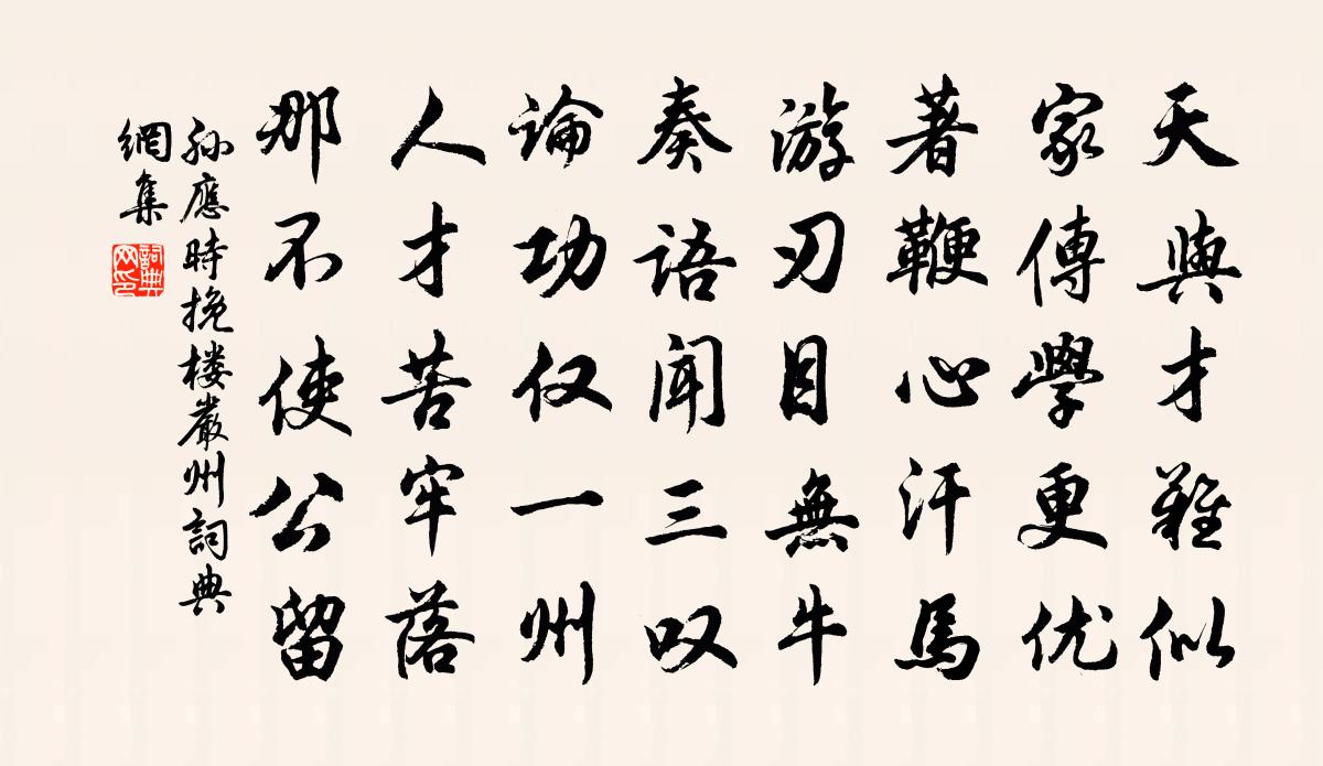 詩詞名句歷史字典書法欣賞書法字典國語詞典說文解字康熙字典古漢語字典標 題 作 者 詩 句 挽樓嚴州作者:孫應時 朝代:宋代挽樓嚴州原文天與才難似,家傳學更優。著鞭心汗馬,遊刃目無牛。奏語聞三嘆,論功僅一州。人才苦牢落,那不使公留。詩詞問答問:挽樓嚴州的作者是誰?答:孫應時問:挽樓嚴州寫於哪個朝代?答:宋代孫應時挽樓嚴州書法欣賞挽樓嚴州書法作品詩詞推薦題信國墨梅釋道璨〔宋代〕太耐冰霜老玉關,北風滿面不知寒。無邊生意天難泄,春色教人紙上看。寄鞏大監姜特立〔宋代〕十里兼旬信不通,每看金阜想高風。已知憚暑難迎客,不敢將詩更惱公。山居即事釋紹嵩〔宋代〕早晚無塵事,清心白日長。水煙通徑草,冰玉入詩腸。遠嶠收殘雨,空林掛夕陽。此時何限興,幽鳥語如簧。題三教圓通堂梅堯臣〔宋代〕處中最靈智,人與天地參。其間有佛老,曷又推為三。共以圓通出,誠明自包含。排楹壓文礎,煥采塗朱藍。而將侍太夫人拜掃先塋季直弟有詩因次其韻喻良能〔宋代〕東郊雲氣曉疏疏,十里相攜霽色初。林幄盡頭聞杜宇,荇絲深處見王餘。提壺相勸仍沽酒,扶杖來觀或荷鋤。不向玉樓春歐陽修〔宋代〕春山斂黛低歌扇。暫解吳鉤登祖宴。畫樓鍾動已魂銷,何況馬嘶芳草岸。青門柳色隨人遠。望欲斷時腸已斷。洛城潘令度送牡丹絕句蘇籀〔宋代〕劇美溫馨逞瑰媚,膩紅殷紫疊重台。芳晨華月臨春閣,倚麗凝嬌豈易栽。陪寧極游南溪夜還山墅韓維〔宋代〕南溪晚酌罷,歸路笑言同。家在碧山下,人行清露中。鵲飛斜映月,蟲響暗移叢。下馬兒童喜,誰知為德公。題問坐主梅隱張煒〔宋代〕萬點春風吐白雲,孤芳繞屋占雲根。幽閒中得幽閒處,暗水流香緊閉門。天津橋周弼〔宋代〕裊裊朱欄倚細波,綠雲相對閟嵯峨。中天車駕曾擒虜,何日樓船定入河。霽柳午陰隨岸遠,露桃春色過牆多。黃旗晚春田園雜興范成大〔宋代〕蝴蝶雙雙入菜花,日長無客到田家。雞飛過籬犬吠竇,知有行商來買茶。寫華嚴經求頌釋普寧〔宋代〕破一微塵出引經,因該果海果該因。無端卻被管城子,名句文俱錯指陳。贈相者二首陳造〔宋代〕人言龐艾可功名,獨取臞儒子麽生。槁項猶多吟擁鼻,好移君眼與公卿。綠珠詞鄧林〔宋代〕涼台瀟灑臨清波,幄翠簾珠明綺羅。哀絲豪竹按新歌,紅潮素臉春風和。主君觀娛美人醉,報有無情使車至。幾叢書黃廬陵伯庸詩卷楊萬里〔宋代〕句法何曾問外人,單傳山谷當家春。截來雲錦花無樣,倒寫珠胎海亦貧。汗竹香中翻墨汁,扶桑梢上拄頭巾。詩名眼兒媚·一寸橫波惹春留厲鶚〔清代〕一寸橫波惹春留。何止最宜秋。妝殘粉薄,矜嚴消盡,只有溫柔。 當時底事匆匆去?悔不載扁舟。分明記得,無題十首唐彥謙〔唐代〕細草鋪茵綠滿堤,燕飛晴日正遲遲。尋芳陌上花如錦,折得東風第一枝。錦箏銀甲響鵾弦,勾引春聲上綺筵。醉倚句掌禹錫〔宋代〕風定落花深一寸,日高啼鳥度千聲。偈頌八十五首釋妙倫〔宋代〕百花叢里躍鞭過,俊過風流有許多。未第儒生偷眼覷,滿懷無柰舊愁何。過故友居王駕〔唐代〕鄰笛寒吹日落初,舊居今已別人居。亂來兒侄皆分散,惆悵僧房認得書。名句推薦西風潑眼山如畫,有黃花休恨無錢。張可久《風入松·九日》 日月照之何不及此?惟有北風號怒天上來。李白《北風行》 飛雪帶春風,裴回亂繞空。劉方平《春雪》 舊山松竹老,阻歸程。岳飛《小重山·昨夜寒蛩不住鳴》 桑野就耕父,荷鋤隨牧童。孟浩然《田家元日》 廄馬散連山,軍容威絕域。李白《君子有所思行》 明月黃河夜,寒沙似戰場。李流芳《黃河夜泊》 良禽擇木而棲,賢臣擇主而事。羅貫中《三國演義·第三回》 楚雖三戶能亡秦,豈有堂堂中國空無人!陸游《金錯刀行》 金井梧桐秋葉黃,珠簾不捲夜來霜。王昌齡《長信怨》