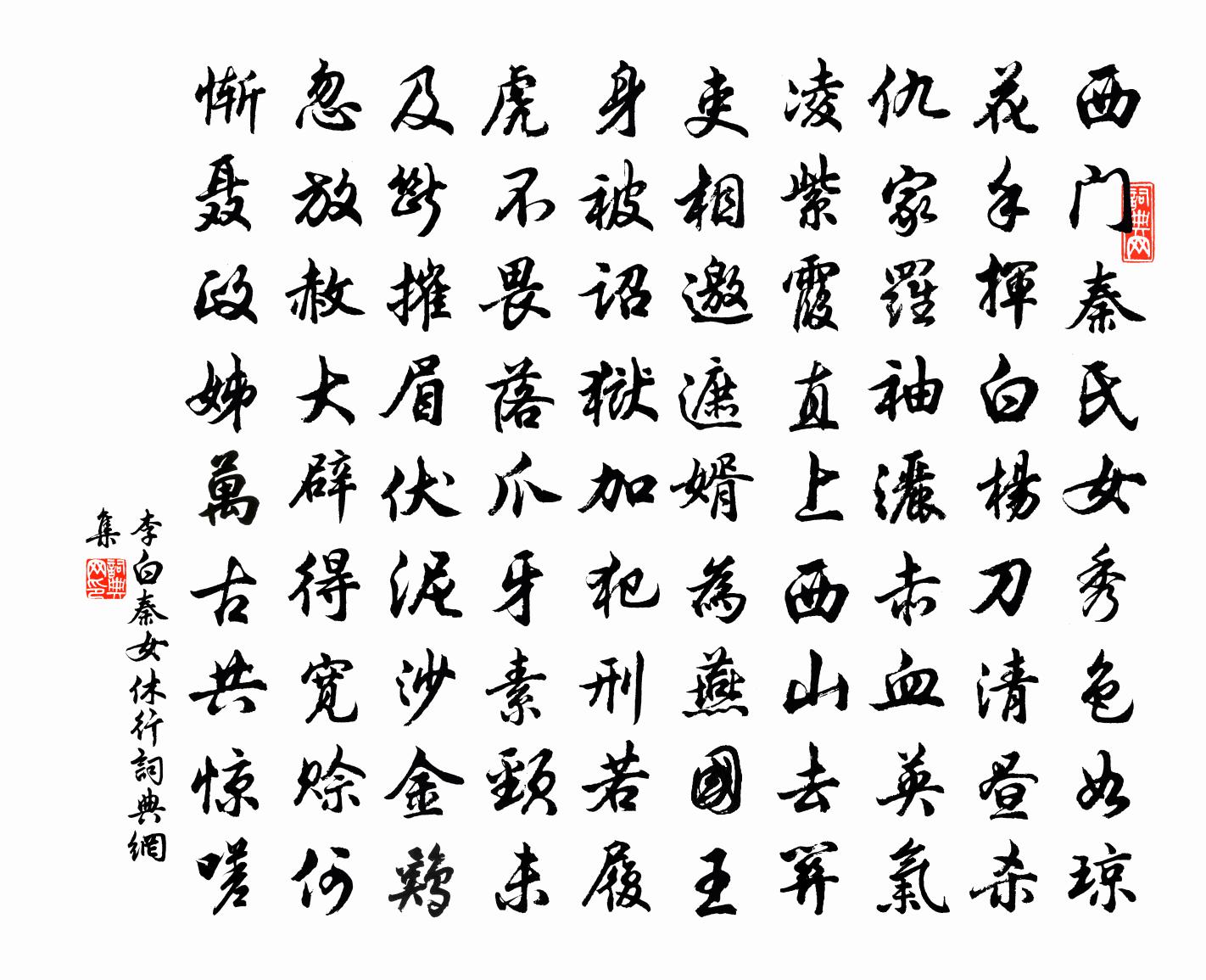 西門秦氏女,秀色如瓊花。手揮白楊刀,清晝殺仇家。