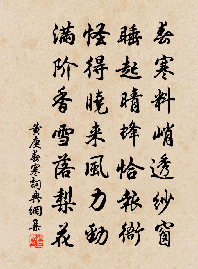 詩詞名句歷史字典書法欣賞書法字典國語詞典說文解字康熙字典古漢語字典標 題 作 者 詩 句 春寒作者:黃庚 朝代:宋代春寒原文春寒料峭透紗窗,睡起晴蜂恰報衙。怪得曉來風力勁,滿階香雪落梨花。詩詞問答問:春寒的作者是誰?答:黃庚問:春寒寫於哪個朝代?答:宋代黃庚春寒書法欣賞春寒書法作品詩詞推薦立春新晴楊萬里〔宋代〕宿雲送臘曉仍開,日動江光度竹來。春到更晴誰不喜,時遷不道老相催。山村敢惜身猶遠,邊地應憐戰未回。春鳥菩薩蠻辛棄疾〔宋代〕葛巾自向滄浪濯。朝來漉酒那堪著。高樹莫鳴蟬。晚涼秋水眠。竹床能幾尺。上有華胥國。山上咽飛泉。夢中琴斷偈二首釋禮〔宋代〕不是翻濤手,徒夸跨海鯨。由基方撚鏃,枝上眾猿驚。句楊蟠〔宋代〕中原今仗老臣安。賢者之孝二百四十首韓伯瑜林同〔宋代〕母力今衰穎,悲啼得杖輕。流風存繪畫,猶足感焦生。懷舊陸游〔宋代〕狼煙不舉羽書稀,幕府相從日打圍。最憶定軍山下路,亂飄紅葉滿戎衣。杏山館聽子規竇常〔唐代〕楚塞餘春聽漸稀,斷猿今夕讓沾衣。雲埋老樹空山里,仿佛千聲一度飛。江樓吹笛飲酒大醉中作陸游〔宋代〕世言九州外,復有大九州。此言果不虛,僅可容吾愁。許愁亦當有許酒,吾酒釀盡銀河流。酌之萬斛玻璃舟,酣宴喜遷鶯李煥〔宋代〕風雲嘉會,有英傑瑞時,來符平泰。子建才華,平陽勳業,流慶至今猶在。閭史卿來曾記,骨相堂堂龐艾。少年日送劉促通知涇州司馬光〔宋代〕四載一相逢,相逢遽為別。儕輩日蕭條,與君俱白髮。卮酒不暇執,舊遊那復說。忽忽無他言,暑行戒饑渴。葑山林逋〔宋代〕淤泥肥黑稻秧青,闊蓋深流旋旋生。擬倩湖君書版籍,水仙今佃老農耕。和韻三和戲示梅堯臣〔宋代〕笭箐畫蛤瓦虹醅,海若淮壖各寄來。將學時人鬥牛飲,還從上客舞娥杯。蓬蒿自有蔣生樂,珠翠寧容鄭氏陪。莫計謝靳石門道籙見訪王鎡〔宋代〕石門仙人云霞裳,飄飄飛佩來山房。松間看鶴不相見,靈風滿路馥天香。詠湖中雁沈約〔南北朝〕白水滿春塘,旅雁每迥翔。唼流牽弱藻,斂翮帶餘霜。群浮動輕浪,單泛逐孤光。懸飛竟不下,亂起未成行。刷羽新秋白居易〔唐代〕西風飄一葉,庭前颯已涼。風池明月水,衰蓮白露房。其奈江南夜,綿綿自此長。偈頌二十五首釋道璨〔宋代〕今日雨,明日雨。春流岸岸深,屋漏無乾處。魯公亭上望番城,只有湖水無行路。秋日山居好十首舒岳祥〔宋代〕秋日山居好,新涼及早興。玉餐陽塢米,冰嚼下洪菱。海錯來蒲港,溪鮮出石屏。欲從逋客逝,為此未之能。賀秀岩李工侍七首程公許〔宋代〕白板扉無黛堊妝,碧琅玕漸出垣牆。卷藏汗簡編摩手,賸與離騷譜眾芳。宿華山許棠〔唐代〕異境良難測,非仙豈合游。星辰方滿岳,風雨忽移舟。噴月泉垂壁,棲松鶴在樓。因知修養處,不必在嵩丘。戲為妓山氏作康執權〔宋代〕昔日緹縈亦如許,盡道生男不如女。河陽滿縣皆春風,忍使梨花偏帶雨。名句推薦玉骨那愁瘴霧,冰姿自有仙風。蘇軾《西江月·梅花》 北窗高臥,莫教啼鳥驚著。辛棄疾《念奴嬌·賦雨岩》 松江上,念故人老矣,甘臥閒雲。吳文英《沁園春·送翁賓暘游鄂渚》 不知則問,不能則學,雖能必讓,然後為德。荀子《荀子·非十二子》 風雨滿城,何幸兩重陽之近;文天祥《回董提舉中秋請宴啟》 憶君迢迢隔青天,昔日橫波目,今作流淚泉。李白《長相思·其二》 錢塘江上潮信來,今日方知我是我。施耐庵《水滸傳·第一百一十九回》 地勢,坤;君子以厚德載物。佚名《易傳·象傳上·坤》 碧蕪千里思悠悠,惟有霎時涼夢、到南州。李廌《虞美人·玉闌乾外清江浦》 人有賢愚,任人勿求過己。來俊臣《羅織經·固榮卷第六》