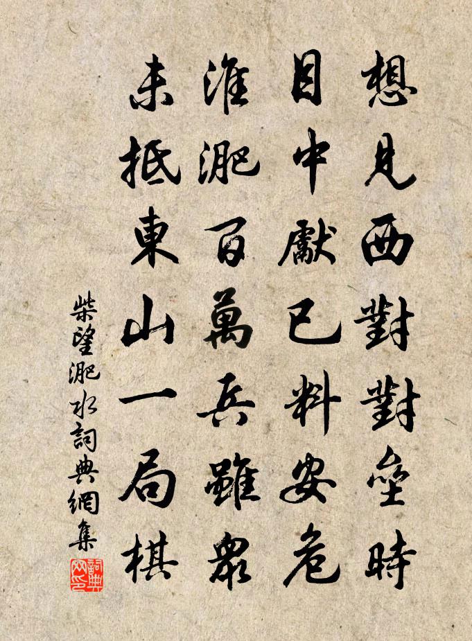 詩詞名句歷史字典書法欣賞書法字典國語詞典說文解字康熙字典古漢語字典標 題 作 者 詩 句 淝水作者:柴望 朝代:宋代淝水原文想見西對對壘時,目中先已料安危。淮淝百萬兵雖眾,未抵東山一局棋。詩詞問答問:淝水的作者是誰?答:柴望問:淝水寫於哪個朝代?答:宋代柴望淝水書法欣賞淝水書法作品詩詞推薦鼓笛令黃庭堅〔宋代〕見來便覺情於我。廝守著、新來好過。人道他家有婆婆。與一口、管教{屍豕}磨。副靖傳語木大。鼓兒里、且打二十里雲亭葉茵〔宋代〕蔽空青不斷,杉徑影中行。僧指夜無月,客嫌春少晴。臥龍安舊窟,倦翼亂歸程。吟到長虹背,人間天上驚。頌古三十一首釋安永〔宋代〕入草親尋草裹人,重重有路掌中平。不遇大商空突曉,日高猶聽打三更。上高明府孫世則寄書及詩依韻和酬強至〔宋代〕客顏憔悴過三閭,猶喜良朋記拙疏。忽隔重江論舊契,更言終日困新書。宦情共減中年後,樂事難同二月初。好在蜀海棠袁燮〔宋代〕海棠自是花中傑,西蜀此花尤勝絕。濯錦江邊艷欲然,浣花溪上每於纈。疇昔聞名未識面,對之頓解憂心結。東皇金剛隨機無盡頌莊嚴淨土分第十釋印肅〔宋代〕無住真難見,見見非是見。見不能及時,頭頭隨物現。和高吉父六絕杜范〔宋代〕飲啄於人似有緣,又將塵面對瞿曇。儒冠未必非相誤,時聽鐘聲靜夜參。送吳司令知金州王炎〔宋代〕曩時異姓新安王,中興功烈書旗常。邊兵不敢窺蜀塞,至今恃此為金湯。我生久恨在王后,幸識王孫人物秀。立朝仲春勸耕有獻兩岐麥者和丁端叔茶使韻袁說友〔宋代〕周原膴膴侔歌頌,我訪春郊屆羲仲。市橋曲屈古招提,媚日暄風傍韉鞚。布宣德意父老喜,醉飽盤餐兒女共。眼看滿江紅 玉簪次班彥功韻張雨〔元代〕玉導纖長,頓化作、雲英香莢。風弄影、錄鬟撩亂,搔頭斜插。璞小還思釵燕並,叢幽略比蕉心狹。看柔須、點綴虞察院生日姜特立〔宋代〕今年旱火欲燒空,儘是忱誠默禱功。尊酒豚蹄亦何用,使君心自與天通。懷安光孝寺觀空軒遺圓長老王灼〔宋代〕寶坊鬱郁滿松檜,獨有小軒花數輩。榜以觀空作正觀,要識轉物大三昧。世間眩人萬紅紫,心君已落 * 內。那知馬斃三首仇遠〔宋代〕我無筋力汝難騎,埋汝郊原有敝帷。二尺箯輿元自穩,不勞鞭策強驅馳。小渚宋祁〔宋代〕輕煙變渚色,寒浪齧堤痕。鳥去枝猶動,沙頹水暫渾。北窗雅言寄朱仁叔敖陶孫〔宋代〕風日暖,天大裘。蠅飛打窗油,北窗墳策高於丘。我欲發視勞牽抽,把酒起望天門陬。斜鴻書破半張紙,枯荷綱空泛湖次韻吳潛〔宋代〕塵里光陰夢裡殘,西湖莫厭白時看。落花飛絮將春去,斷雨零雲入暮寒。白髮催人愁遠道,青山笑我戀微官。浮生次約山賦杏花韻文天祥〔宋代〕名花韻在年晴初,雨沁胭脂臉更敷。蒲驛莫妨娛刺史,錦坊豈不勝中書。時無艷曲臨軒縱,公莫巍壇韞匱沽。春老酬九經者齊己〔唐代〕九經三史學,窮妙又窮微。長白山初出, * 欲飛。江僧酬雪句,沙鶴識 * 。家在黃河北,南來偶未歸。趙殿丞知河南縣楊億〔宋代〕鼎邑閭閻有古風,清談為治自從容。官聊殿省通朝籍,路過津橋入縣封。柳蔭天衢時按轡,雲生少室好搘筇。龍門普化贊釋心月〔宋代〕邈得先師真,鼻孔不相似。大悲院裡歸,驢鳴較些子。名句推薦明月別枝驚鵲,清風半夜鳴蟬。辛棄疾《西江月·夜行黃沙道中》 風日薄、度牆啼鳥聲亂。盧祖皋《宴清都·初春》 福壽康寧,固人之所同欲;死亡疾病,亦人所不能無。程登吉《幼學瓊林·卷三·疾病死喪》 幽徑無人獨自芳,此恨憑誰訴。曹組《卜運算元·蘭》 今夜不知何處宿,平沙萬里絕人煙。岑參《磧中作》 一夜相思,水邊清淺橫枝瘦。陳亮《點絳唇·詠梅月》 酷暑天,葵榴發,噴鼻香十里荷花。白樸《得勝樂·夏》 昨夜星辰昨夜風,畫樓西畔桂堂東。李商隱《無題·昨夜星辰昨夜風》 話須通俗方傳遠,語必關風始動人。馮夢龍《警世通言·卷十二》 記問之學,不足以為人師。戴聖《禮記·學記》