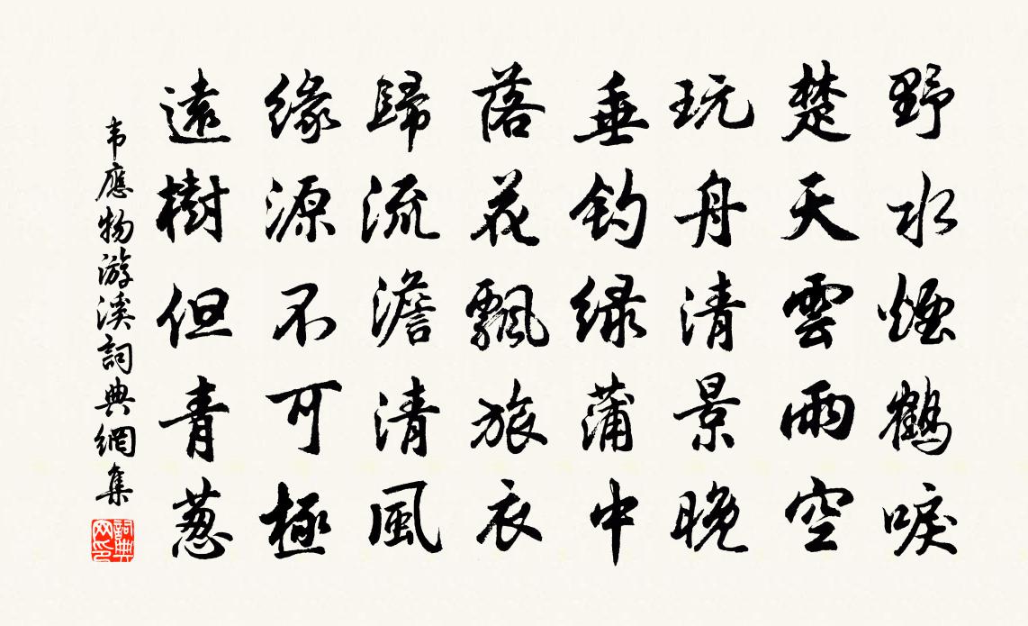野水煙鶴唳,楚天雲雨空。玩舟清景晚,垂釣綠蒲中。