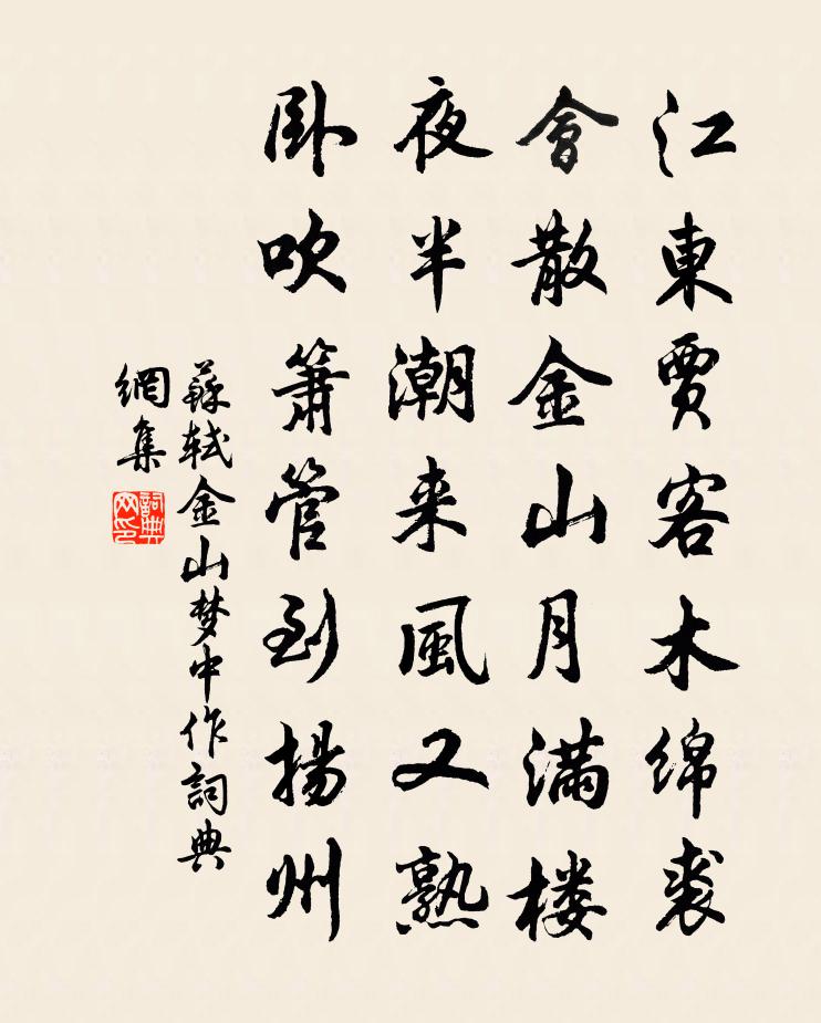江東賈客木綿裘,會散金山月滿樓。夜半潮來風又熟,臥吹1~1簫管到揚州。