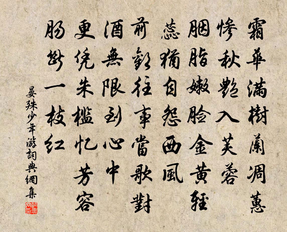 霜華滿樹,蘭凋蕙慘,秋艷入芙蓉。胭脂嫩臉,金黃輕蕊,猶自怨西風。
