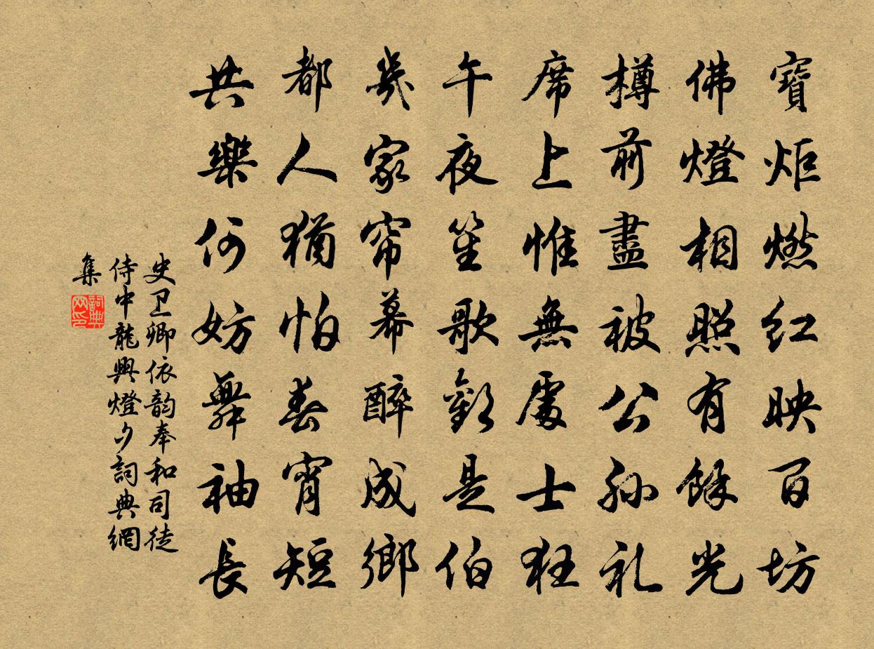 詩詞名句歷史字典書法欣賞書法字典國語詞典說文解字康熙字典古漢語字典標 題 作 者 詩 句 依韻奉和司徒侍中龍興燈夕作者:史衛卿 朝代:宋代依韻奉和司徒侍中龍興燈夕原文寶炬燃紅映百坊,佛燈相照有餘光。樽前盡被公孫禮,席上惟無處士狂。午夜笙歌歡是伯,幾家簾幕醉成鄉。都人猶怕春宵短,共樂何妨舞袖長。詩詞問答問:依韻奉和司徒侍中龍興燈夕的作者是誰?答:史衛卿問:依韻奉和司徒侍中龍興燈夕寫於哪個朝代?答:宋代史衛卿依韻奉和司徒侍中龍興燈夕書法欣賞依韻奉和司徒侍中龍興燈夕書法作品詩詞推薦浪淘沙·岸柳可藏鴉吳琚〔宋代〕岸柳可藏鴉。路轉溪斜。忘機鷗鷺立汀沙。咫尺鍾山迷望眼,一半雲遮。臨水整烏紗。兩鬢蒼華。故鄉心事在天涯送武桓之安陽賀鑄〔宋代〕黃金絡征轡,之子待明發。樽酒少遲留,禪林見涼月。歌鬟結蛾黛,怨此佳期闊。去去柳堤風,青蟬催白髮。湖州歌九十八首 其一汪元量〔宋代〕丙子正月十有三,撾鞞伐鼓下江南。臯亭山上青煙起,宰執相看似醉酣。次韻賦南山廣莫軒陳著〔宋代〕洗眼來看廣莫詩,煙霏空翠雨微微。四平地上一山起,獨拄天南群望歸。喬木不隨兵焰勸,好雲時入寺門飛。乾坤山茶楊冠卿〔宋代〕綠葉巃嵷襯渥丹,疏林殘雪尚班班。先驅特為東君至,怕向春風桃李間。送日本使還徐凝〔唐代〕絕國將無外,扶桑更有東。來朝逢聖日,歸去及秋風。夜泛潮回際,晨征蒼莽中。鯨波騰水府,蜃氣壯仙宮。天眷古塞上曲七首貫休〔唐代〕幽并兒百萬,百戰未曾輸。蕃界已深入,將軍仍遠圖。月明風拔帳,磧暗鬼騎狐。但有東歸日,甘從筋力枯。中軍中秋清暉閣靜坐,因思前二年石湖、四明賞月范成大〔宋代〕前年銀界接天迷,去歲金盤涌海低。漂泊相逢重一笑,秦淮東畔女牆西。述懷陳藻〔宋代〕病身四十未妻孥,墟墓那堪兩世孤。黃卷安貧無陋。[下缺]和潘倅新溪七首姜特立〔宋代〕平湖瀲灩帶垂楊,綠暗長堤五月涼。彩女移舟連浦去,棹歌聲里水風香。探春慢姜夔〔宋代〕衰草花愁煙,亂花鴉送日,花風沙迴旋平野。拂雪金鞭,欺寒茸帽,還記章台走馬。誰念飄零久,漫贏得、幽懷難題順寧壁王遂〔宋代〕小日寒窗共賦文,一時洛下看機雲。自知只道歸耕手,不比斯人解致君。留別王景通二首之二賀鑄〔宋代〕遊宦差池太半生,君方倥傯我伶俜。官銜轉落百僚底,衫色渾偷兩鬢青。張掾官曹拋勝日,向平家事汩余齡。相逢渡河厲鶚〔清代〕北來始作泛槎游,晚色蒼蒼望里收。一線黃流奔禹甸,兩涯殘雪接徐州。古今沉璧知無限,天地浮萍各自謀。明日偶書淨信院壁強至〔宋代〕繫舟曾訪遠公廬,游屐重來一紀餘。惟有湖山如往日,懶將前事問禽魚。枕邊瓶桂黃庚〔宋代〕岩桂花開風露天,一枝折向枕屏邊。清香重透詩佩服,半榻眠秋夢亦仙。祖教寺章謙亨〔宋代〕出郭尋芳作野行,岩高墅曠水流聲。草亭日午鸚啼巧,竹院更深月色明。寶殿鱗鱗章佛界,珠簾卷卷向山清。悠然晏齋余自名也故常以榜自隨乃以名廳事之東偏趙蕃〔宋代〕容膝徒知取易安,容君數百又何寬。若人問我名齋義,兩語從渠作麽看。流花亭高述〔宋代〕翬檐臨古岸,玉砌近重闉。指點尋仙路,留連勸酒人。水流還似舊,花落又逢春。客到此亭下,眷言休問津。楊山人草堂文同〔宋代〕九隴山人文父後,心閒身健兩誰如。玉函經外傳奇訣,畫戟門前創隱居。入鼎靈丹黃似橘,隔牆凡境臭如帤。何時名句推薦夜喧山門店,獨宿不安席。韋應物《聽嘉陵江水聲寄深上人》 從善如登,從惡如崩。左丘明《國語·周語·劉文公與萇弘欲城周》 春日遲遲,卉木萋萋。佚名《出車》 蜂兒不解知人苦,燕兒不解說人愁。程垓《最高樓·舊時心事》 誰家玉笛暗飛聲,散入春風滿洛城。李白《春夜洛城聞笛 / 春夜洛陽城聞笛》 更把玉鞭雲外指,斷腸春色在江南。韋莊《古離別》 微雨靄芳原,春鳩鳴何處。韋應物《東郊》 心事孤山春夢在,到思量、猶斷詩魂吳文英《極相思·題陳藏一水月梅扇》 四十年來家國,三千里地山河李煜《破陣子·四十年來家國》 守恬淡以養道,處卑下以養德,去嗔怒以養性,薄滋味以養氣。陳繼儒《小窗幽記·集景篇》