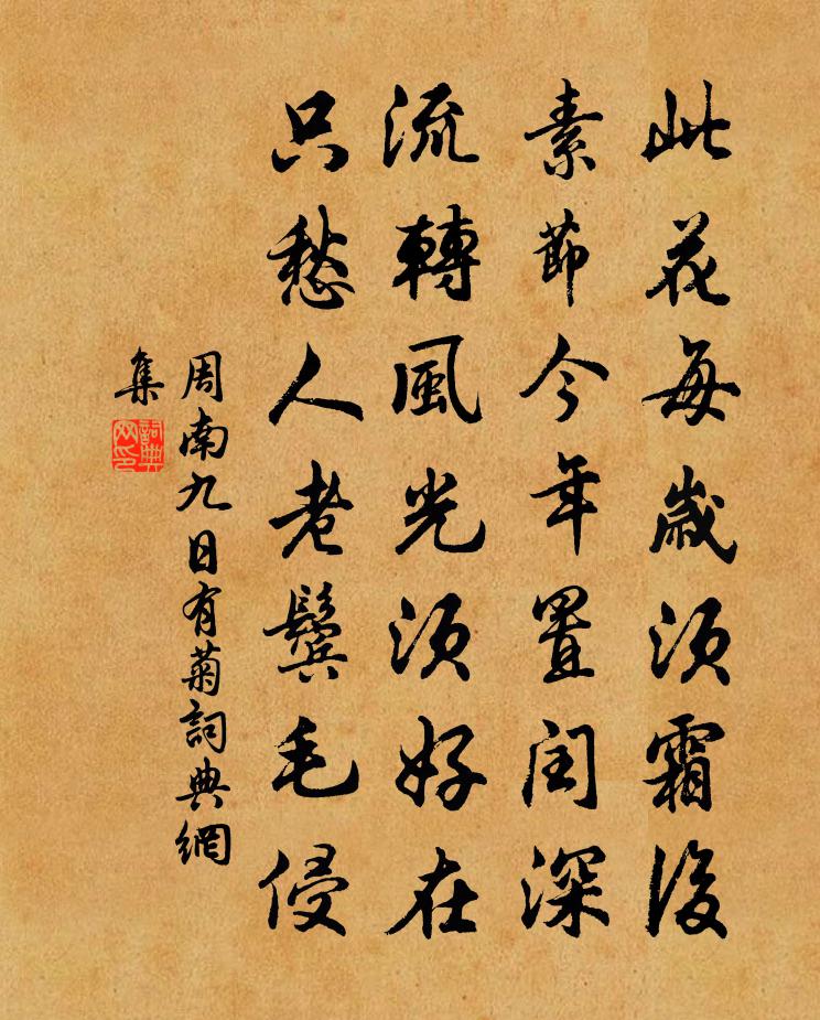 詩詞名句歷史字典書法欣賞書法字典國語詞典說文解字康熙字典古漢語字典標 題 作 者 詩 句 九日有菊作者:周南 朝代:宋代九日有菊原文此花每歲須霜後,素節今年置閏深。流轉風光須好在,只愁人老鬢毛侵。詩詞問答問:九日有菊的作者是誰?答:周南問:九日有菊寫於哪個朝代?答:宋代周南九日有菊書法欣賞九日有菊書法作品詩詞推薦送楊文起尉溫江李流謙〔宋代〕學海不可窮,一葦子利涉。宦海海更深,破浪初鼓楫。波濤惡氣勢,鼉蜃毒吻頰。帆檣托忠信,維纜倚定力。晏然矯志詩曹植〔魏晉〕芝桂雖芳。難以餌魚。尸位素餐。難以成居。磁石引鐵。於金不連。大朝舉士。愚不聞焉。抱璧塗乞。無為貴寶。次韻曾端伯早春即事五首郭印〔宋代〕使君千騎出重城,對鏡心閒似水清。豈但邦人安善政,波間鷗鳥亦無驚。送源中丞使新羅(一作姚合詩)殷堯藩〔唐代〕赤墀奉命使殊方,官重霜台紫綬光。玉節在船清海怪,金函開詔撫夷王。雲晴漸覺山川異,風便寧知道路長。誰得陳令君增誠齋三三徑為十二徑次韻朱繼芳〔宋代〕四家三徑各風流,今古悠悠貉一丘。拍瓮新篘浮臘膩,繞堤老柳弄春柔。日邊黃紙催人去,霞外山聽鶴留。若問西游峽山飛來寺高紳〔宋代〕古寺清江上,維舟夕照前。山根盤到海,塔影直侵天。蘿月空禪石,霜鍾落客船。秋風懶回首,送目入雲煙。送劉漢特兼簡邵子文李新〔宋代〕綠篠欹牆葉葉聲,夜涼風細露華清。飄零何幸逢公子,邂逅相看不世情。擬向伯倫求酒頌,不知東野解詩鳴。三峰次韻和吳侍郎和沖卿寄來詩二首宋庠〔宋代〕暫息塵機不為年,高風聊借九區傳。周聃漢朔誰能測,且作清時吏隱仙。故程將軍妻南陽郡夫人樊氏輓歌孫逖〔唐代〕德配程休甫,名高魯季姜。寵榮蒼玉珮,宴夢鬱金堂。白日期偕老,幽泉忽悼亡。國風猶在詠,江漢近南陽。胡端約輓詩蔡戡〔宋代〕長卿多酒病,子美太詩癯。談笑隨時樂,風標絕代無。遺編應百卷,怪石漫千株。賴此青氈物,傳家有鳳雛。封州大率園不蔬人采小蓼食之葉尖而細號尖頭鄭剛中〔宋代〕遠地窮鄉口腹殊。居然孤客莫隨渠。路帝施采尖頭蓼,江上爭尋脹肚魚。野葛可法雖是慣,馬肚不食未為疏。此生送禪師宗極歸玉峰棲白〔唐代〕背郭去歸宿,頭陀意頗濃。鶴爭棲遠樹,猿斗上孤峰。夜戍經霜月,秋城過雨鍾。由來無定止,何處訪高蹤。天仙子 壽杜左丞程文海〔元代〕一自壽仙臨杜曲。歲歲小春春意熟。泰階相向更分明,調玉燭。扶鈞軸。突兀眼前惟此屋。折得歲寒枝上玉。擬祝貓圖葉紹翁〔宋代〕醉薄荷,撲蟬蛾。主人家,奈鼠何。偈傾一百三十三首釋法薰〔宋代〕九十日飯錢且置,漿見水錢教誰還。若只是眼生三角,衲僧便解乘豹變。京府獄空降詔因寄大尹學士楊億〔宋代〕長安惡少罷探丸,桴鼓聲沉禁網寬。三尺舊章閒玉律,八行優詔下金鑾。帝臨宣室方前席,民值唐年恥畫冠。終日寄題江山葉氏翠香亭王柏〔宋代〕遙想琅玕百頃強,旋栽應笑子猷忙。絕憐羽葆搖新綠,更有風來細細香。生查子郭應祥〔宋代〕銀燭印紅衫,薄暮新梳洗。一笑奉賓歡,未解東君意。迴廊月轉初,憶趁良宵會。喜事在明年,劇飲拼先醉。阮郎歸黃庭堅〔宋代〕盈盈嬌女似羅敷。湘江明月珠。起來綰髻又重梳。弄妝仍學書。歌調態,舞工夫。湖南都不如。它年未厭白髭鬚。送令狐綯相公賈島〔唐代〕梁園趨戟節,海草幾枯春。風水難遭便,差池未振鱗。姓名猶語及,門館阻何因。苦擬修文卷,重擎獻匠人。吟看名句推薦武帝宮中人去盡,年年春色為誰來。岑參《登古鄴城》 黃霧漲天雪晦冥,黑雲拂地風膻腥沈約《昭君辭》 紅顏未老恩先斷,斜倚薰籠坐到明。白居易《後宮詞》 昨夢西湖,老扁舟身世。吳文英《拜星月慢·林鐘羽姜石帚以盆蓮數十置中庭宴客其中》 尊嚴而憚,可以為師荀子《荀子·致士》 秋至搗羅紈,淚滿未能開。江淹《悼室人》 閒處光陰易過曹雪芹《紅樓夢·第一回》 凡與敵戰,須要選揀勇將銳卒,使為先鋒,一則壯我志,一則挫敵威。佚名《百戰奇略·第一卷·選戰》 為淵驅魚者,獺也;為叢驅爵者,鸇也孟子《孟子·離婁章句上·第九節》 朔風如解意,容易莫摧殘。崔道融《梅花》