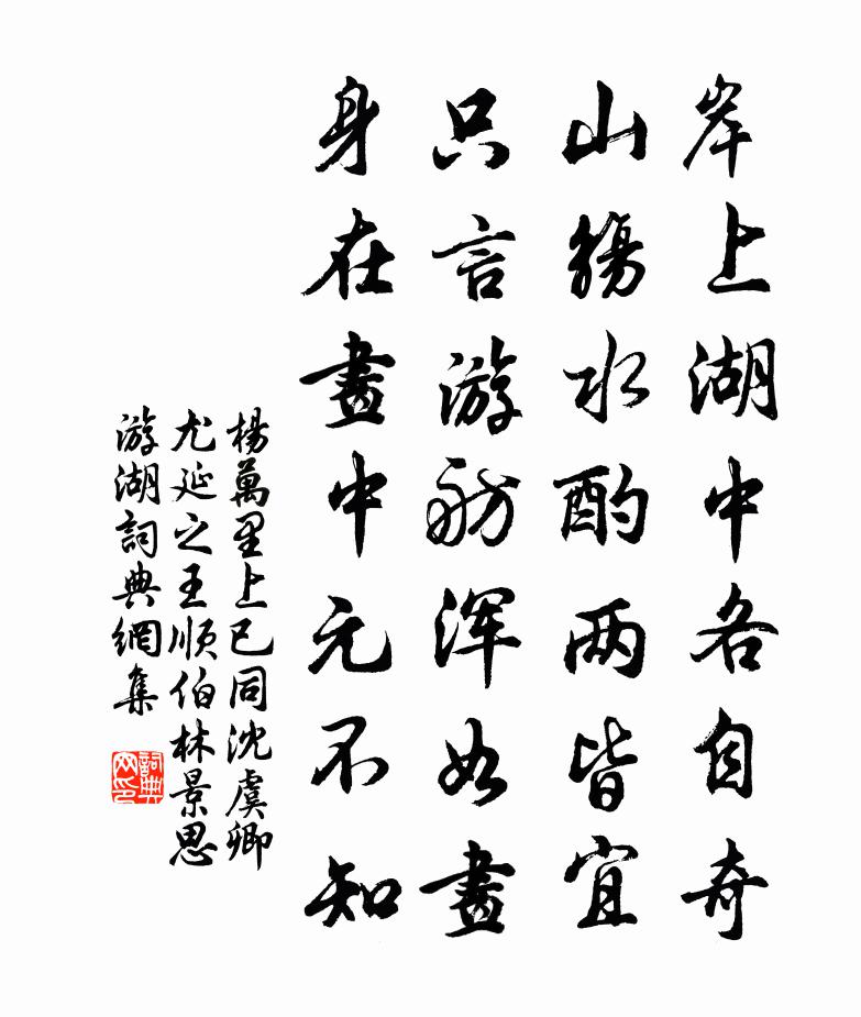 岸上湖中各自奇,山觴水酌兩皆宜。只言游舫渾如畫,身在畫中元不知。