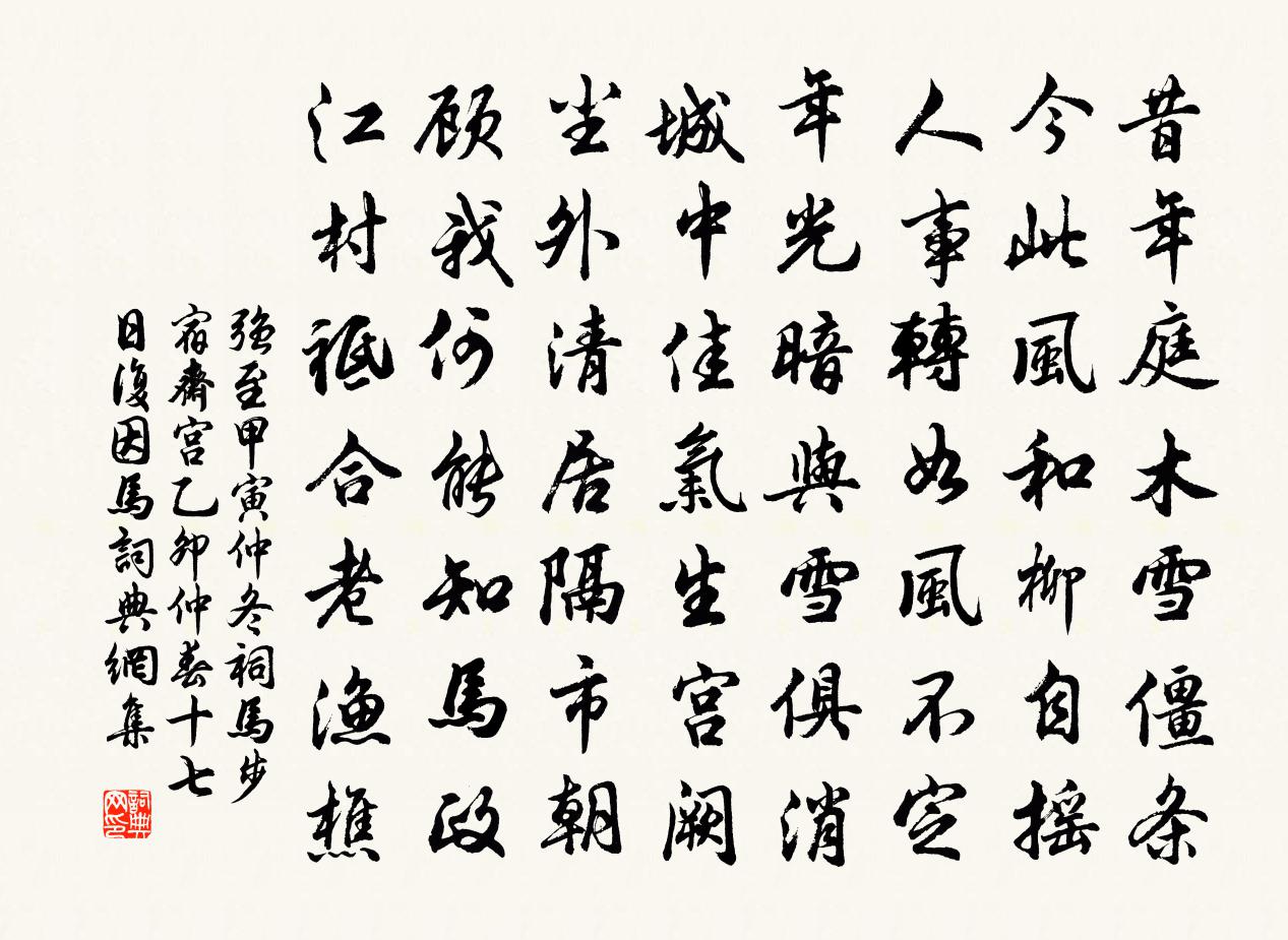 詩詞名句歷史字典書法欣賞書法字典國語詞典說文解字康熙字典古漢語字典標 題 作 者 詩 句 甲寅仲冬祠馬步宿齋宮乙卯仲春十七日復因馬作者:強至 朝代:宋代原文昔年庭木雪僵條,今此風和柳自搖。人事轉如風不定,年光暗與雪俱消。城中佳氣生宮闕。塵外清居隔市朝。顧我何能知馬政,江村祗合老漁樵。詩詞問答問:《甲寅仲冬祠馬步宿齋宮乙卯仲春十七日復因馬》的作者是誰?答:強至問:該詩寫於哪個朝代?答:宋代書法欣賞甲寅仲冬祠馬步宿齋宮乙卯仲春十七日復因馬書法作品詩文賞析【原題】:甲寅仲冬祠馬步宿齋宮乙卯仲春十七日復因馬祭到此漫成短篇詩詞推薦洞仙歌 辛巳歲燕城初度張翥〔元代〕功名利達,任紛紛奔競。縱使得來也僥倖。老眼看多時,鐘鼎山林,須信道、造物安排有命。人生行樂耳,對月臨徐介卿赴召經筵二詩送之李曾伯〔宋代〕袂判平山十五年,喜迎召節下樓船。交情一見歲寒在,世事幾番春夢然。我亦將歸謀佚老,公今此去類登仙。一杯寄湘中友人杜牧〔唐代〕莫念醉鄉迷酒杯,流年長怕少年催。西陵水闊魚難到,南國路遙書未回。匹馬計程愁日盡,一蟬何事引秋來?相如桃源李韋之〔宋代〕商山四老人,避世還出世。桃源獨終隱,坐看日月逝。廬山雜詠天池陳文蔚〔宋代〕朝登天池峰,暮酌天池水。一枕僧榻清,鐘磬半空里。平生此名山,籍籍滿吾耳。乘興作遠遊,杖策自不已。行行祝英台近李彭老〔宋代〕杏花初,梅花過,時節又春半。簾影飛梭,輕陰小庭院。舊時月底鞦韆,吟香醉玉,曾細聽、歌珠一串。忍重見。聒龍謠趙佶〔宋代〕紫闕苕蕘,紺宇邃深,望極絳河清淺。霜月流天,鎖穹隆光滿。水精宮、金鎖龍盤,玳瑁簾、玉鉤雲卷。動深思,題江州天慶觀董嗣杲〔宋代〕隘寺鼓鍾透,殊庭瑞慶垂。上清唐塑像,正一漢遺師。經錄青城派,樓台紫極基。堯天躋壽域,羽佩有威儀。送劉薰卿曾豐〔宋代〕未曾得雋利名場,猶敢犯危煙瘴鄉。大庾嶺高梅挺拔,東莞天遠海汪洋。其凡飽以史收拾,所異剛於詩主張。歸數點絳唇丘崈〔宋代〕花落花開,等閒不管流年度。舊遊何處。淺立空凝佇。驚拍欄乾,忍見春將暮。憑風絮。為人飛去。散作愁無數。實之有詩複次其韻黃公度〔宋代〕鞅掌從王事,招邀愧主人。彈琴秋葉落,聽雨夜床親。歲月何妨紀,詩篇莫厭頻。要令千載下,不但數姜秦。花心動 黃伯陽歲晚見梅,適遇舊賦以贈別,邵亨貞〔元代〕東閣何郎,記當時,曾賞舊家紅萼。彩筆賦詩,綠髮簪花,多少少年行樂。自從驚覺揚州夢,芳心事、等閒忘卻。和寄西山趙希逢〔宋代〕寥寥千古一西山,望著令人腳便酸。充腹野薇當日事,照人甭節至今寒。未聞治世飢而死,留與凌煙畫出看。厚衛七夕羅隱〔唐代〕月帳星房次第開,兩情惟恐曙光催。時人不用穿針待,沒得心情送巧來。滿江紅吳泳〔宋代〕嘉定甲申之秋,七月良夜,夢歸家山,過鶴林之下。見老鶴翩躚,從西南來,方瞳而朱頂,玉立而長身,其色內白挽黃幾道張耒〔宋代〕異政潁川鳳,遺風叔度陂。聞哀苦朋友,歸葬束書詩。百歲鄉人社,他年故吏碑。知公萬金產,故在阿戎兒。木蘭花令周邦彥〔宋代〕歌時宛轉饒風措。鶯語清圓啼玉樹。斷腸歸去月三更,薄酒醒來愁萬緒。孤燈翳翳昏如霧。枕上依稀聞笑語。惡嫌題三高祠楊友夔〔宋代〕長橋度已盡,有亭枕江湄。常時閉共門,為問居者誰。范蠡其明哲,功成學鴟珍。煙波五湖上,風月一西施。張翰木闌花慢 壽侄雲達時七下四日也凌雲翰〔元代〕問初秋明月,更一夕,十分圓。喜鴻雁行中,居然生子,眉目娟娟。只今年逾弱冠,遇生朝、剛要賦詩篇。莫學汝送曉山夏肯甫入京戴復古〔宋代〕歲月頻看鏡,功名一據鞍。勿言行路惡,有志戀家難。芳草客程遠,落花春夜寒。江湖舊時夢,相逐到長安。名句推薦人生得意須盡歡,莫使金樽空對月。李白《將進酒》 煙柳畫橋,風簾翠幕,參差十萬人家。柳永《望海潮·東南形勝》 謝亭離別處,風景每生愁。李白《謝公亭·蓋謝朓范雲之所游》 舊時燕子還飛否?今古不勝情。歸莊《錦堂春·半壁橫江矗起》 臣子恨,何時滅!駕長車,踏破賀蘭山缺。岳飛《滿江紅·寫懷》 又到斷腸回首處,淚偷零。納蘭性德《山花子·風絮飄殘已化萍》 白日不到處,青春恰自來。袁枚《苔》 燕雁無心,太湖西畔隨雲去。姜夔《點絳唇·丁未冬過吳松作》 落地為兄弟,何必骨肉親!陶淵明《雜詩》 江亭暇日堪高會,醉諷離騷不解愁邊貢《午日觀競渡》