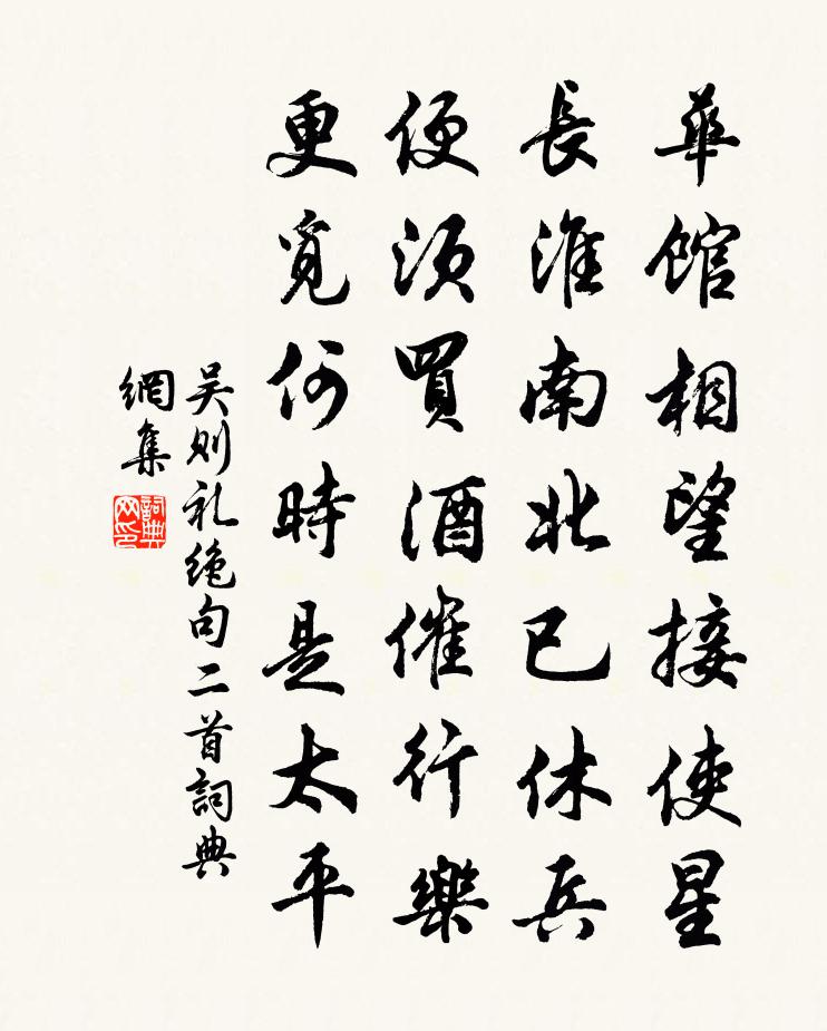 詩詞名句歷史字典書法欣賞書法字典國語詞典說文解字康熙字典古漢語字典標 題 作 者 詩 句 絕句二首作者:吳則禮 朝代:宋代絕句二首原文華館相望接使星,長淮南北已休兵。便須買酒催行樂,更覓何時是太平。詩詞問答問:絕句二首的作者是誰?答:吳則禮問:絕句二首寫於哪個朝代?答:宋代吳則禮絕句二首書法欣賞絕句二首書法作品詩詞推薦吳待制輓詞樓鑰〔宋代〕御史再乘驄,史言沃帝聰。處心平似水,疾惡迅如風。遇合嗟何晚,論思信有功。惜哉辛佐治,竟不到三公。龜溪即事五首高斯得〔宋代〕父兄吳下宅,師友苕溪磯。亦欲從之游,煦濕相因依。睽孤諒無樂,旅瑣良可唏。古來遁世士,獨立取眾非。咨予相法一首劉克莊〔宋代〕姑射仙風肌似雪,盧郎鬼質面如藍。不勞鑒裁分妍醜,但覽丰標辨聖凡。贈胡端本顯伯教諭二首方回〔宋代〕星□□□□諸胡,鄉里人人仰范模。韜養沉潛求大□,□揮□□號通□。□生不出跧吟屋,垂老□□□□□。□□送朱季公守封川樓鑰〔宋代〕桐鄉漢有大司農,封守今推陳秀公。君向邦人著遺愛,近追相業遠家風。自勉陸游〔宋代〕臂弱傳鈔少,心煩記問衰。讀書猶自力,愛日似兒時。章句分無憾,聲形講不遺。明年幸強健,閉戶有餘師。書鶴鳴亭壁辛棄疾〔宋代〕翠竹栽成占一丘,清溪映帶極風流。山翁一向貪奇趣,更引飛泉在上頭。浪淘沙杜安世〔宋代〕簾外微風。雲雨回蹤。銀釭燼冷錦幃中。枕上深盟,年少心事,陡頓成空。嶺外白頭翁。到沒由逢。一床鴛被疊香聞王員外新恩有寄齊己〔唐代〕欲退無因貴逼來,少儀官美右丞才。青袍早許淹花幕,霜簡方聞謝柏台。金諾靜宜資講誦,玉山寒稱奉尊罍。西峰句李迪〔宋代〕日烘麗萼紅縈火,雨過菖條綠噴煙。山寺看櫻桃花題僧壁劉言史〔唐代〕楚寺春風臘盡時,含桃先坼一千枝。老僧不語傍邊坐,花發人來總不知。織婦曲楊維楨〔元代〕盈盈白面娥,新絲織扇羅。當機不應客,擲地碎金梭。焚香晝睡比覺香猶未散戲作陸游〔宋代〕小屏煙樹遠參差,吏散身閒與睡宜。誰似爐香念幽獨,伴人直到夢回時。式賢和杜夔府百韻過余秋崖下大篇舂容筆力乃方岳〔宋代〕林壑黃昏外,衡門紫翠邊。火耕今已老,雲臥幾何年。棋斂將殘局,篙回興盡船。畫麟真已矣,騎犢適悠然。野性一葉舟侯善淵〔元代〕頂笠披莎歸去。漸入蘆花深處。綠岸纜漁舟。釣綸收。輕泛壺中一味。野鶴孤雲相濟。橫*韻清幽。樂無愁。鐵壁釋慧開〔宋代〕巍然一座黑金城,縫罅全無及戶扃。堪笑英雄難進步,聖凡到此絕途程。避地傷春六絕句葛立方〔宋代〕一年春事又闌珊,可惜芳菲愁裹看。慎勿掃花供餵馬,惱人秀色自堪餐。門柳釋斯植〔宋代〕看盡門前柳,愁多白髮新。灞橋風雨夜,離別是何人。與道原過西莊遂游寶乘王安石〔宋代〕周顒宅作阿蘭若,婁約身歸窣堵坡。今日隱侯孫亦老,偶尋陳跡到煙蘿。金山亭呈翁守二首方廷實〔宋代〕新亭高敞枕城隈,萬里江山爽氣來。雲外孤峰擎日晚,林間啼鳥喚春回。登車謾有澄清志,覽景慚非賦詠才。太守名句推薦問他有甚堪悲處?思量卻也有悲時,重陽節近多風雨。辛棄疾《踏莎行·庚戌中秋後二夕帶湖篆岡小酌》 花影不離身左右,鳥聲只在耳東西。曹雪芹《紅樓夢·第二十八回》 種竹淇園遠致君,生平孤節負辛勤。王汝舟《詠歸堂隱鱗洞》 明月樓高休獨倚。酒入愁腸,化作相思淚。范仲淹《蘇幕遮·懷舊》 投我以桃,報之以李。佚名《抑》 遠路應悲春晼晚,殘霄猶得夢依稀。李商隱《春雨》 春宵苦短日高起,從此君王不早朝。白居易《長恨歌》 墦間人散後,烏鳥正西東。范成大《清明日狸渡道中》 暖風熏得遊人醉,直把杭州作汴州。林升《題臨安邸》 燕山雪花大如席,片片吹落軒轅台。李白《北風行》