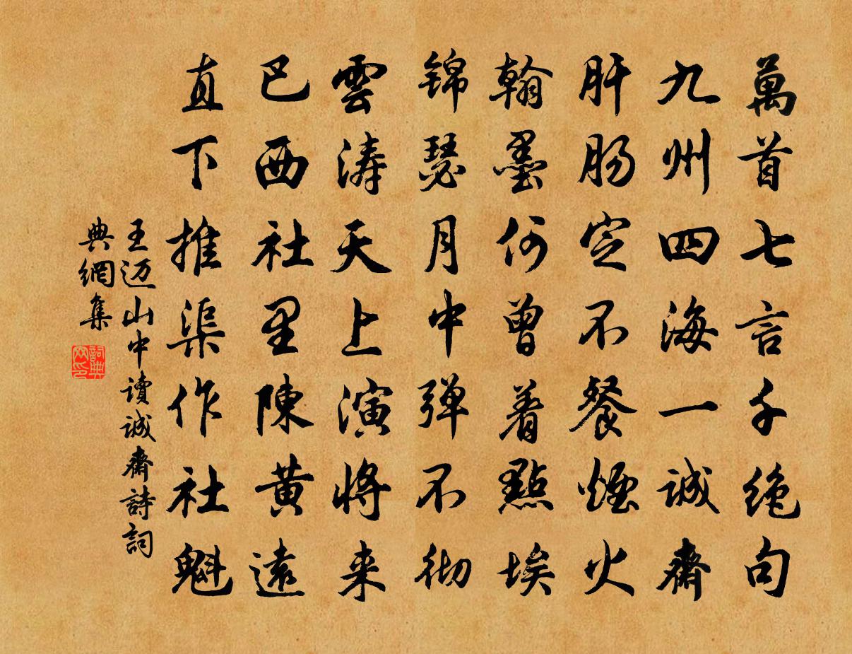 詩詞名句歷史字典書法欣賞書法字典國語詞典說文解字康熙字典古漢語字典標 題 作 者 詩 句 山中讀誠齋詩作者:王邁 朝代:宋代山中讀誠齋詩原文萬首七言千絕句,九州四海一誠齋。肝腸定不餐煙火,翰墨何曾著點埃。錦瑟月中彈不徹,雲濤天上演將來。巴西社裡陳黃遠,直下推渠作社魁。詩詞問答問:山中讀誠齋詩的作者是誰?答:王邁問:山中讀誠齋詩寫於哪個朝代?答:宋代王邁山中讀誠齋詩書法欣賞山中讀誠齋詩書法作品詩詞推薦水調歌頭(送楊廷秀赴國子博士用廷秀韻)袁去華〔宋代〕筆陣萬人敵,風韻玉壺冰。文章萬丈光焰,論價抵連城。小試馮川三異,無數成陰桃李,寒谷自春生。奏牘三千字餞常熟宰万俟紹之〔宋代〕籠鶴歸來到北關,玉墀春里趣朝班。九重定問琴川事,為奏通川一渡閒。蝶戀花 閱周南翁所藏書畫,惜其迂懷雅好,吳存〔元代〕傀儡場中青紫楦。縱有神丹,俗骨無由換。可惜米顛蘇內翰。風標何遠年何短。此日閒窗開寶玩。想見江船,當日黃超然參議和拙者去郡十五絕又以詩見寄屬痰吳芾〔宋代〕向來從宦鄭公鄉,每遇清游坐有光。江上憑欄天一色,湖邊艤棹木千章。眼前景物俱堪賦,心著家山獨未忘。歸到醉蓬萊(林鐘商)柳永〔宋代〕漸亭皋葉下,隴首雲飛,素秋新霽。華闕中天,鎖蔥蔥佳氣。嫩菊黃深,拒霜紅淺,近寶階香砌。玉宇無塵,金莖贈王氏神童昆季魏野〔宋代〕先後登科出玉京,滿朝詩送更光榮。豈唯皇宋終難繼,自古神童少弟兄。偈六十三首釋道寧〔宋代〕乾坤之內,宇宙之中,高懸舜日,大扇堯風。祝一人之壽算,祈萬世之穹隆。唯吾家佛子受賜頗多,物外優遊恁何書廬山劉顗宮苑屋壁三絕蘇轍〔宋代〕山西舊將本書生,歸老岩間示厭兵。臥聞布水中宵起,錯認邊風萬馬聲。雕弓掛壁恥言勛,出人樵漁便作群。五馬初五日曉寒,浙人謂之蠶寒,蓋麥秋寒也楊萬里〔宋代〕歲歲春寒欲去時,麥牽蠶惹不放歸。早知今曉猶差冷,未肯疏它舊裌衣。宮詞李衍〔唐代〕輝輝赫赫浮玉雲,宣華池上月華新。月華如水浸宮殿,有酒不醉真痴人。醉桃源·元日吳文英〔宋代〕五更櫪馬靜無聲。鄰雞猶怕驚。日華平曉弄春明。暮寒愁翳生。新歲夢,去年情。殘宵半酒醒。春風無定落梅輕。次張節推山字韻詩留其行陳造〔宋代〕足音肯到寂寥處,風味要看樽俎間。行役小休良不惡,雷聲昨夜殷南山。十月三日秀亭二首方回〔宋代〕天憐遲莫與清閒,閒上高山看遠山。世味已如玄酒淡,名場肯復左輪殷。千爭萬競塵埃里,古恨今愁莽蒼間。□□山居十首陳造〔宋代〕咀毒橫戈地,財堪博一羞。時流正攘臂,老子解抽頭。秦楚蝸兩角,跖夷貉一丘。向來回晚照,了不見全牛。瑞鷓鴣杜安世〔宋代〕夜來風雨損余芳。數片衰紅落檻傍。媚景背人容易去,半軒飛絮日空長。從來不信相思切,及至如今倍感傷。獨立題雉山禊亭張栻〔宋代〕一曲清江正可憐,隔江新竹露娟娟。好風成我曲肱夢,起看飛雲度碧天。南湖書院趙汝譡〔宋代〕捍川始成邑,巡甸遂建都。千載倚修堤,三吳達高塗。衛軍弛馬牧,令尹司官湖。濬中深有蓄,豐外堅無虞。往昔頌古一百首釋智愚〔宋代〕野犴鳴,獅子吼。喪盡生涯,不容天口。題禊帖圖方回〔宋代〕永和九年晉癸丑,禊帖至今家家有。遺墨一紙出昭陵,摹本宇宙同不朽。甲子循環十六周,甫近千歲未為久。之字重送杜牧〔唐代〕手捻金僕姑,腰懸玉轆轤。爬頭峰北正好去,系取可汗鉗作奴。六宮雖念相如賦,其那防邊重武夫!名句推薦讀書須用意,一字值千金。佚名《增廣賢文·上集》 林外鳴鳩春雨歇,屋頭初日杏花繁。歐陽修《田家》 歸燕識故巢,舊人看新曆。王維《春中田園作》 大嫂采芙蓉,溪湖千萬重。李白《湖邊採蓮婦》 探其懷,奪之威。主上用之,若電若雷。韓非及後人《韓非子·揚權》 閏余成歲,律呂調陽。周興嗣《千字文·全文》 上窮碧落下黃泉,兩處茫茫皆不見。白居易《長恨歌》 凡人有疾,不時即治,隱忍冀差,以成痼疾。張仲景《傷寒論·傷寒例》 君子居易以俟命,小人行險以徼幸。子思《中庸·第十四章》 秋風蕭瑟天氣涼,草木搖落露為霜,群燕辭歸鵠南翔。曹丕《燕歌行二首·其一》