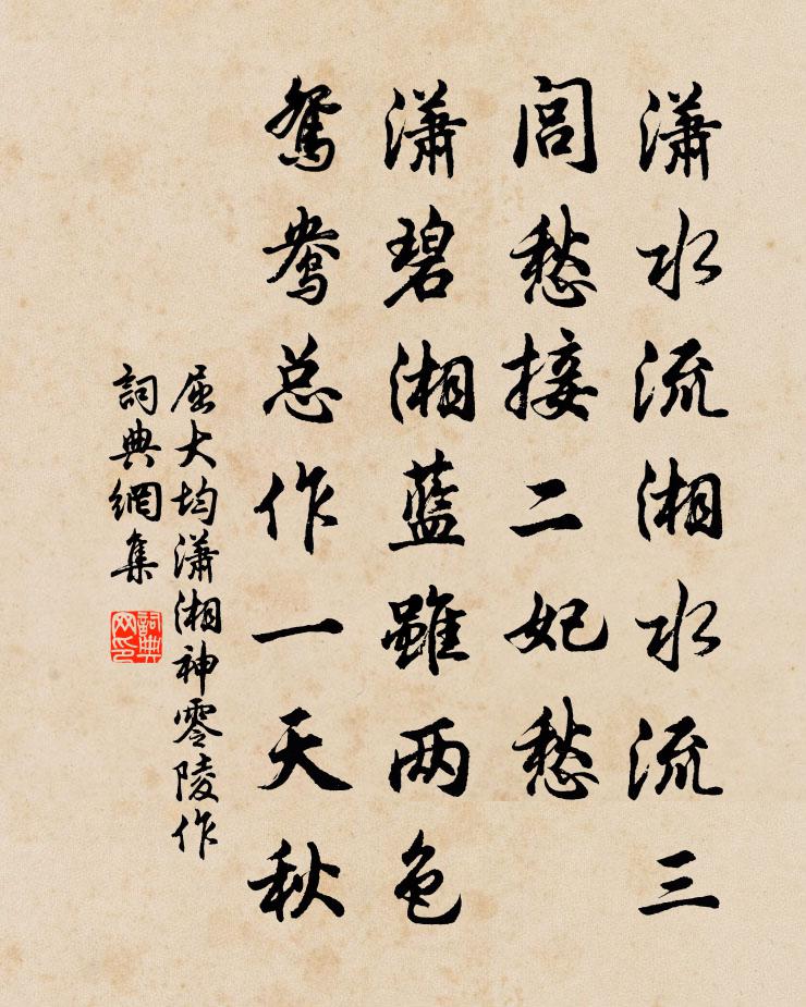 瀟水流,湘水流,三閭愁接二妃愁。瀟碧湘藍雖兩色,鴛鴦總作一天秋。