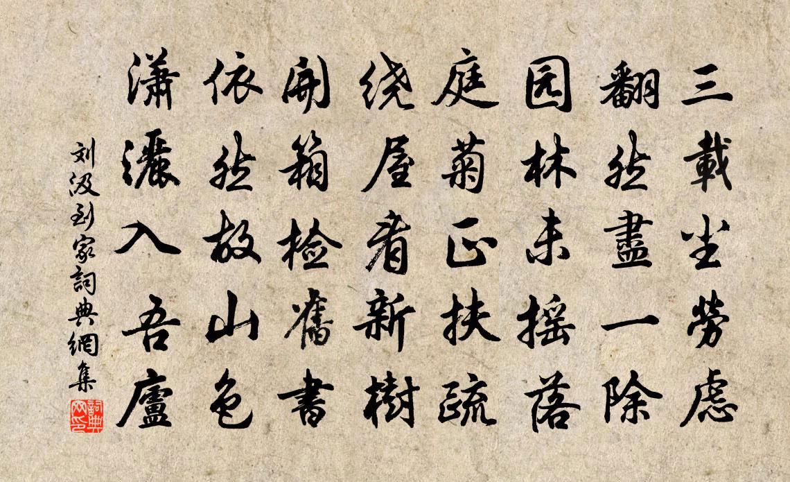 詩詞名句歷史字典書法欣賞書法字典國語詞典說文解字康熙字典古漢語字典標 題 作 者 詩 句 到家作者:劉汲 朝代:金代到家原文三載塵勞慮,翻然盡一除。園林未搖落,庭菊正扶疏。繞屋看新樹,開箱檢舊書。依然故山色,瀟灑入吾廬。詩詞問答問:到家的作者是誰?答:劉汲問:到家寫於哪個朝代?答:金代問:到家是什麼體裁?答:五律劉汲到家書法欣賞到家書法作品詩詞推薦浪淘沙 題酒家壁周文璞〔宋代〕還了酒家錢。便好安眠。大槐宮裡著貂蟬。行到江南知是夢,雪壓漁船。盤礴古梅邊。也信前緣。鵝黃雪白又醒然題壁錢氏〔宋代〕落日西風照楚關,斷魂殘魄吊衰顏。自從鴻鵠分飛後,無復鴛鴦並枕間。腕玉瘦寬金縷袖,鬢蟬慵掠翠雲鬟。秋天踏雲行馬鈺〔元代〕六出飄,萬峰聳翠。瓊花隕地風吹起。穿簾透幕逞逍遙,人前故要呈祥瑞。漁父莎披,子猷興至。高陽酒價重增贈吉父得女孫王洋〔宋代〕兩兩星階協泰符,為嘉瑞雪勝維旟。果如靈照翁何恨,若比倉公數有餘。慰眼臘娘能剪彩,他年楊惲競傳書。斷無山丁謂〔宋代〕不起纖塵讓,寧辭一簣勞。始從拳石大,終致極天高。蓮頂觀歸馬,蓬壺見負鰲。器車呈上端,繩檢秘崇褒。還東山洛上作岑參〔唐代〕春流急不淺,歸枻去何遲。愁客葉舟里,夕陽花水時。雲晴開螮蝀,棹發起鸕鶿。莫道東山遠,衡門在夢思。冬夜懷李侍御、王太祝、段丞元稹〔唐代〕浩露煙壒盡,月光閒有餘。松篁細陰影,重以簾牖疏。泛覽星粲粲,輕河悠碧虛。纖雲不成葉,脈脈風絲舒。丹灶紹興享先農十一首佚名〔宋代〕神之來止,風馭雲翔。神之旋歸,有迎有時。歌以送之,聲筦鏘鏘。何以惠民,豈年穰穰。答張子卿秀才梅堯臣〔宋代〕茫茫九土中,天網該時秀。有鳳不收羅,有麟不獲狩。賢豪為咨嗟,都邑誦瓊琇。而我當是時,欲見恨未遘。忽過衢右道中喻良能〔宋代〕漸喜家居近,相望六驛間。脫身江左役,洗眼浙東山。鄉味初充饌,慈闈亦破顏。經過縠溪水,應笑鬢毛斑。題秘書王迪城北池亭錢起〔唐代〕子喬琴來魏闕,明主賜衣簪。從宦辭人事,同塵即道心。還追大隱跡,寄此鳳城陰。昨夜新煙雨,池台清且深。伏永崇里觀居白居易〔唐代〕季夏中氣候,煩暑自此收。蕭颯風雨天,蟬聲暮啾啾。永崇里巷靜,華陽觀院幽。軒車不到處,滿地槐花秋。年光又號牛李佚名〔唐代〕門生故吏,不牛則李。(李謂宗閔也)。華山寺范成大〔宋代〕五湖西岸孤絕處,旃檀大士來同住。性空真水遍清涼,隨綠出現無方所。蒙泉新潔監泉明,瀹茗羹藜甘似乳。何須宮詞宋白〔宋代〕萬國車書一太平,宮花無數管弦聲。近臣入奏新祥瑞,昨夜黃河徹底清。一枝春長筌子〔元代〕堪嗟肉傀儡,塵世爭奇怪。晝夜火院煎苦,沉埋花酒叢中,孽重終難改。販骨何時徹,頭面翻騰,昧了靈源真宰。歸宜興,留題竹西寺三首蘇軾〔宋代〕道人勸飲雞蘇水,童子能煎鶯粟湯。暫借藤慶與瓦枕,莫教辜負竹風涼。梅花陸游〔宋代〕五年作竹梢,十年作梅枝。九泉子廉子,此語今誰知?問訊吉父六首王洋〔宋代〕偃仆跳梁太自粗,從渠窮技逞揶揄。會須聞見都忘盡,看打虛空得住無。清平樂佚名〔宋代〕真主玉曆成康。德睿寧安國中良。時和歲豐稔,民阜樂、何情泚,瑞木呈日五色,月華重有光。更羽鶴來儀鳳凰。名句推薦雲中亂拍祿山舞,風過重巒下笑聲。杜牧《過華清宮絕句三首》 不忍覆余觴,臨風淚數行納蘭性德《菩薩蠻·催花未歇花奴鼓》 事非宜,勿輕諾。苟輕諾,進退錯。李毓秀《弟子規·信》 戍客望邊邑,思歸多苦顏。李白《關山月》 運籌帷幄之中,制勝於無形司馬遷《史記·七十列傳·太史公自序》 任你官清似水,難逃吏滑如油。馮夢龍《醒世恆言·卷二十》 九華山路雲遮寺,清弋江村柳拂橋。杜牧《宣州送裴坦判官往舒州時牧欲赴官歸京》 馬上離魂衣上淚,各自個、供憔悴程垓《酷相思·月掛霜林寒欲墜》 士君子立言,貴平正,尤貴精詳。王永彬《圍爐夜話·第二五則》 雪霜凌厲而見殺,來歲不改其性也黃庭堅《書幽芳亭記》