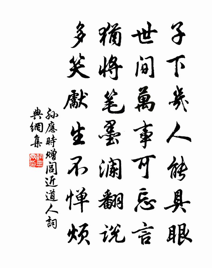 詩詞名句歷史字典書法欣賞書法字典國語詞典說文解字康熙字典古漢語字典標 題 作 者 詩 句 贈閭近道人作者:孫應時 朝代:宋代贈閭近道人原文子下幾人能具眼,世間萬事可忘言。猶將筆墨瀾翻說,多笑先生不憚煩。詩詞問答問:贈閭近道人的作者是誰?答:孫應時問:贈閭近道人寫於哪個朝代?答:宋代孫應時贈閭近道人書法欣賞贈閭近道人書法作品詩詞推薦秋夜池上作陸游〔宋代〕短髮颼颼病骨輕,臨池閒看露荷傾。月明何與浮雲事,正向圓時故故生。偈十三首釋法泰〔宋代〕客從遠方來,遺我一張琴。中含太古意,舉世無知音。子期徒側耳,師曠謾追尋。今朝呈似君,試請彈一曲。響潭毛滂〔宋代〕水面平鋪映碧空,夜深明月照龍宮。猿啼未響潭先響,一樹花開兩樹紅。方廣奉懷定叟林用中〔宋代〕相從偶到招提寺,獨對西風憶羽人。澹泊煙霞深處臥,百年衣缽此生身。送二郎君歸長安劉兼〔唐代〕我兒辭去淚雙流,蜀郡秦川兩處愁。紅葉滿山歸故國,黃茅遍地住他州。荷衣曉掛慚官吏,菱鏡秋窺訝鬢髹。好向題趙睎遠二畫樓鑰〔宋代〕藻翻數尾已如生,妙絕魚兒作隊行。不是深知濠上趣,未應筆底得縱橫。和人伏日李復〔宋代〕太極剖元氣,五行均四時。代謝密循環,母子相挈維。土散無定位,金德乘火馳。天刑發殺機,閉藏不敢施。胚胎同次道游相國寺買得翠玉罌一枚梅堯臣〔宋代〕古寺老柏下,叟貨翠玉罌。獸足面以立,瓜腹肩而平。虛能一勺容,色與藍水並。我獨何為者,忽見目以驚。家無偶題二首張耒〔宋代〕春水長流鳥自飛,偶然相值不相知。請君試采中塘藕,若道心空卻有絲。念奴嬌遊子西〔宋代〕暑塵收盡,快晚來急雨,一番初過。是處涼飆回爽氣,直把殘雲吹破。星律飛流,銀河搖盪,只恐冰輪墮。雲梯穩二月十五日櫻桃盛開自所居躡履吟玩競名王澤章洋才溫庭筠〔唐代〕曉覺籠煙重,春深染雪輕。靜應留得蝶,繁欲不勝鶯。影亂晨飆急,香多夜雨晴。似將千萬恨,西北為卿卿。題逍遙樓傷故韋大夫熊孺登〔唐代〕利及生人無更為,落花流水舊城池。逍遙樓上雕龍字,便是羊公墮淚碑。送僧釋重顯〔宋代〕岩房高下拆寒梅,極目寥寥鴈影回。相別相逢竟何事,一聲江上發春雷。春夕偶作趙湘〔唐代〕一夕衡門獨自開,雨陰深巷少塵埃。酒醒風傍池邊起,坐久月從花上來。何處夜歌初欲斷,四鄰春夢未知回。因思聞金吾妓唱梁州李頻〔唐代〕聞君一曲古梁州,驚起黃雲塞上愁。秦女樹前花正發,北風吹落滿城秋。送朱朝夫過江北毛滂〔宋代〕愛君如竹可無君,君去吾歸麋鹿群。他日漫同千里月,時朝相望一江雲。余尊尚得須臾語,新句那能款曲聞。人到送王遷歸青社魏野〔宋代〕此別重傷情,寒天二十程。弟分微祿送,兒逐蹇驢行。雪蔽千山色,冰含萬水聲。何時再相見,去去海邊城。苦寒行司馬光〔宋代〕窮冬北上太行嶺,霰雪糾結風崢嶸。熊潛豹伏飛鳥絕,一徑僅可通人行。僮飢馬羸石磴滑,戰慄流汗皆成冰。妻愁滿江紅 贈睡著李道判李道純〔元代〕好睡家風,別有個、睡眠三昧。但睡里心誠,睡中澄意。睡法既能知止趣,便於睡里調神氣。這睡功、訊息睡安禪明堂樂章二首王安石〔宋代〕有奕明堂,萬方時會。宗予聖考,作帝之配。樂酌虞曲,禮從周制。厘事既成,於皇來塈。名句推薦玩人喪德,玩物喪志。佚名《尚書·周書·旅獒》 胭脂洗出秋階影,冰雪招來露砌魂。曹雪芹《薛寶釵詠白海棠》 瀉水置平地,各自東西南北流。鮑照《擬行路難十八首》 誰向孤舟憐逐客?白雲相送大江西。李攀龍《送明卿之江西》 天地無全功,聖人無全能,萬物無全用。列子及其弟子《列子·天瑞》 逍遙以針勞,談笑以藥倦劉勰《文心雕龍·養氣》 山外青山樓外樓,西湖歌舞幾時休?林升《題臨安邸》 故人宿茅宇,夕鳥栖楊園。李白《之廣陵宿常二南郭幽居》 運往無淹物,年逝覺已催。謝靈運《歲暮》 幸於始者怠於終,繕其辭者嗜其利。曹雪芹《紅樓夢·第五十六回》