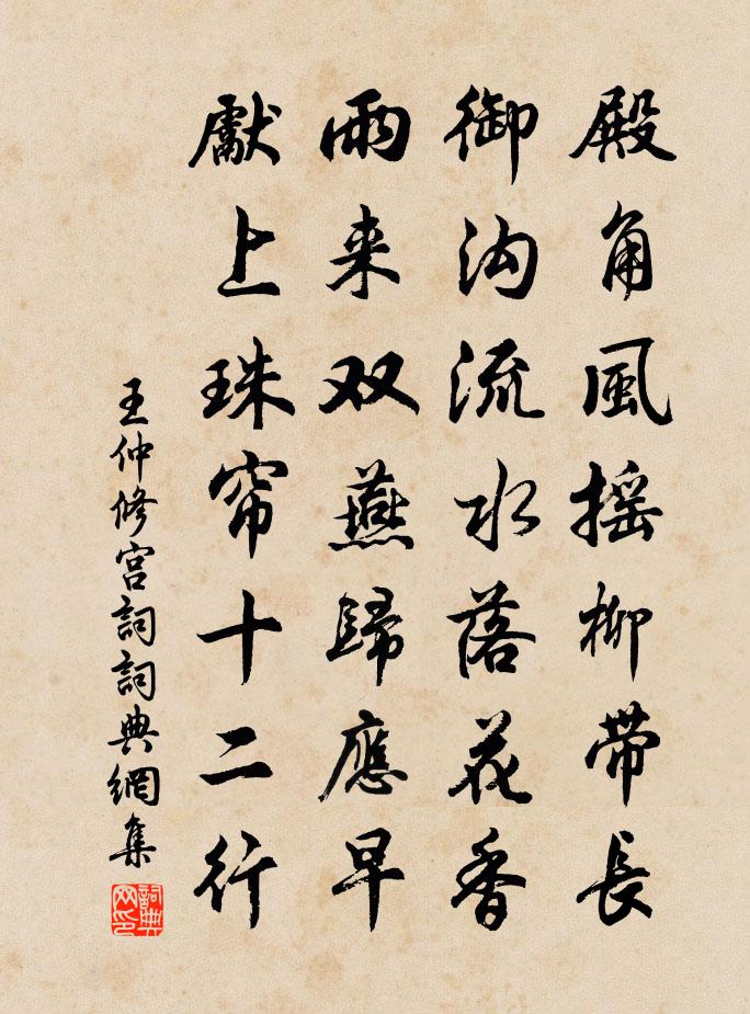 詩詞名句歷史字典書法欣賞書法字典國語詞典說文解字康熙字典古漢語字典標 題 作 者 詩 句 宮詞作者:王仲修 朝代:宋代宮詞原文殿角風搖柳帶長,御溝流水落花香。雨來雙燕歸應早,先上珠簾十二行。詩詞問答問:宮詞的作者是誰?答:王仲修問:宮詞寫於哪個朝代?答:宋代王仲修宮詞書法欣賞宮詞書法作品詩詞推薦過蘭溪楊時〔宋代〕紛紛朝市競秋毫,江上霜風正怒號。不問揚瀾與彭浪,翩然東下日千艘。送吳提刑赴召三首趙蕃〔宋代〕擁節西來歲未更,提封略已遍循行。洞庭青草絕余寇,沅水武谿俱力耕。勿漫繡衣閒直指,正應天下急澄清。治平足弱二首姜特立〔宋代〕腳力雖雲弱,心靈尚宛然。休輕刖孫臏,猶解殺龐涓。紫竹周必大〔宋代〕青紫從來豈異端,要看同傲折膠寒。若輕間色思方節,圓竹應須斬萬竿。題太和主簿趙昌父思隱堂楊萬里〔宋代〕西昌主簿如襌僧,日餐秋菊嚼春冰。西昌官舍如佛屋,一物也無唯有竹。俸錢三月不曾支,竹陰過午未晨炊。大兒定業寺胡鑒〔宋代〕拂雲開紫氣,窈窕入幽境。杉森若趨山,竹青無盡境。寒螿互響答,野鳥話深靜。暗水冽池光,疏風碎金影。騁懷途中雜題六首趙蕃〔宋代〕樹合猿啼遠,崖荒虎跡新。尋常慣居者,辛苦恐行人。偶成陳雲龍〔宋代〕野趣成間散,青山即故知。竹生逾砌筍,花引隔牆枝。舞蝶翻風亂,間雲出塢遲。倚欄無一事,俄有客傳詩。五月一日蒙替本官不得隨例入闕,感懷獻送相公李頻〔唐代〕五月傾朝謁紫宸,一朝無分在清塵。含香已去星郎位,衣錦惟思婺女鄰。折獄也曾為俗吏,勸農元本是耕人。知將送路少府使東京便應制舉劉長卿〔唐代〕故人西奉使,胡騎正紛紛。舊國無來信,春江獨送君。五言凌白雪,六翮向青雲。誰念滄洲吏,忘機鷗鳥群。酬崔駙馬惠箋百張兼貽四韻楊巨源〔唐代〕百張雲樣亂花開,七字文頭艷錦回。浮碧空從天上得,殷紅應自日邊來。捧持價重凌雲葉,封裹香深笑海苔。滿篋句陳堯佐〔宋代〕爭似碧瀾堂上望,疏疏煙樹漠汀洲。題薛少府莊李洞〔唐代〕何須鑿井飲,門占古溪居。寂寞苔床臥,寒虛玉柄書。有期登白閣,又得賞紅蕖。清淺蒲根水,時看鷺啄魚。和段季承左藏惠四絕句楊萬里〔宋代〕遮莫蟠胸書似山,更饒落筆語如泉。陰何絕倒無人怨,卻怨渠儂秘不傳。頌古七首釋道謙〔宋代〕誰家飯掛空梁,指與小兒令看。解開即是灰囊,當下命根便斷。李彥澤從余求衛公兵法王灼〔宋代〕衛公少時已知兵,坐談厭倒韓擒虎。一朝委事虬須虜。南殲荊盜北鋤虜。出其緒餘教君集,猶謂四夷莫予侮。乃知丁亥生日紀事五首方回〔宋代〕先君俊譽早飈馳,晚落蠻陬禍事奇。六十年前生子日,三千里外憶親時。霍光擅漢人皆恐,侯景歸梁國欲危。埋骨含鄱嶺至太乙峰方文〔清代〕侵晨獨出含鄱口,千里鄱湖一嶺函。但使短藤窮碧獻 ,何妨細雨濕青衫。林中黯淡高低樹,霧裡微茫上下帆。不放閘二首蘇轍〔宋代〕畫舫連檣住,清流泛閘平。忽看銀漢落,仍聽夏雷驚。正柂遲回久,開頭取次輕。滯留初一快,奔駛忽如傾。不識明發四望山,過都昌懸,入彭蠡湖楊萬里〔宋代〕眾船爭取疾,直赴兩山口。吾船獨橫趨,甘在眾船後。問來風不正,法當走山右。不辭用盡力,要與風相就。忽然名句推薦涼月如眉掛柳灣,越中山色鏡中看。戴叔倫《蘭溪棹歌》 深秋絕塞誰相憶,木葉蕭蕭。納蘭性德《採桑子·九日》 過五關,斬六將馮夢龍《喻世明言·卷三十一》 一聲聲,一更更。万俟詠《長相思·雨》 君子必在己者,不必在人者也。呂不韋《呂氏春秋·覽·孝行覽》 何以解憂?唯有杜康。曹操《短歌行》 江碧鳥逾白,山青花欲燃。杜甫《絕句二首》 更可惜,雪中高樹,香篝熏素被。周邦彥《花犯·小石梅花》 春思遠,誰嘆賞、國香風味。周密《繡鸞鳳花犯·賦水仙》 故園腸斷處,日夜柳條新。宋之問《途中寒食題黃梅臨江驛寄崔融》