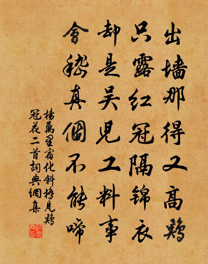 楊萬里宿化斜橋,見雞冠花二首書法欣賞
