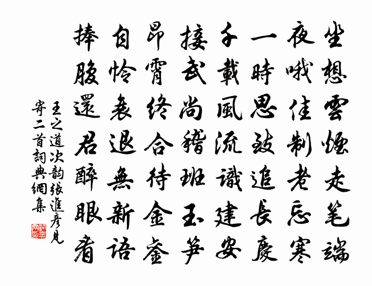 詩詞名句歷史字典書法欣賞書法字典國語詞典說文解字康熙字典古漢語字典標 題 作 者 詩 句 次韻張進彥見寄二首作者:王之道 朝代:宋代次韻張進彥見寄二首原文坐想雲煙走筆端,夜喔佳制老忘寒。一時思致追長慶,千載風流識建安。接武尚稽班玉筍,昂霄終合待金鑾。自憐衰退無新語,捧腹還君醉眼看。詩詞問答問:次韻張進彥見寄二首的作者是誰?答:王之道問:次韻張進彥見寄二首寫於哪個朝代?答:宋代王之道次韻張進彥見寄二首書法欣賞次韻張進彥見寄二首書法作品詩詞推薦偈公六十五首釋鹹傑〔宋代〕月圓月缺,循途守轍。打破牢關,天寬地寬。秋晚雜興陸游〔宋代〕漠漠漁村煙雨中,參差蒼檜映丹楓。古來畫手知多少,除卻范寬無此工。送存書記梁棟〔宋代〕一聲兩聲松子落,一片兩片楓葉飛。夕陽在山新月上,道人相伴一僧歸。耒陽溪夜行張九齡〔唐代〕乘夕棹歸舟,緣源路轉幽。月明看嶺樹,風靜聽溪流。嵐氣船間入,霜華衣上浮。猿聲雖此夜,不是別家愁。過石塘楊萬里〔宋代〕萬石中通一線流,千盤百折過孤舟。灘頭未下人猶笑,下了灘頭始覺愁。皇雅十首《太平》一章尹洙〔宋代〕噫!太平無象兮世烏得而知,維盛德可跡兮其封祀之儀。東岱宗兮西汾脽,禮上帝兮賓地祇。皇有徵兮吾民以嬉,玉糝羊歌劉宰〔宋代〕華陽洞口玉糝羊,世人傅得神人芳。雪團入口桂椒香,能令老者壽而康。瑤池玉佩正丁當,箬包聊薦九霞觴。世言再和楊萬里〔宋代〕三月陰晴頃刻分,晚來非午午非晨。閉門細草新蒲雨,過眼飛花落絮春。顧我江湖釣竿客,識君台閣步雲人。柯山題惠崇畫四首夏晁補之〔宋代〕老柳無嘉色,紅蕖羞脈脈,宛在水中洲,雙鵝羽蒼白,何須玩引頸,顛到寫經墨,惟應一臨流,當暑袗絺綌,過楊處士幽居姚合〔唐代〕引水穿風竹,幽聲勝遠溪。裁衣延野客,翦翅養山雞。酒熟聽琴酌,詩成削樹題。惟愁春氣暖,松下雪和泥。追送虞察院姜特立〔宋代〕夜半小溪飲,酒深增別情。客隨舟共遠,詩與雪俱清。嚴瀨雲木冷,富春煙水平。故人相憶處,應過鳳凰城。山水畫唐寅〔明代〕山隱幽居草木深,鳥啼花落書沉沉。行人杖履多迷路,不是書聲何處尋。西山桐十詠桐栽陳翥〔唐代〕吾有西山桐,栽之未盈握。所得從野人,移來自喬嶽。節凝葉尚秘,根疏土自剝。匪為待籬鷃,庸將棲鸑鷟。異日入投龍洞鄒登龍〔宋代〕行入投龍洞,青青見竹竿。暮雲生道樹,夜月滿仙壇。枯蘚洞崖古,長松繞澗寒。三生清淨福,獨此愧黃冠。入青城山門詩程公許〔宋代〕一逕石牆分竹色,兩橋澗水和松風。山靈憐我嗜幽勝,洗山林巒晚照紅。雨中郊外葛天民〔宋代〕暖氣先回宿草根,青青行可藉芳尊。耒須著意催花格,且為乾坤補燒痕。和程閣學觀雪韻袁說友〔宋代〕入竹投窗細細添,兩山瓊玉稱遐瞻。巧於夜半將新歲,每以風回蹴上簾。寒雀棲枝驚落屑,飢烏鳴食訝堆鹽。正須偈頌一百一十七首釋紹曇〔宋代〕雨足龍頭,年豐民樂。袖出刈禾鐮,大地全收卻。歸來十二峰前,別甑炊香,明璣滿缽。餵飽活衲僧,曲肱酣睡著題孔道士雲庵趙庚夫〔宋代〕道人居玉笥,手辟小蓬萊。門寂山相對,庵空雲自來。茶煙朝宛轉,丹氣夜昭回。欲助梨花夢,攜鋤獨種梅。無客回天意邵雍〔宋代〕惡死而好生,古今之常情。人心可生事,天下自無兵。草木尚鹹若,山川豈不寧。胡為無擊壤,飲酒樂昇平。名句推薦大江流日夜,客心悲未央。謝朓《暫使下都夜發新林至京邑贈西府同僚》 木蘭舟上,何處吳娃越艷:藕花紅照臉。孫光憲《河傳·風颭》 人生貴得適意爾,何能羈宦數千里以要名爵!劉義慶《世說新語·識鑒》 水晶簾不下,雲母屏開,冷浸佳人淡脂粉。晁補之《洞仙歌·泗州中秋作》 理郁者苦貧,辭溺者傷亂劉勰《文心雕龍·神思》 戰必覆人之軍,攻必凌人之城。商鞅《商君書·賞刑》 霜天秋曉,正紫塞故壘,黃雲衰草。蔡挺《喜遷鶯·霜天秋曉》 征人去日殷勤囑,歸雁來時數附書。王維《伊州歌》 今宵絕勝無人共,臥看星河盡意明。陳與義《雨晴·天缺西南江面清》 夢斷香消四十年,沈園柳老不吹綿。陸游《沈園二首》