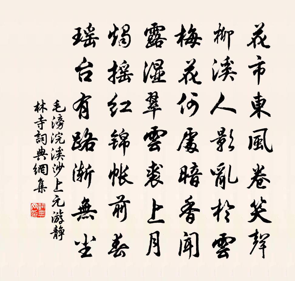 花市東風卷笑聲。柳溪人影亂於雲。梅花何處暗香聞。