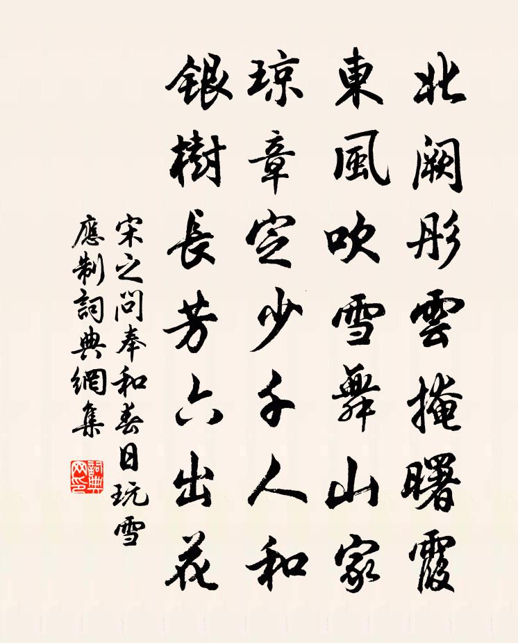 北闕彤雲掩曙霞,東風吹雪舞山家。瓊章定少千人和,銀樹長芳六出花。